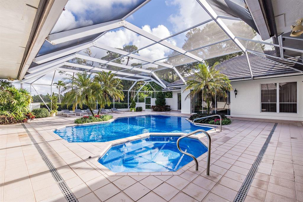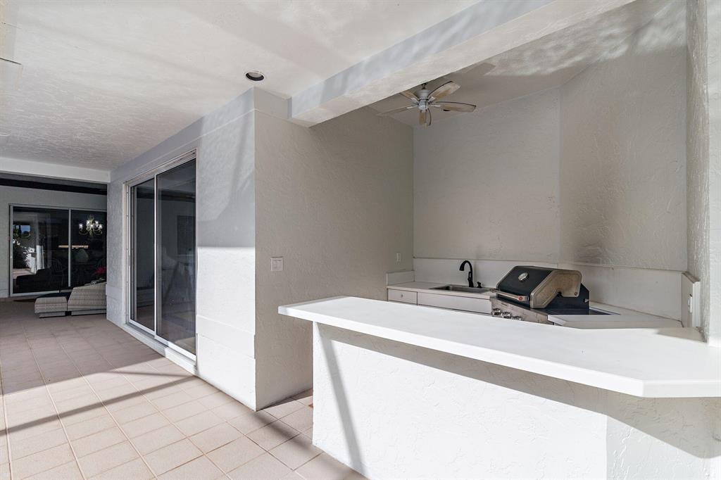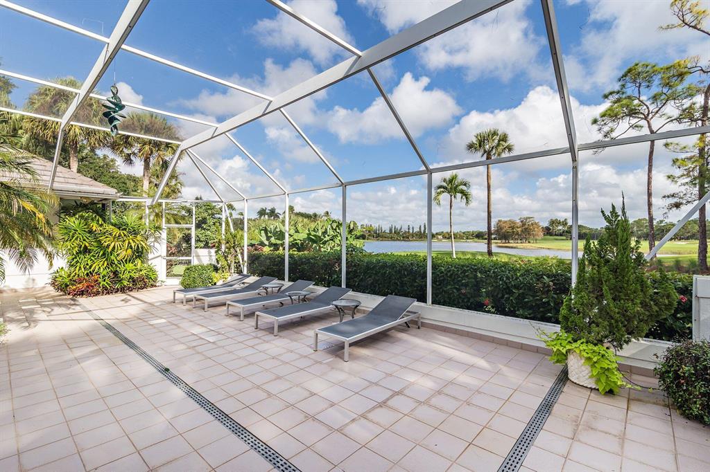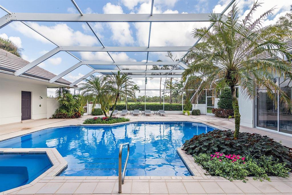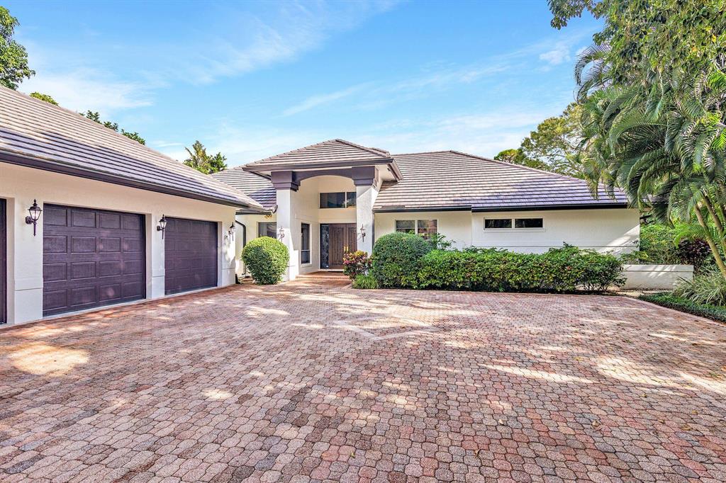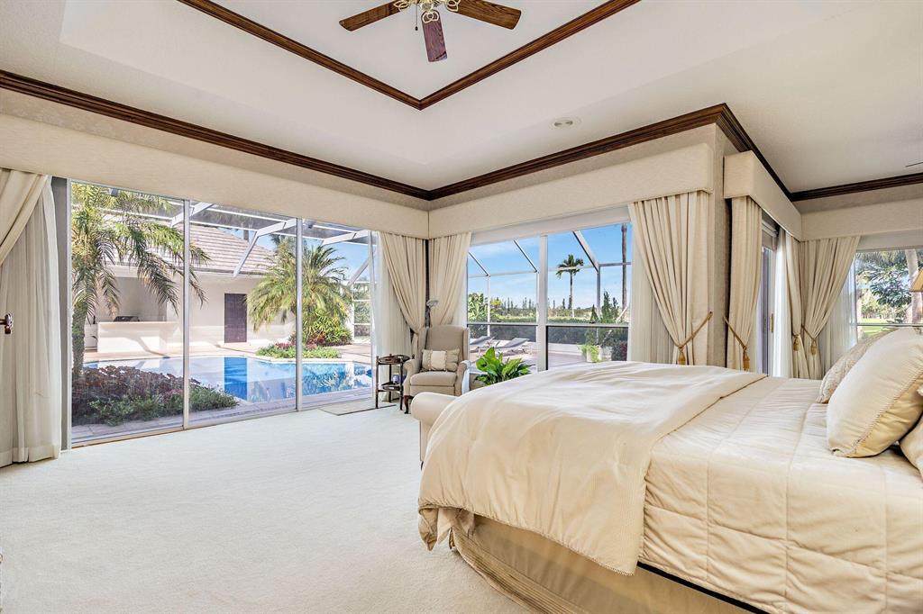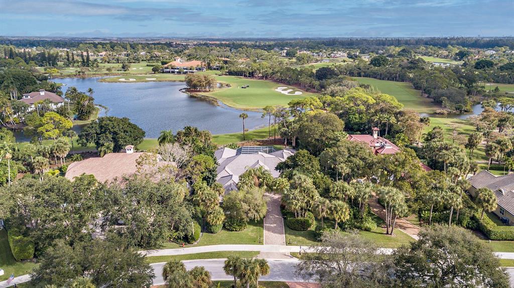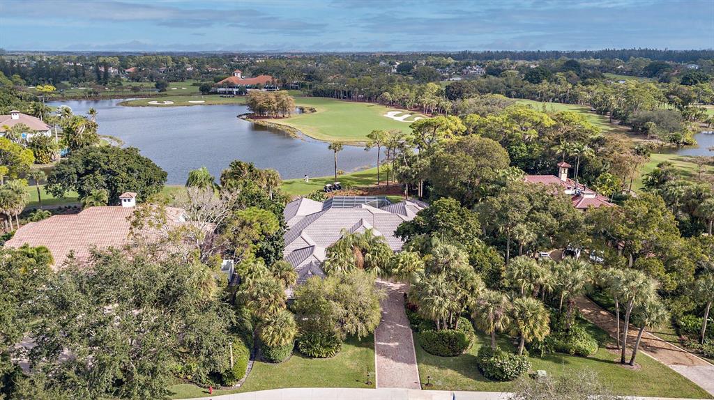 This premiere lakefront Island style contemporary estate home has sweeping views of the Rees Jones golf course on the 9th hole with views of The Breakers West Country Club seen in the distance. The moment you pull up the driveway you'll be taken in by the mature trees and lush landscaping . Beautifully paved driveway with a 3 car garage plus golf cart . New tile roof 2021. Newly painted exterior 2021. This estate has a detached 1 BDM Guest suite that you enter through a covered breezeway complete with bath & sauna. You have direct access to the tropical and newly redone pool and spa. A summer kitchen, covered loggia and an outdoor shower is the perfect place to enjoy the Florida lifestyle. The Guest Suite has the versatility to become an artist studio or home office.