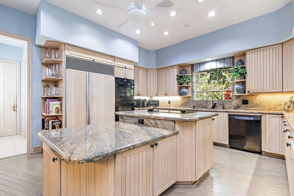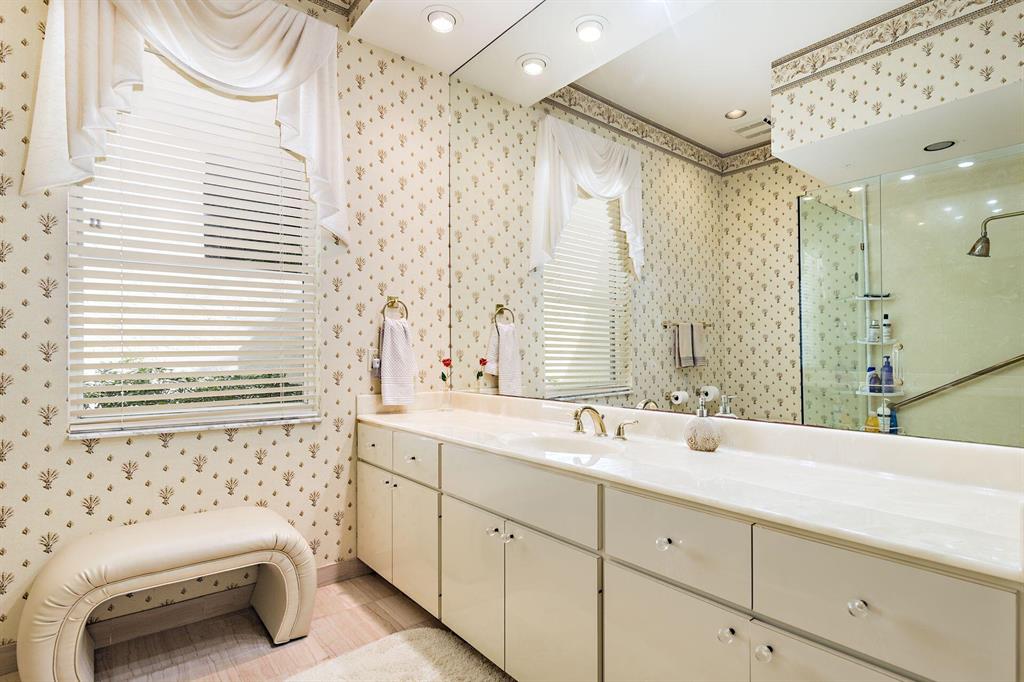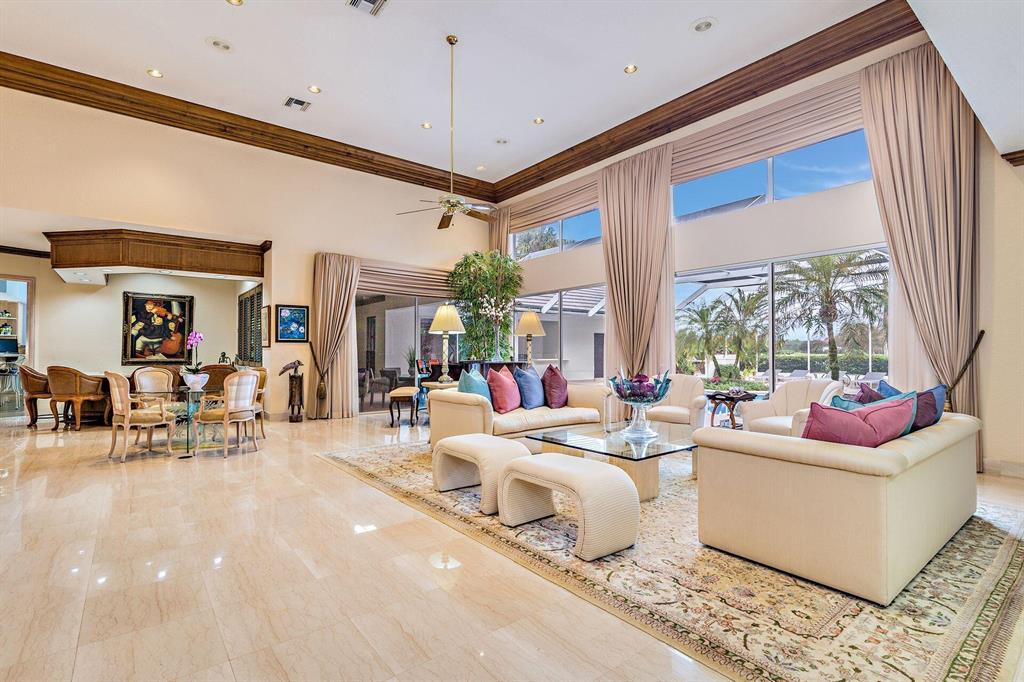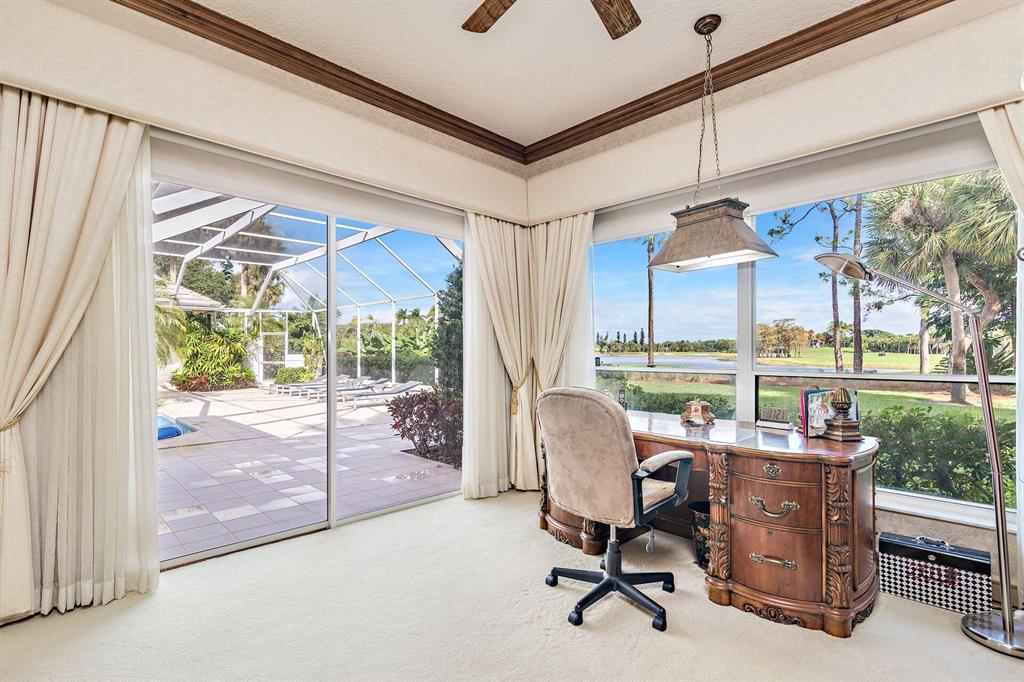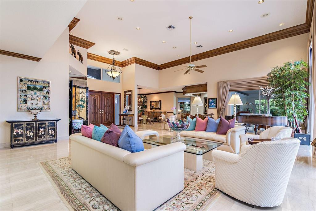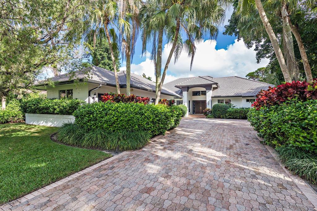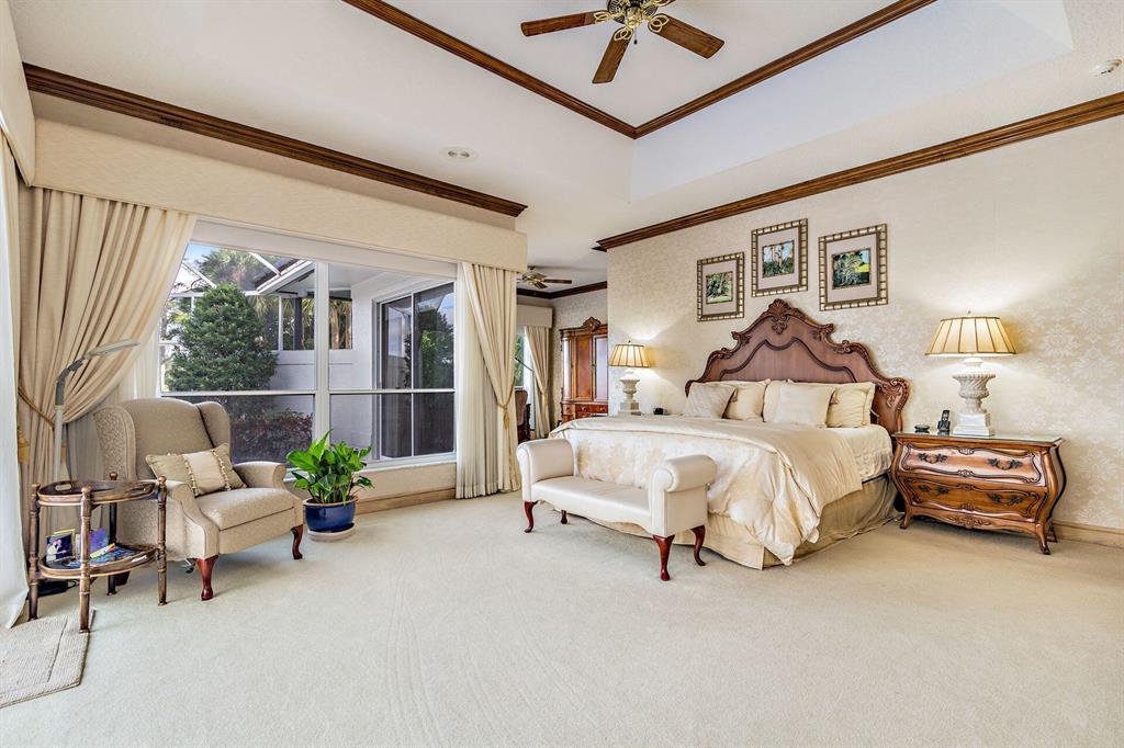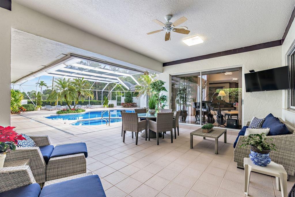 This premiere lakefront Island style contemporary estate home has sweeping views of the Rees Jones golf course on the 9th hole with views of The Breakers West Country Club seen in the distance. The moment you pull up the driveway you'll be taken in by the mature trees and lush landscaping . Beautifully paved driveway with a 3 car garage plus golf cart . New tile roof 2021. Newly painted exterior 2021. This estate has a detached 1 BDM Guest suite that you enter through a covered breezeway complete with bath & sauna. You have direct access to the tropical and newly redone pool and spa. A summer kitchen, covered loggia and an outdoor shower is the perfect place to enjoy the Florida lifestyle. The Guest Suite has the versatility to become an artist studio or home office.