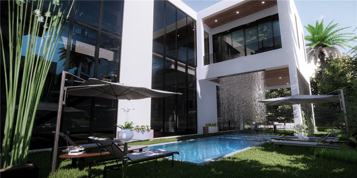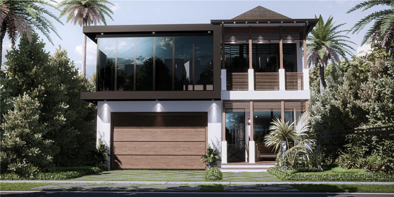 NEW CONSTRUCTION setting a new level of excellence with modern architecture inspired by Bali design. This one of a kind composition pairs function & esthetics, delivering a home conducive to today's lifestyle. The luminous open floor plan is enhanced by 2 story walls of glass, volume & 2 story ceilings & multiple doorways blending indoor & outdoor tropical living. A 1 story waterfall cascades from the ceiling of the covered patio into the oversized pool creating a wall of water separating the two areas. The 1st floor offers a culinary kitchen with large center island overlooking the great rm & formal dining rm, plus an ensuite bedrm & home office. The primary suite boasts 2 covered balconies lavish bathrm & walk-in closet. All bedrms are ensuite & 2nd floor laundry. Sq ft from developer