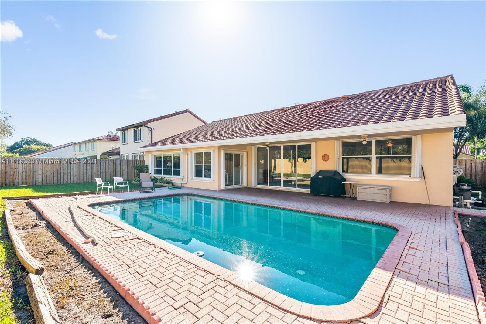 POPULAR "OXFORD 2" MODEL IN HIGHLY SOUGHT AFTER EMBASSY LAKES ** THIS FABULOUS HOME FEATURES 4 BEDROOMS, 2 1/2 BATHROOMS AND 2 CAR GARAGE ** VAULTED CEILINGS, A SPACIOUS LIVING ROOM WITH PLENTY OF NATURAL LIGHT **NEWER 10-YEAR-OLD ROOF ** ACCORDION SHUTTERS THROUGHT ALL WINDOWS **OPEN KITCHEN WITH WHITE AMPLE CABINET SPACE AND DOUBLE WALL OVEN ** OVERSIZED PRIVATE FENCED YARD WITH BEAUTIFUL POOL AND COVERED PATIO, PERFECT FOR ENTERTAINING **QUIET STREET WITH FRIENDLY NEIGHBORS. ACCESS TO SOME OF THE BEST ‘A’ RATED SCHOOLS IN SOUTH FLORIDA. RESORT-STYLE GATED COMMUNITY WITH FABULOUS POOLS, CLUBHOUSE, GYM, SPORTS COURTS, PLAYGROUNDS & 3 MANNED GATES.