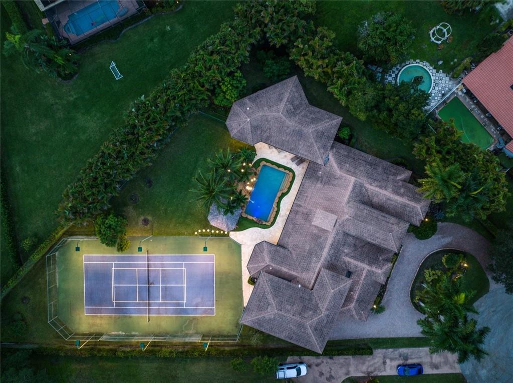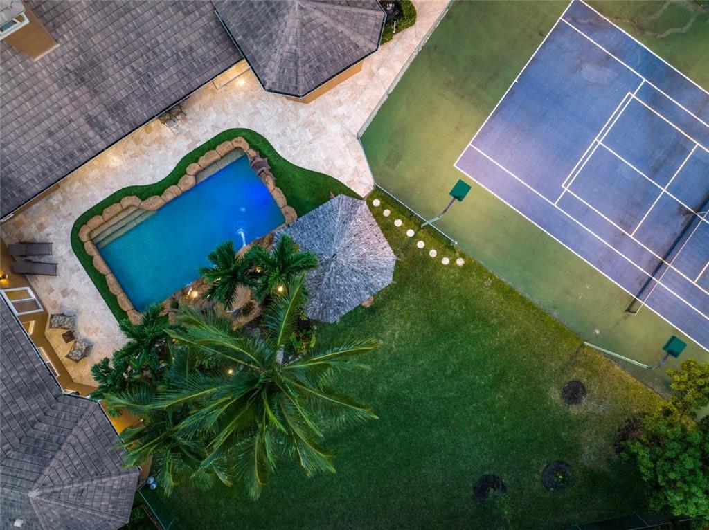 Simply a stunning & commanding estate within a highly exclusive community. Dramatic yet Light via walls of impact glass. Completely reconstructed in 2004. With 7,911 total Sq. Ft., lighted tennis court, 4 car garage, resort-style pool with waterfalls & slides, office, gym, au pair suite, huge loft, billiard room, craft room, butlers pantry, fireplace, gazebo, sprawling lot & a location within a quiet cul-de-sac, this home is a luxurious & private retreat. The kitchen is impressive in size, with glorious butted glass windows, top-of-the-line appliances, a large island, granite, pot filler, & fine wood cabinetry. The Sublime owner's suite is expansive & features a spa-like bathroom. Large living areas and a flexible floorplan lend for endless possibilities. Updates & Upgrades in attachments
