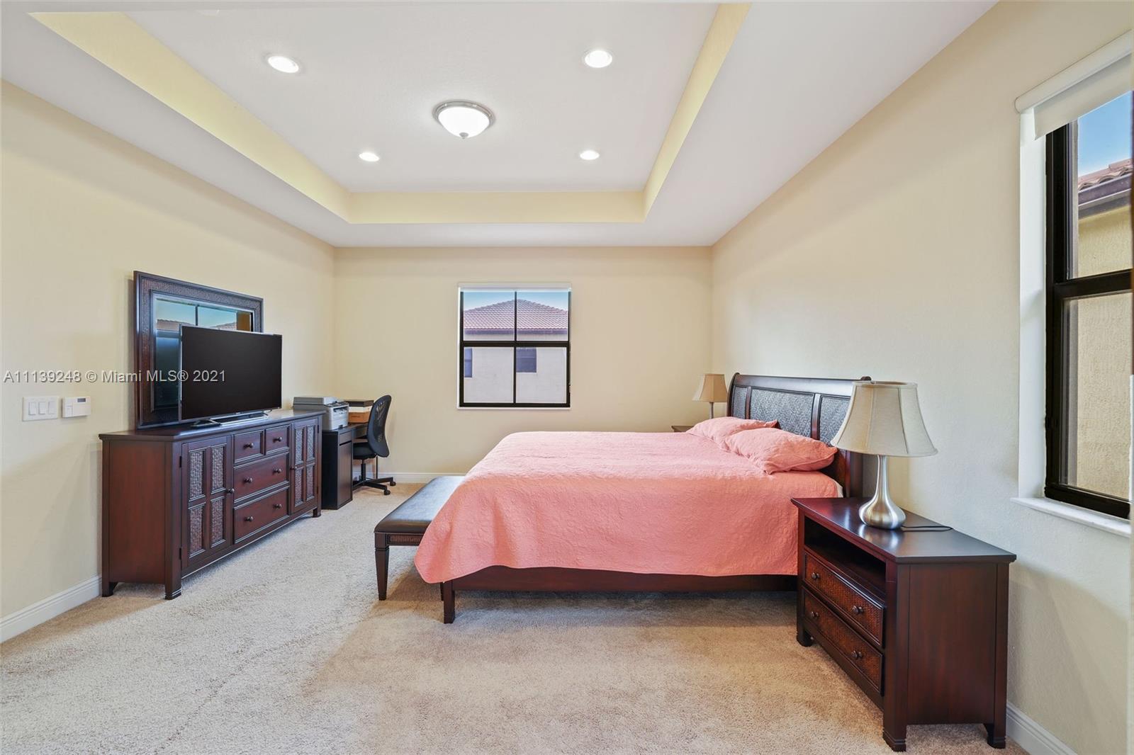 Welcome to Isles at Grand Bay, a beautiful, gated community in Doral. Enjoy resort-style living at its finest! This spectacular two-story home is in excellent condition and offers 4 bedrooms and 3 bathrooms, an open kitchen with stainless appliances, granite countertops, a wall oven, and a wine cooler. The spacious family room opens to a large, patio with pavers which is perfect for relaxing or entertaining. There is a bedroom and full main on the main floor which is perfect for guests or extended family. The Master suite is on the second floor with two additional secondary bedrooms and a laundry area. Attached two-car garage. The Community of Grand Bay offers a private club with amazing amenities including a pool, tennis courts, gym, basketball courts, playground, ballroom & more!!