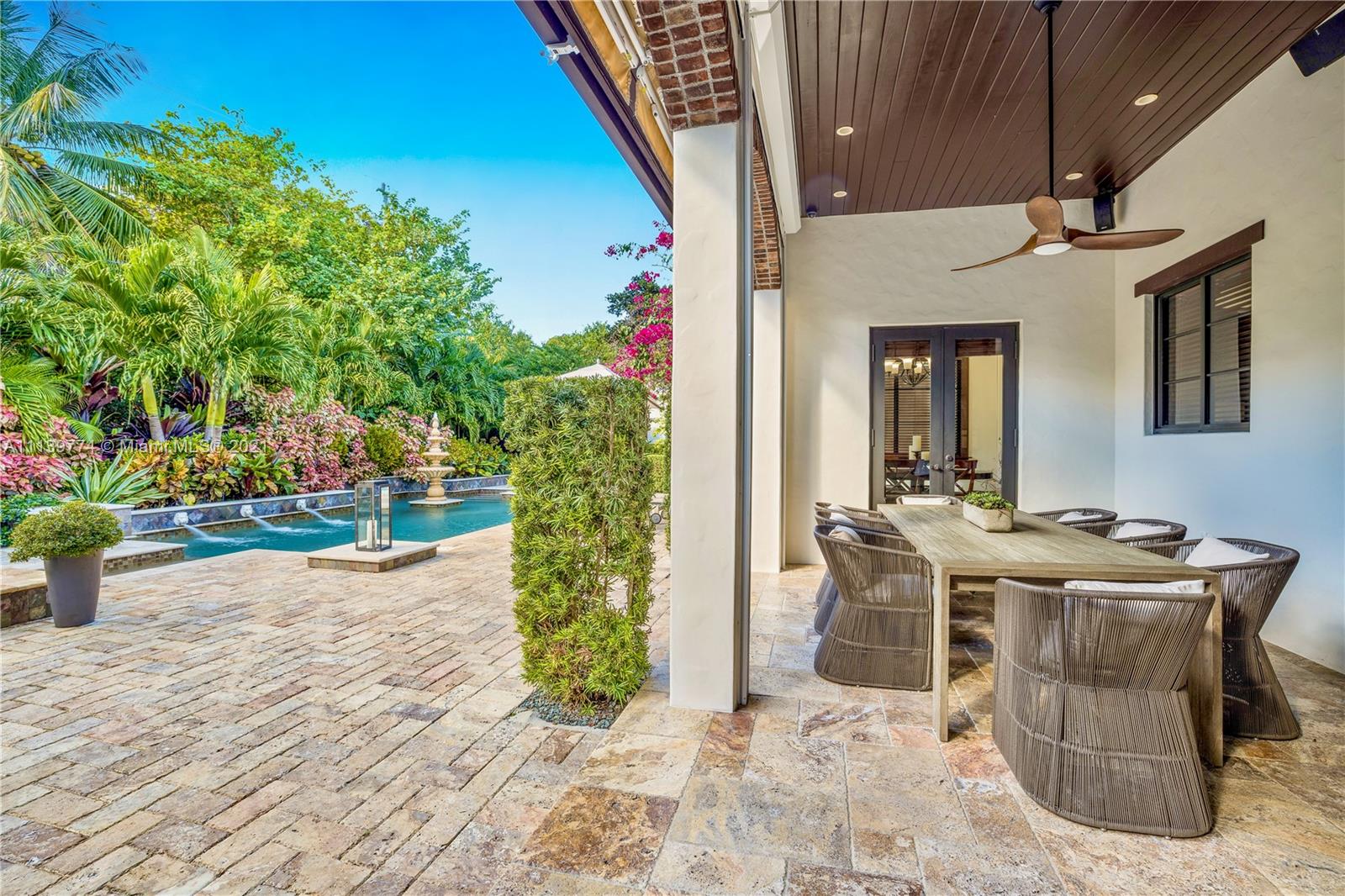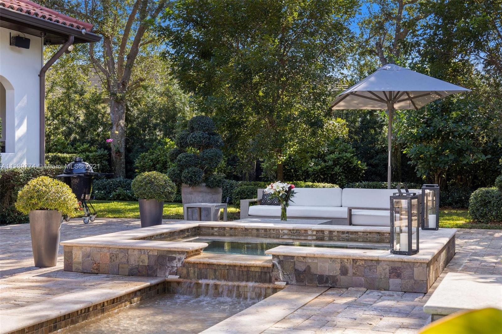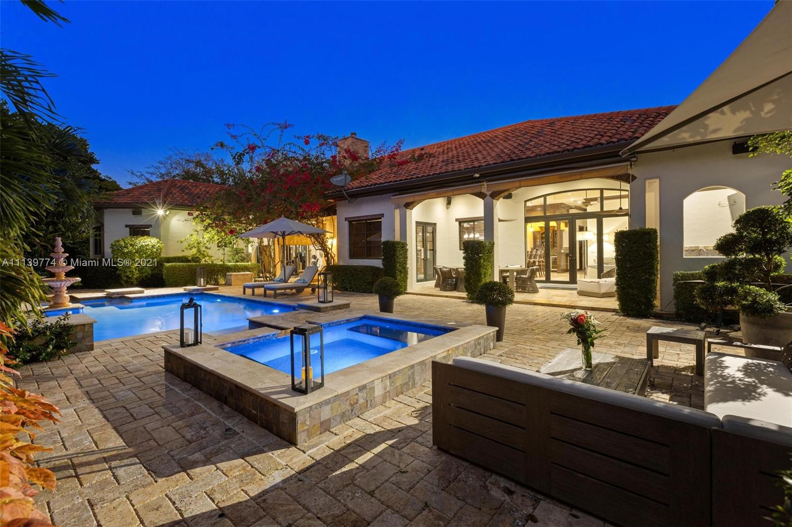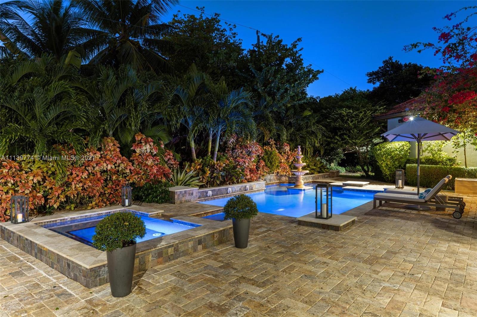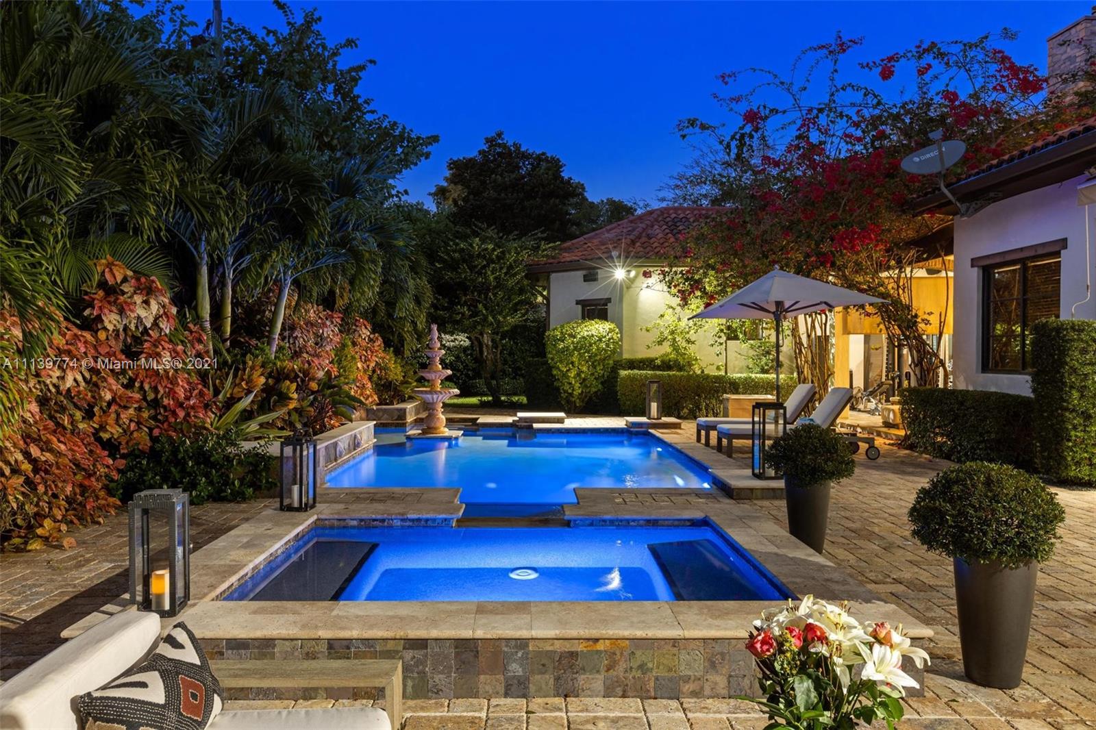 Welcome to your perfect Pinecrest sanctuary! This beautifully updated 1-story Mediterranean home is surrounded by lush tropical landscaping that creates a private & secure oasis in one of Miami's most coveted neighborhoods. Soaring ceilings, high impact windows & an expansive floor plan allow for plenty of natural light throughout the home. The romantic backyard features a heated salt water pool with lion head fountains, hot tub, summer kitchen with gas grill & a covered loggia for outdoor dining. Outdoor automatic sun shades & mosquito repellent system provide optimal comfort. Advanced $125k Smart Home system with 31 security cameras, 24-speaker Sonos Surround system & 1000 gallon full home generator. A+ rated school district & kid friendly neighborhood!