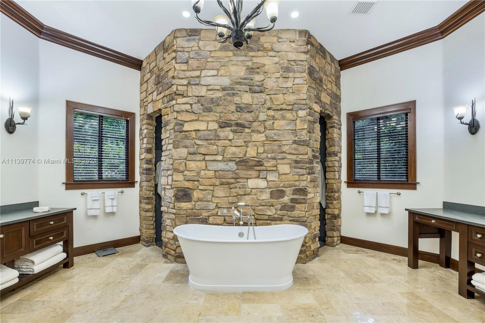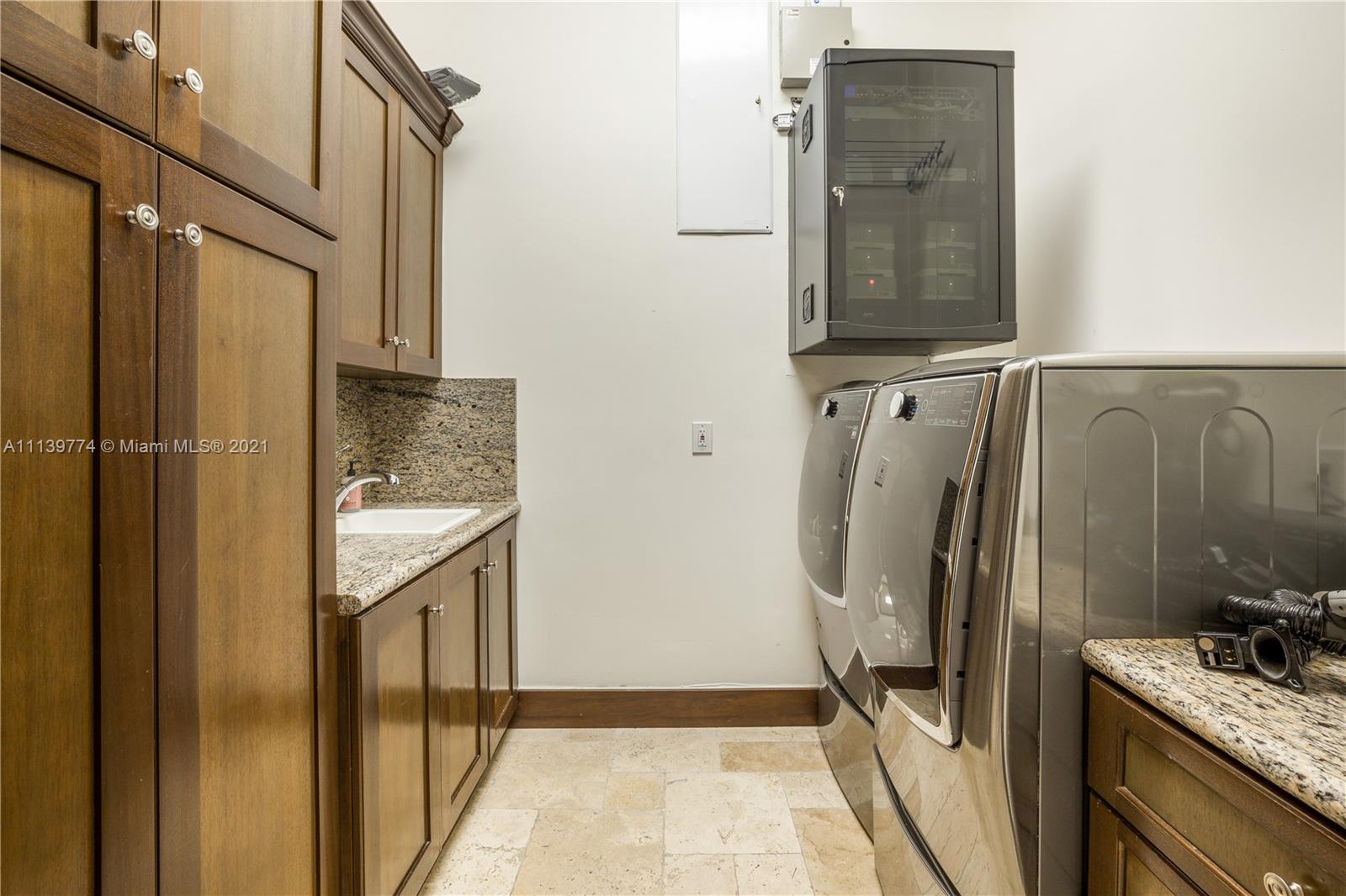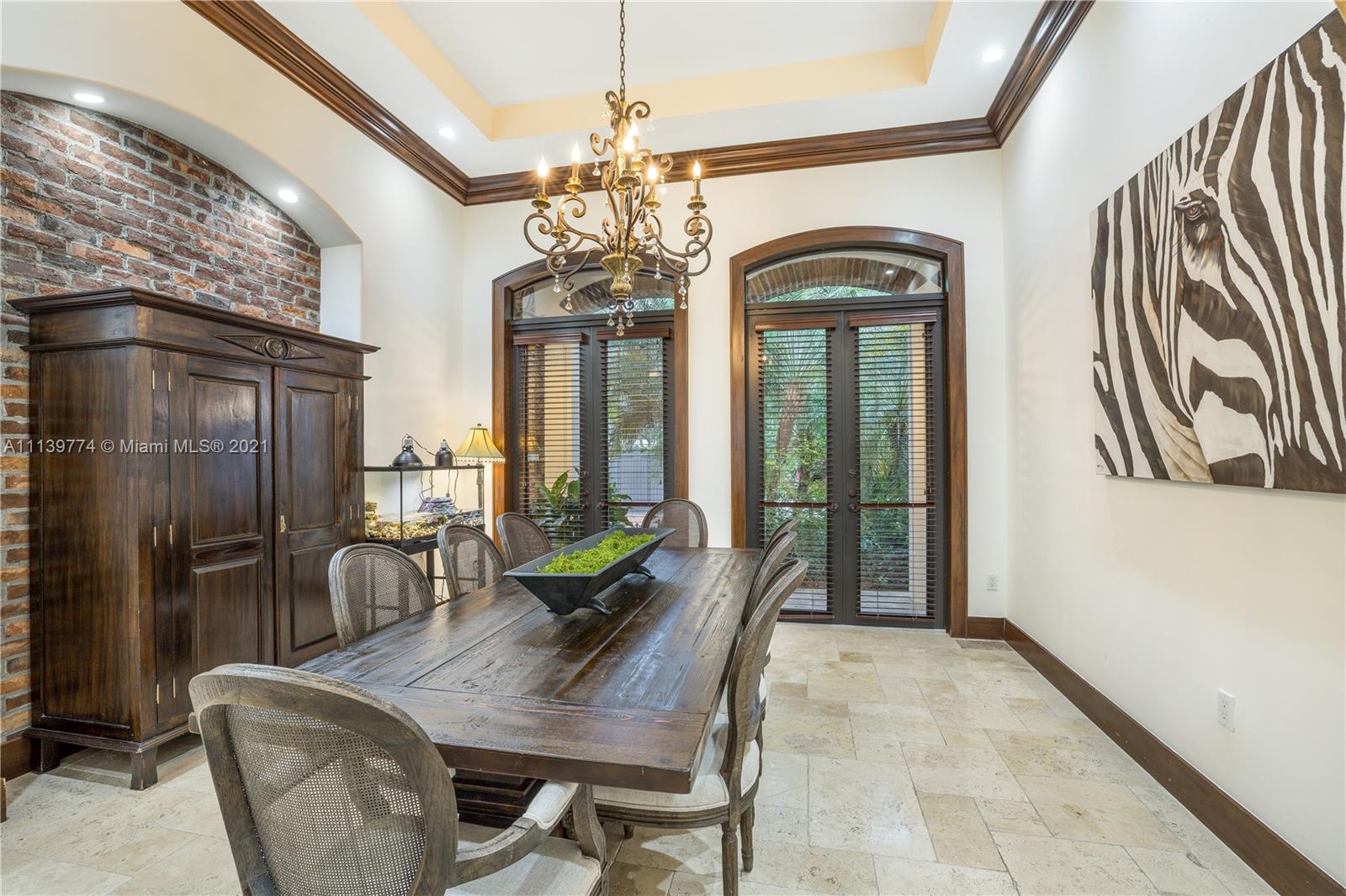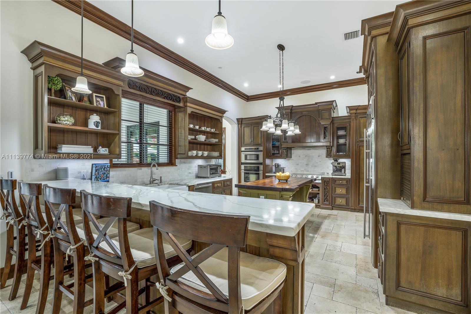 Welcome to your perfect Pinecrest sanctuary! This beautifully updated 1-story Mediterranean home is surrounded by lush tropical landscaping that creates a private & secure oasis in one of Miami's most coveted neighborhoods. Soaring ceilings, high impact windows & an expansive floor plan allow for plenty of natural light throughout the home. The romantic backyard features a heated salt water pool with lion head fountains, hot tub, summer kitchen with gas grill & a covered loggia for outdoor dining. Outdoor automatic sun shades & mosquito repellent system provide optimal comfort. Advanced $125k Smart Home system with 31 security cameras, 24-speaker Sonos Surround system & 1000 gallon full home generator. A+ rated school district & kid friendly neighborhood!