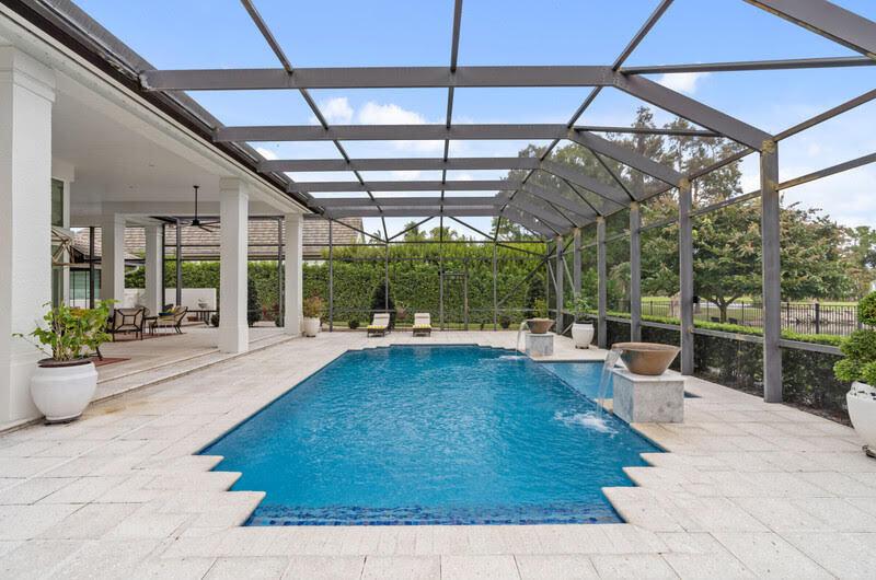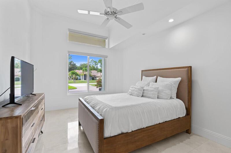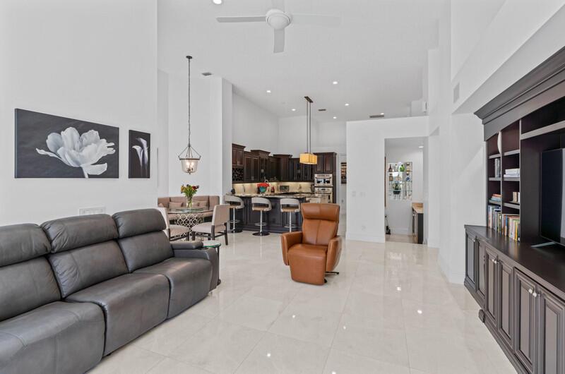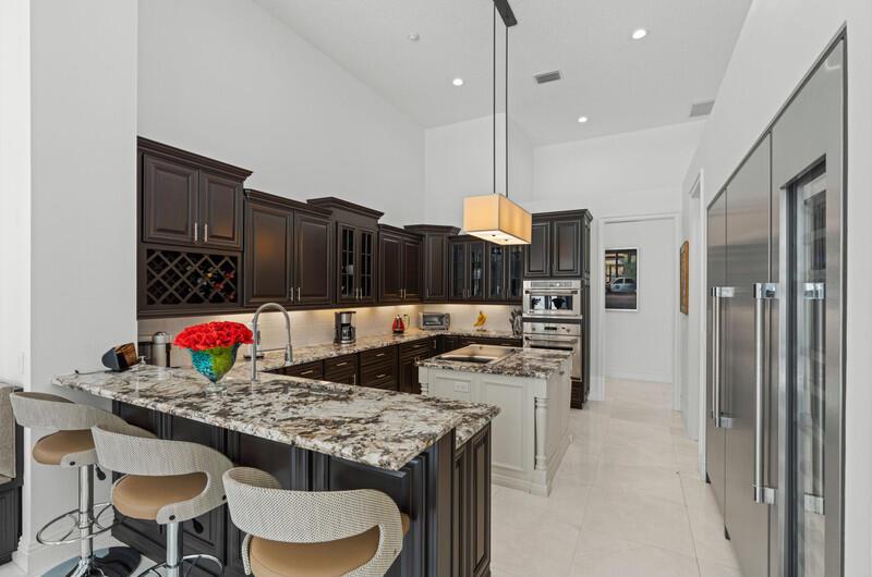 Start enjoying the South Florida life-style in the modern/ contemporary 4BR + Office, 4.5 BA custom estate home with over 4,100 AC liv area located in beautiful Breakers West in central West Palm Beach. Spacious, open floor plan with floor-to-ceiling windows/doors for lots of light. Newly installed marble floors and ceramic floor in garage. Gourmet kitchen with rich wood cabinets, white subway tile backsplash, 2019 Thermador wall unit refrigerator, freezer and wine cooler & Bosch appliances and wetbar. Master Suite retreat has patio views, HIS and HER custom fitted closets, and updated Master Bath w/white marble vanities & cabinets, and a lg walk-in marble shower with body sprays.