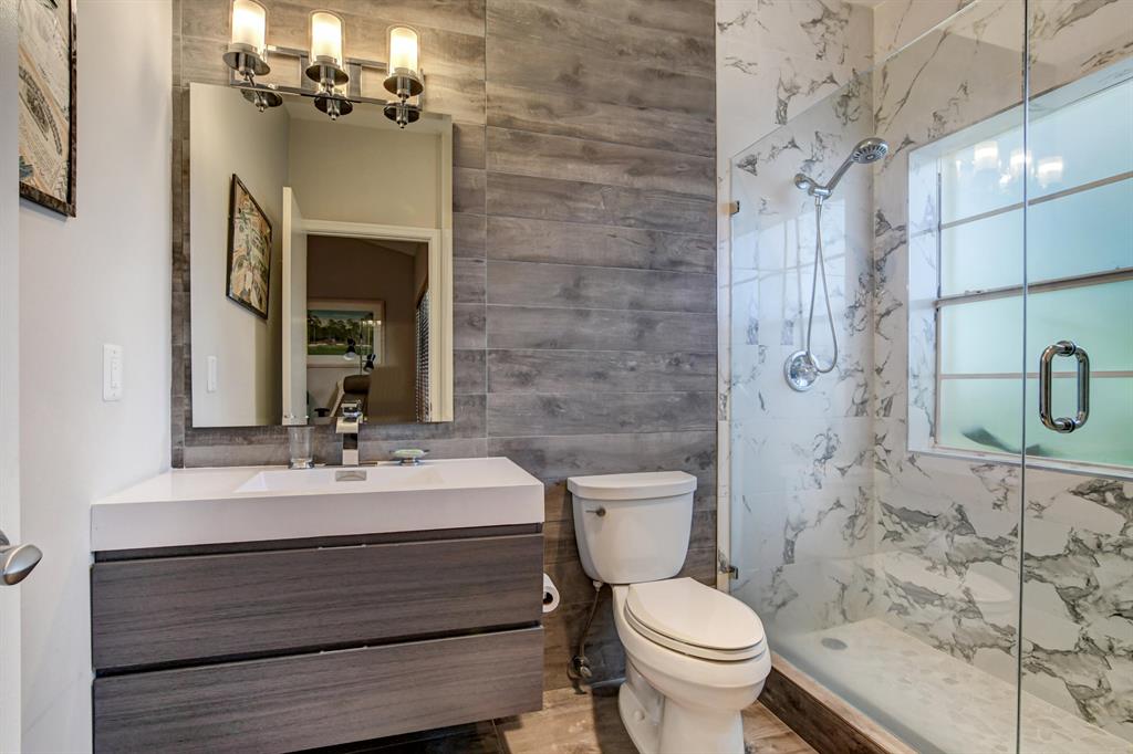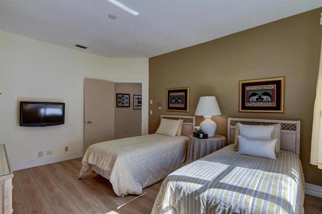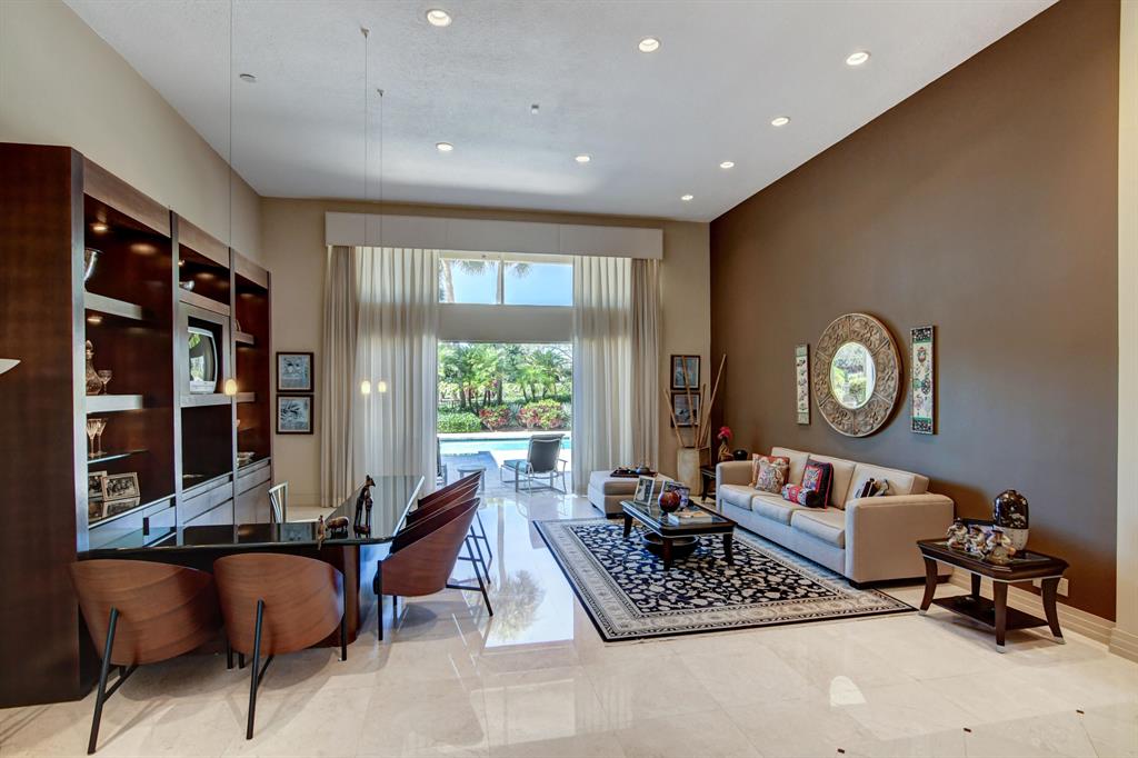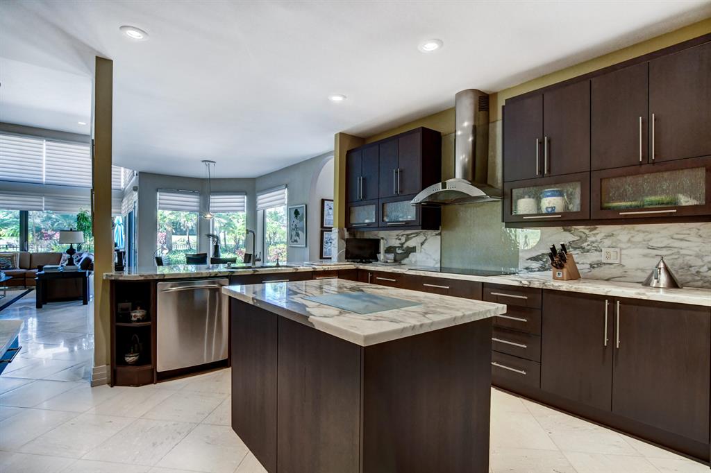 Sunny & warm tropical paradise! With 4000 sqft on over a third of an acre, this updated and well maintained home is ready for a new owner! Four bedrooms all ensuite (one bedroom used as an office) Split bedroom plan. Vaulted ceilings. Large family room off of kitchen with fireplace for entertaining and easy living. Custom wet bar. Renovated bathrooms and kitchen. Large lush backyard with pool overlooking beautifully manicured golf course and water. Stunning view. Walk to club house, tennis, fitness, golf and dining. Exclusive Bocaire Country Club with only 239 homes boasts resort style amenities, championship golf course, tennis, fitness, high end dining and a friendly community. A rated schools district, close to beach, restaurants, shopping. Won't last!