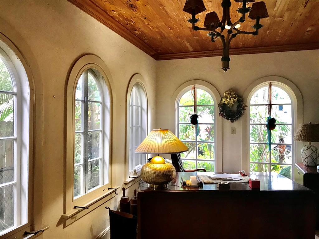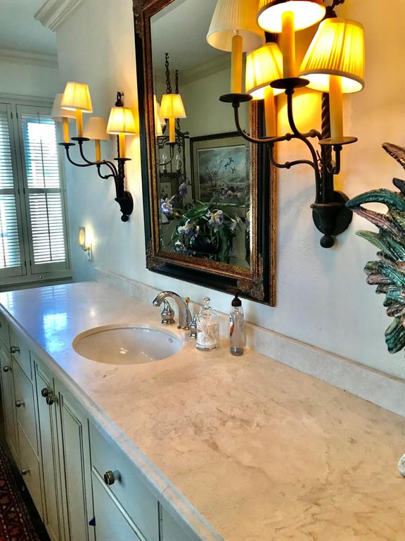 Located in a Historic district, 2 blocks from the Intracoastal, this amazing Palm Beach style home has been totally restored to perfection several years ago. This mediterranean beauty features a chicago brick circular driveway, an arched pecky cypress front door, a sumptous grand living room, coved ceilings, an spectacular stone fireplace adjacent a formal dining room with french doors overlooking a 3 tiered stone fountain and lushious gardens. A den/office with mutiple palladium windows, pecky cypress ceilings, tumbled travertine floors, a bedroom with french doors to the loggia and a full bathroom is also located on the ground floor.... continued on supplement