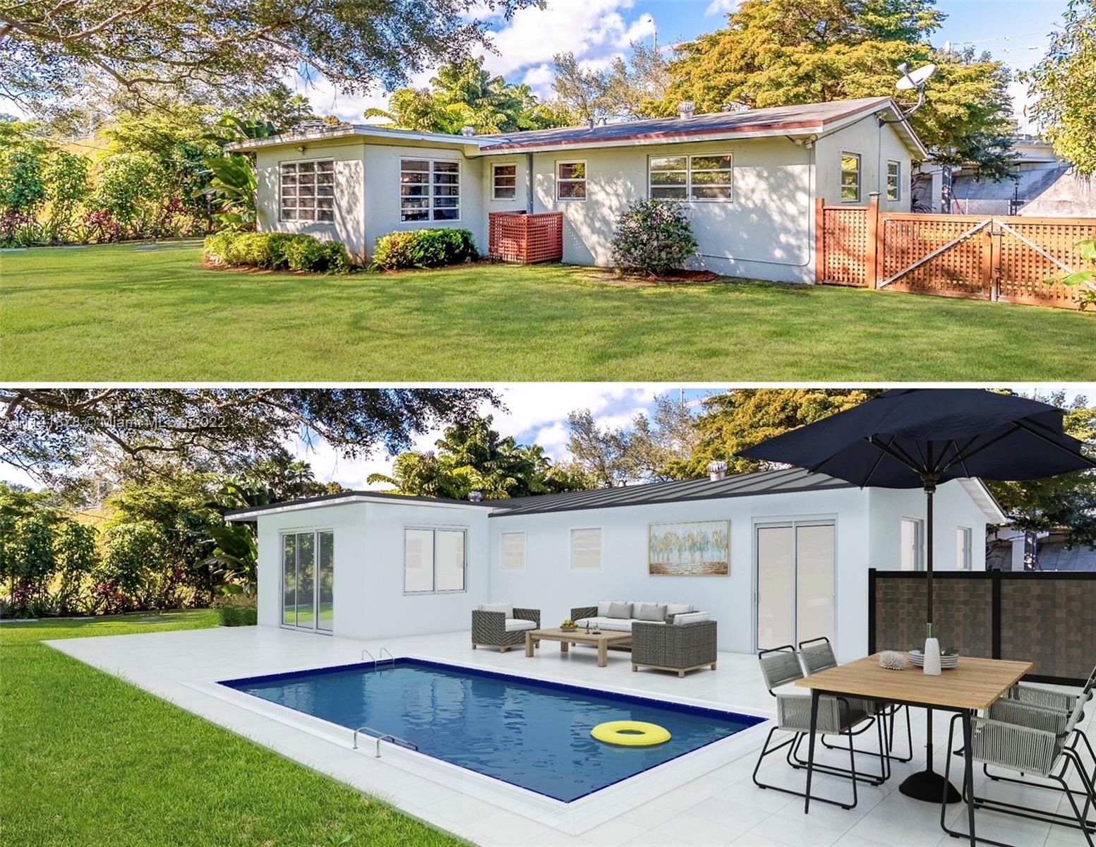 First time on the market in North Pinecrest. This delightful 3 bed 2 bath home is ready for its next owner. Home features gorgeous hardwood floors through out, gourmet kitchen w/custom wine rack, updated baths, 2 car garage & a large 18,500 square feet lot (.42 acre). Home is surrounded by lush, tropical landscaping and has plenty of room to expand. Home has been owned by same family since 1957 & has been respected, loved and cared for. Great Opportunity to finish to your liking or expand to create a dream home (check out the before/after photos for inspiration). Convenient North Pinecrest location close to everything, walk to MetroRail, Trader Joes & Captain's Tavern. Publix, Milams, Whole Foods, 836 short 5 minute drive. This tucked away lot on 98 street only has 2 neighbors. By Appt.