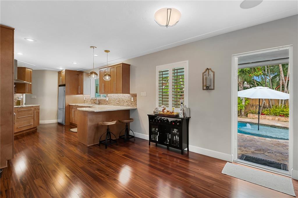 Come take a look at this move-in-ready home in the heart of Coral Ridge. Stepping inside you'll instantly notice plenty of natural light and a luxurious view straight to your tropical pool area and backyard. The interior has an open layout with a split bedroom floorplan that allows for the perfect entertainment space, but still plenty of privacy. This home offers four full bedrooms, A BONUS ROOM, and three bathrooms. The spacious bonus room has double French impact doors leading to the backyard, which can be used as a fifth bedroom, den, playroom, or office. Impact windows. Wood and tile flooring throughout. Located in the Bayview School District.
