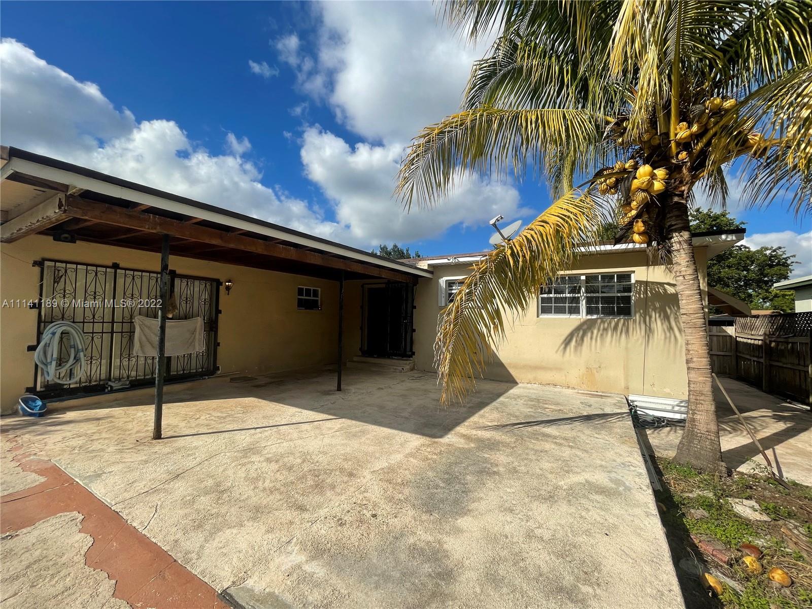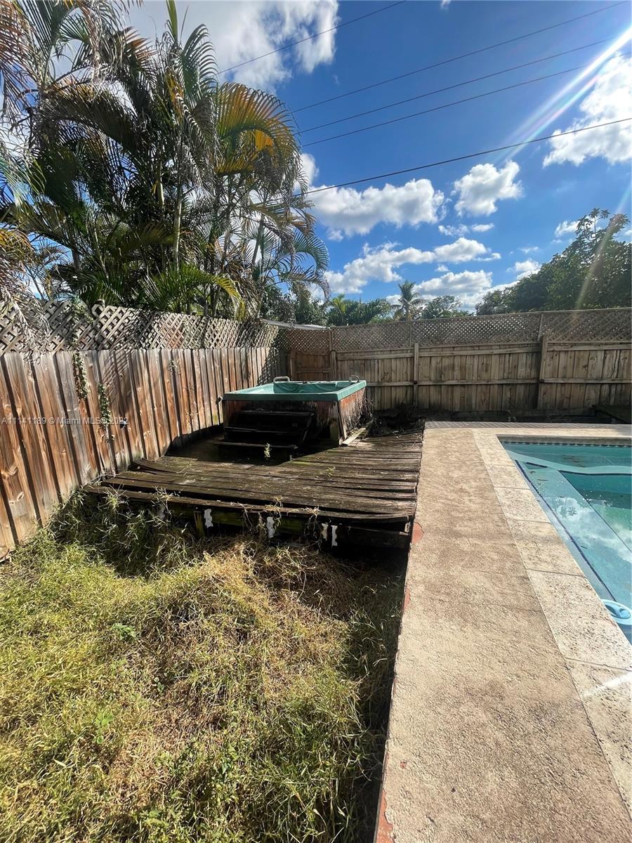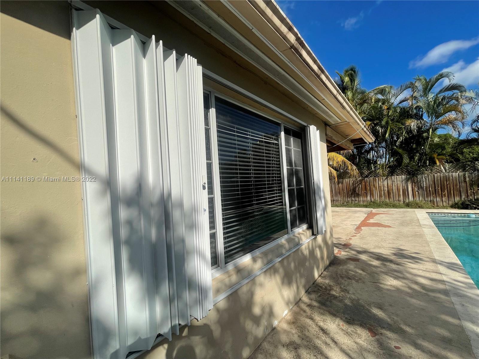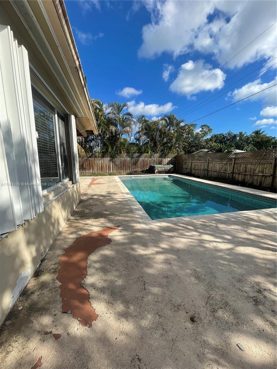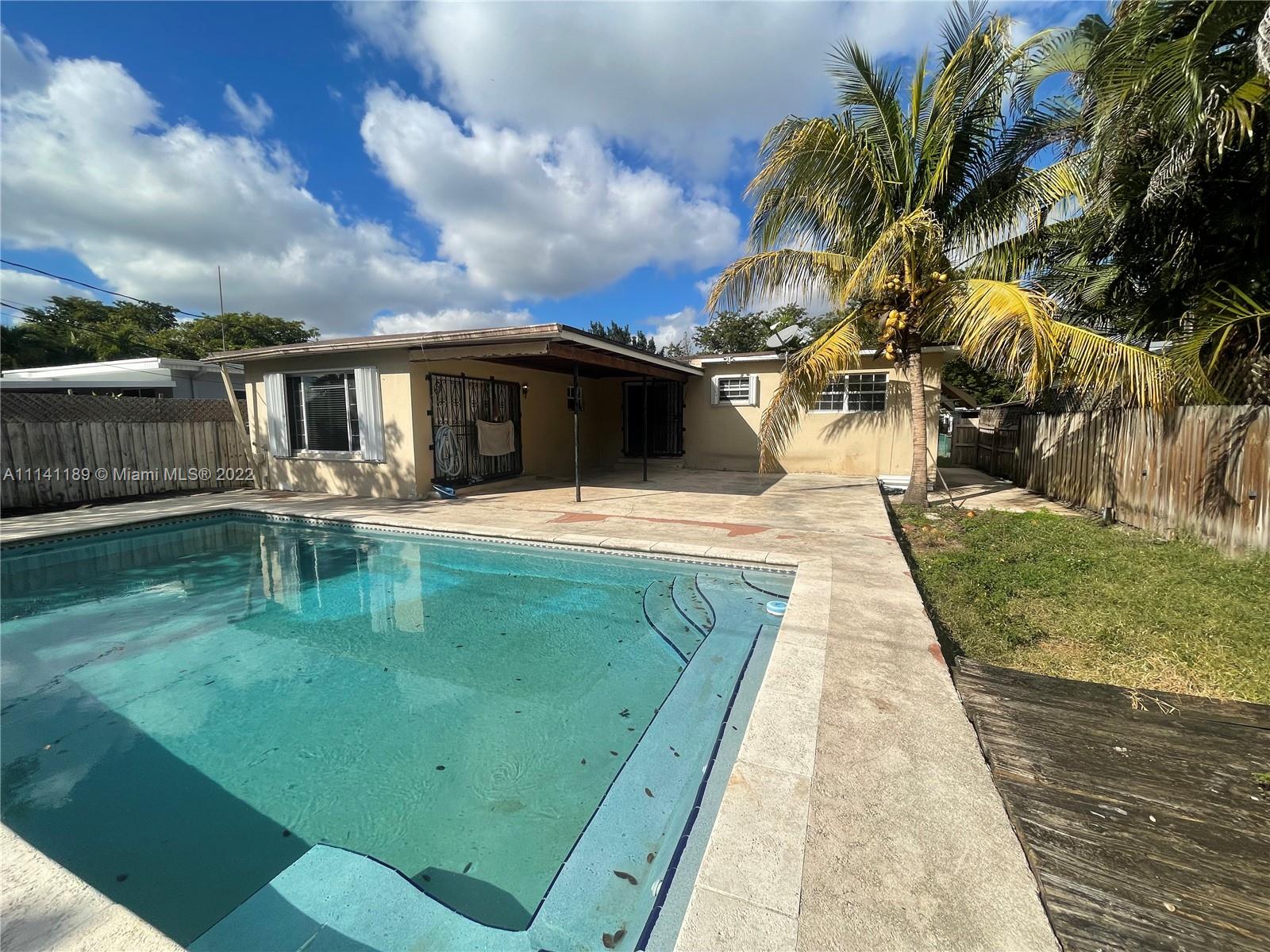 Property has a lot of potential with great size lot, needs TLC, property has a nice size pool, covered terrace, home is fenced, and has hurricane proof windows and shutters.