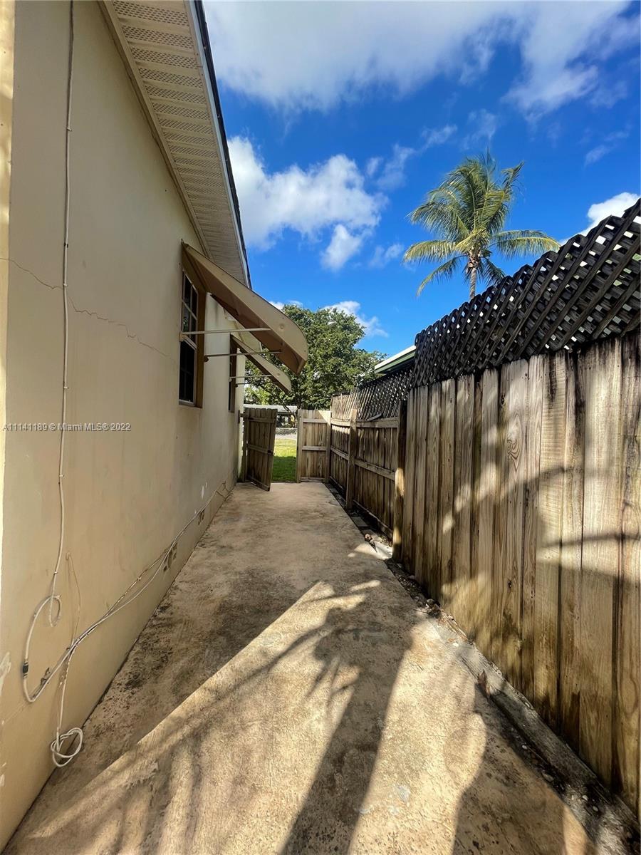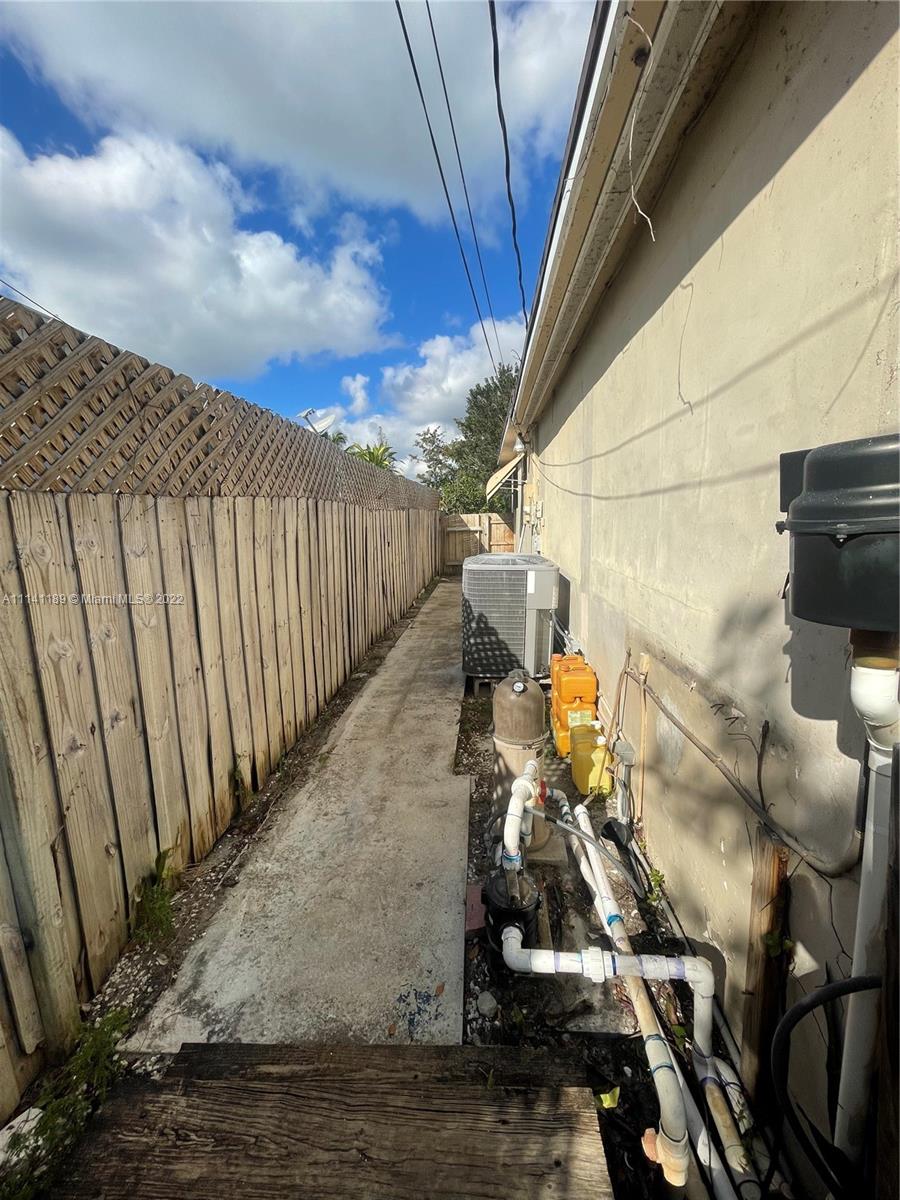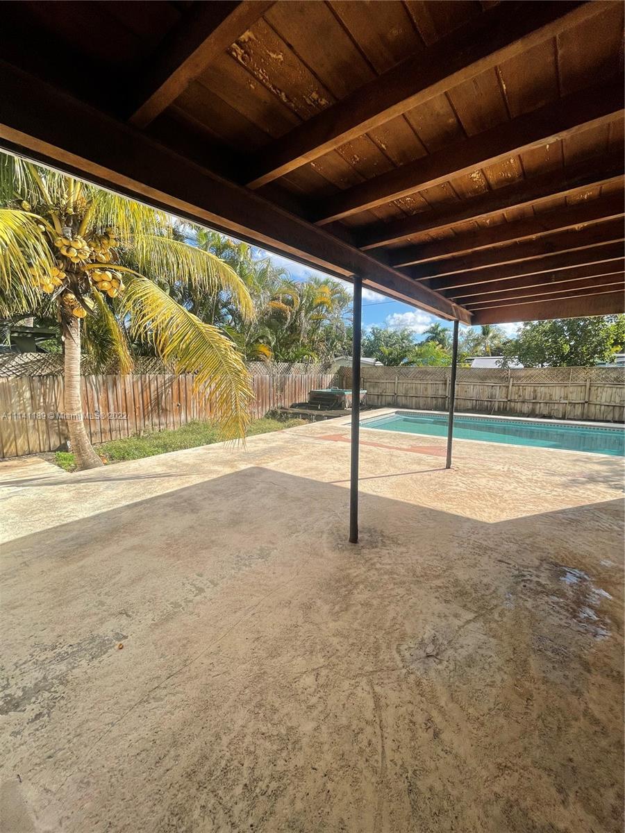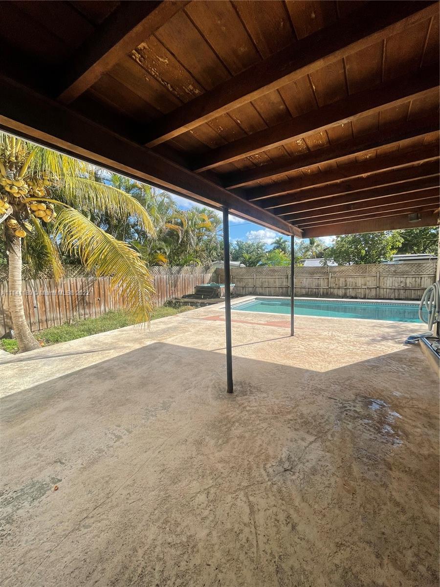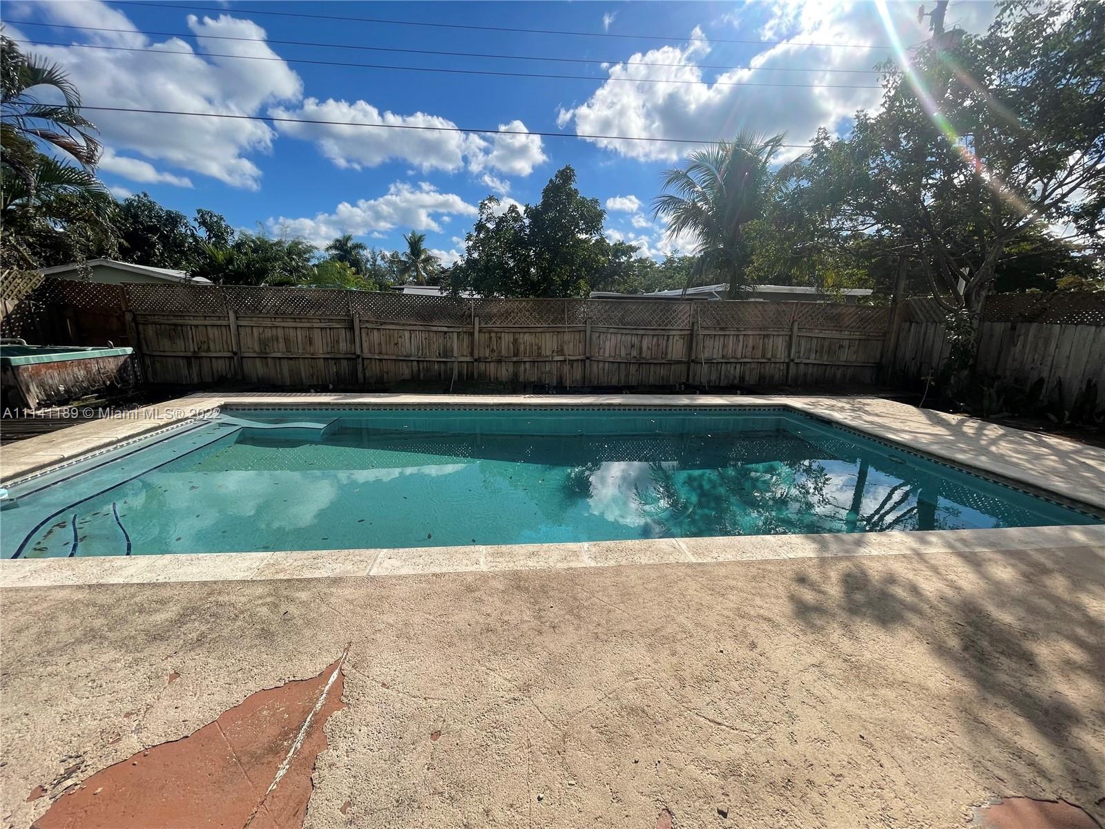 Property has a lot of potential with great size lot, needs TLC, property has a nice size pool, covered terrace, home is fenced, and has hurricane proof windows and shutters.