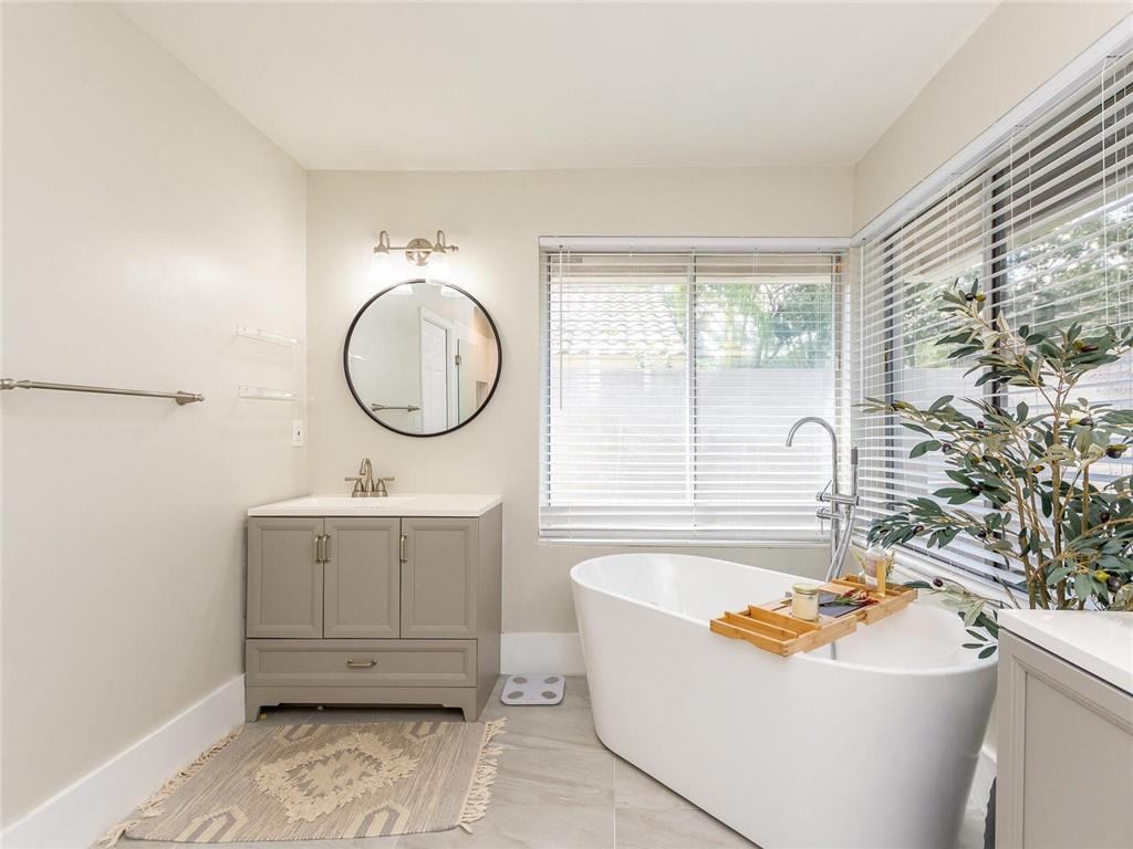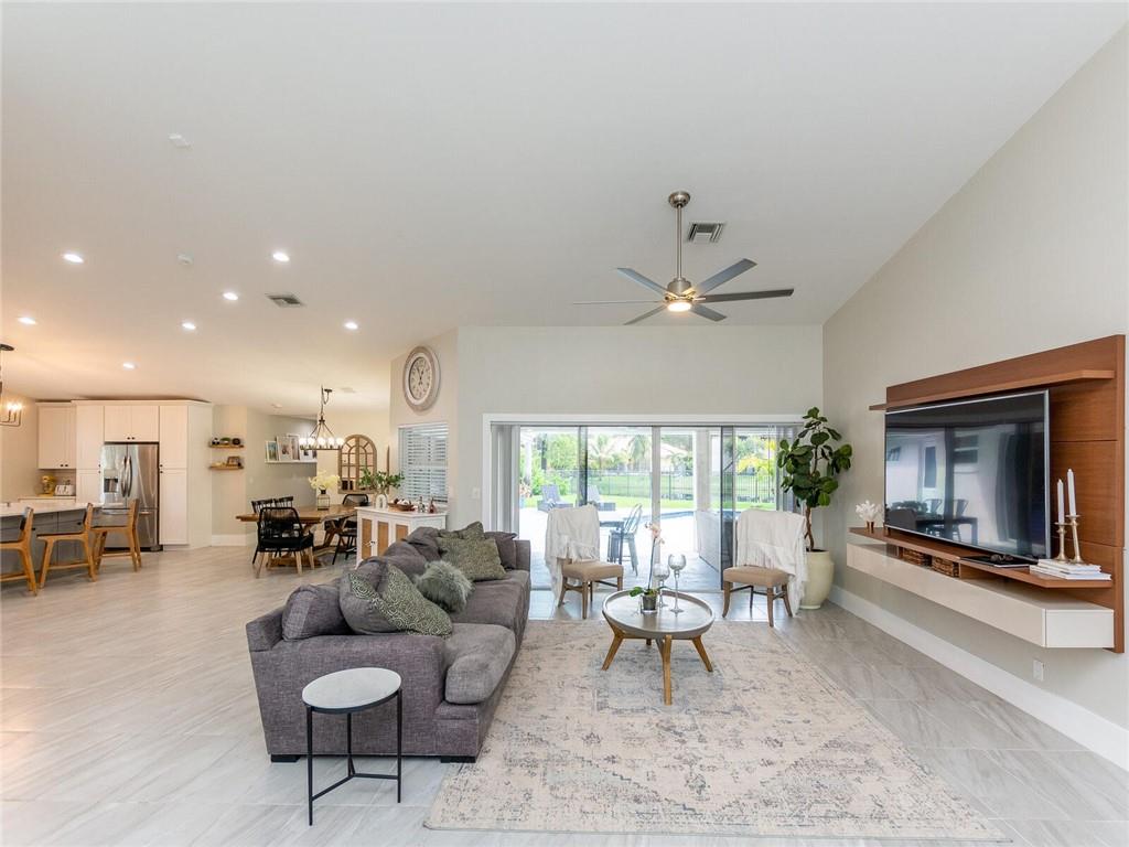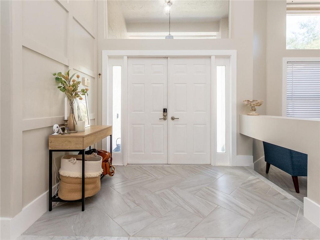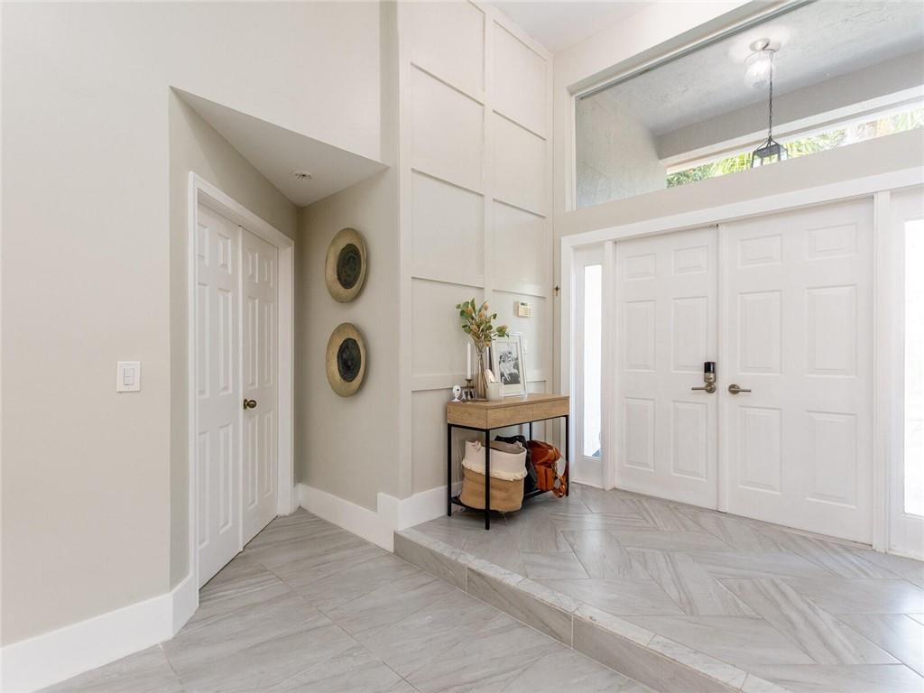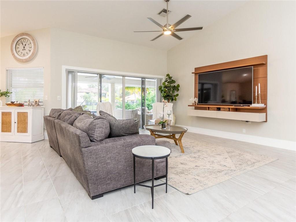 'STUNNING' CORNER WATERFRONT HOME FEATURING Wonderful Open Concept with custom porcelain flooring thru out, volume ceilings with extensive lighting, designer built ins,custom stainless and shaker kitchen with extended QUARTZ island and countertops, subway backsplash, extended covered patio overlooking private fenced garden and tranquil lake, custom lighting fixtures thru out, new sprinkler system, oversized backyard great for the children and entertaining, plantation shutters, alarm system, (2007) roof and A/C (3Yr) .. A delight to show!! SELLER REQUESTS..5 day inspection period, proof of funds to accompany offer, NO APPRAISAL CONTINGENCY