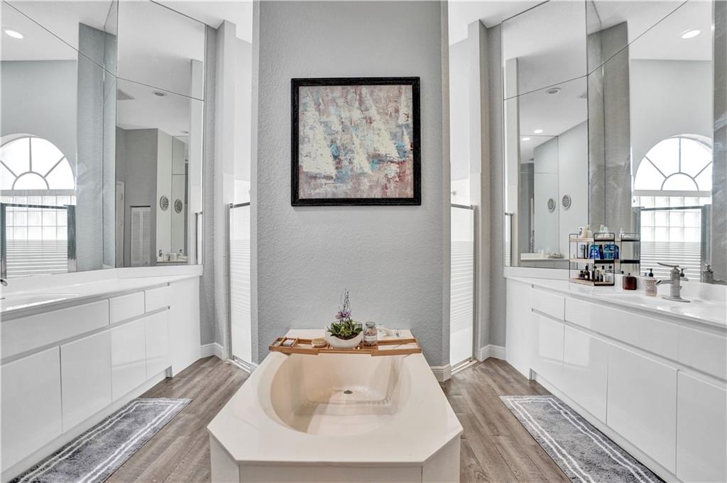 Located on a Corner Lot & Cul de Sac! This MODERN HOME features 5 BEDS, 3 BATHS + a 3 CAR GARAGE + Screened in POOL area for entertaining!! New Roof (2019) & Smart Home technology. Chef's Kitchen; SS appliances, induction cooktop, stainless farmhouse sink, white double shaker cabinets w/ custom roll outs, pantry, spice rack, black quartz counters w/ white veining, & cabinet under mount lighting. Jack & Jill Bathroom features a double vanity, shiplap feature wall & hexagon tile floors. 22" deep soaker tub, frameless glass sliding door, rainfall shower head w/ matte white subway tile. Newer paint both int. & ext. Custom plantation shutters & drapes throughout. Landscaping includes low maintenance plants. A+Schools, Parks nearby, Shopping & Major Hwys. LOW INVENTORY IN PARKLAND, A MUST SEE!