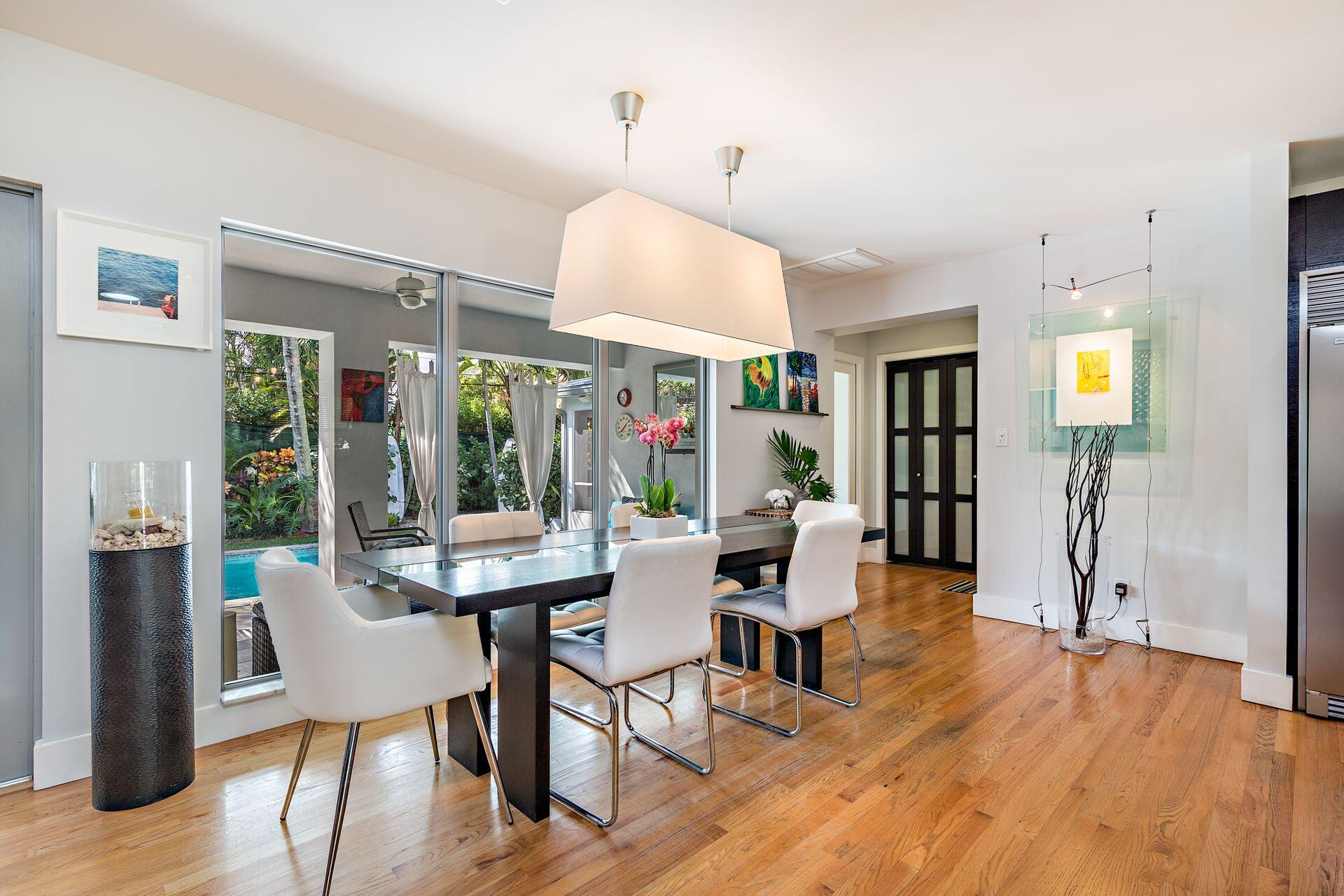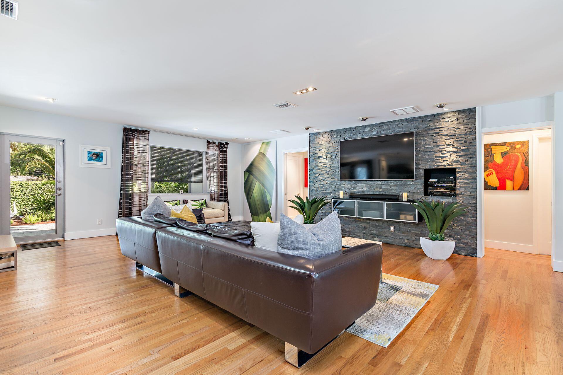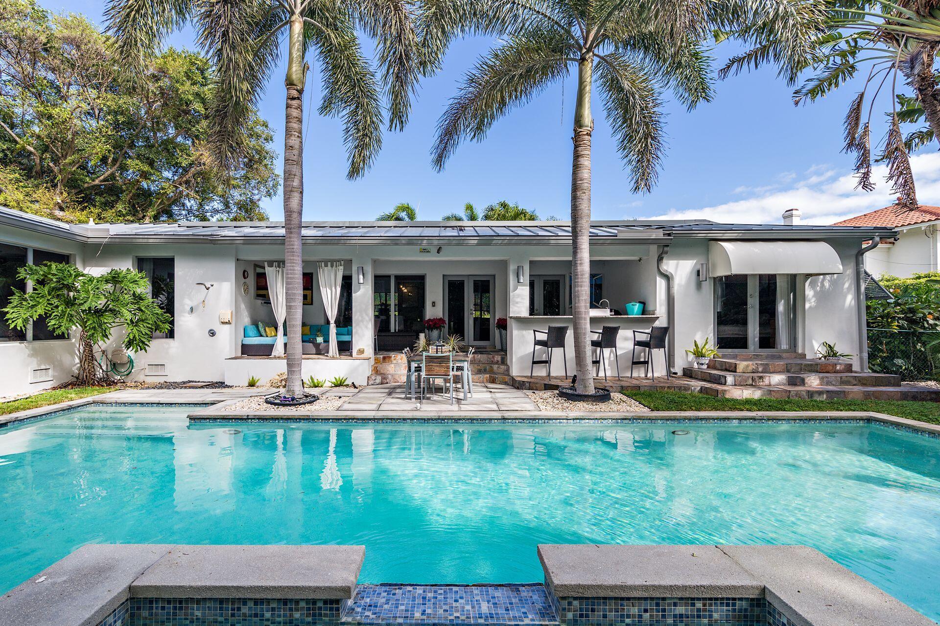 Mid Century Gated Estate. Upon entering the custom gates, you are struck by the precision of the architecture and lush tropical landscaping of this fully renovated and 2008 expanded residence. Situated on an +/-16,197 sqft lot in Historic Prospect Park, this 3 bedroom, 3 bath open floor plan home boasts full hurricane impact windows and doors, 2008 metal roof and a full house gas generator. The open kitchen is a Chef's dream appointed with a 5 burner gas range, a substantial 9ft x 5ft Carrera marble Island and double ovens. The residence offers expansive outdoor entertaining spaces including a resort style, gas heated, 36ft x15ft lap pool and spa. Additional features include, hardwood flooring throughout, secluded primary suite, 1 car garage with storage, driveway parking for 5+ cars,