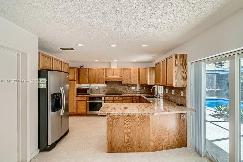 Welcome to this lovely 4 bedroom, 2 bathroom home in the Mirror Lake neighborhood! You will be impressed with the double doors that greet you as you enter the home into the spacious living space that can also be used for a pool table. The kitchen boasts ample wood cabinetry, stainless steel appliances, and a breakfast bar. Retreat to the primary bedroom that offers generous closet space and an en suite bathroom with a glass-paneled shower. The backyard features a screened-in large patio area with an in-ground pool. This home is located centrally near several shops and eateries with easy access to Florida’s Turnpike for commuting!