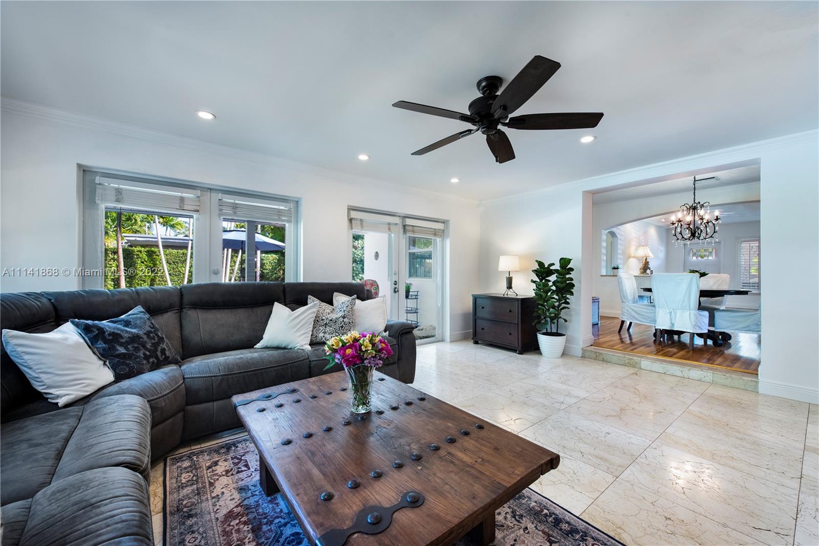 A Miami Shores 1940's Classic, in a prime location surrounded by some of the most prestigious homes in the neighborhood. This charming home offers affordability and ambiance with its wood burning fireplace, hardwood floors, and archways--all features hard to find in modern day homes. The large family room with multiple windows offer French doors to covered patio and beautiful private pool area. Easy to live in as it is or add on as your family grows.