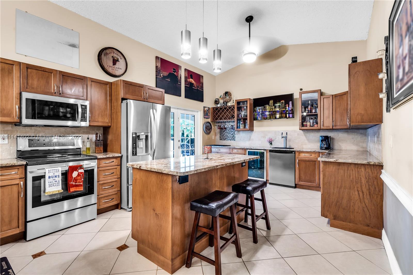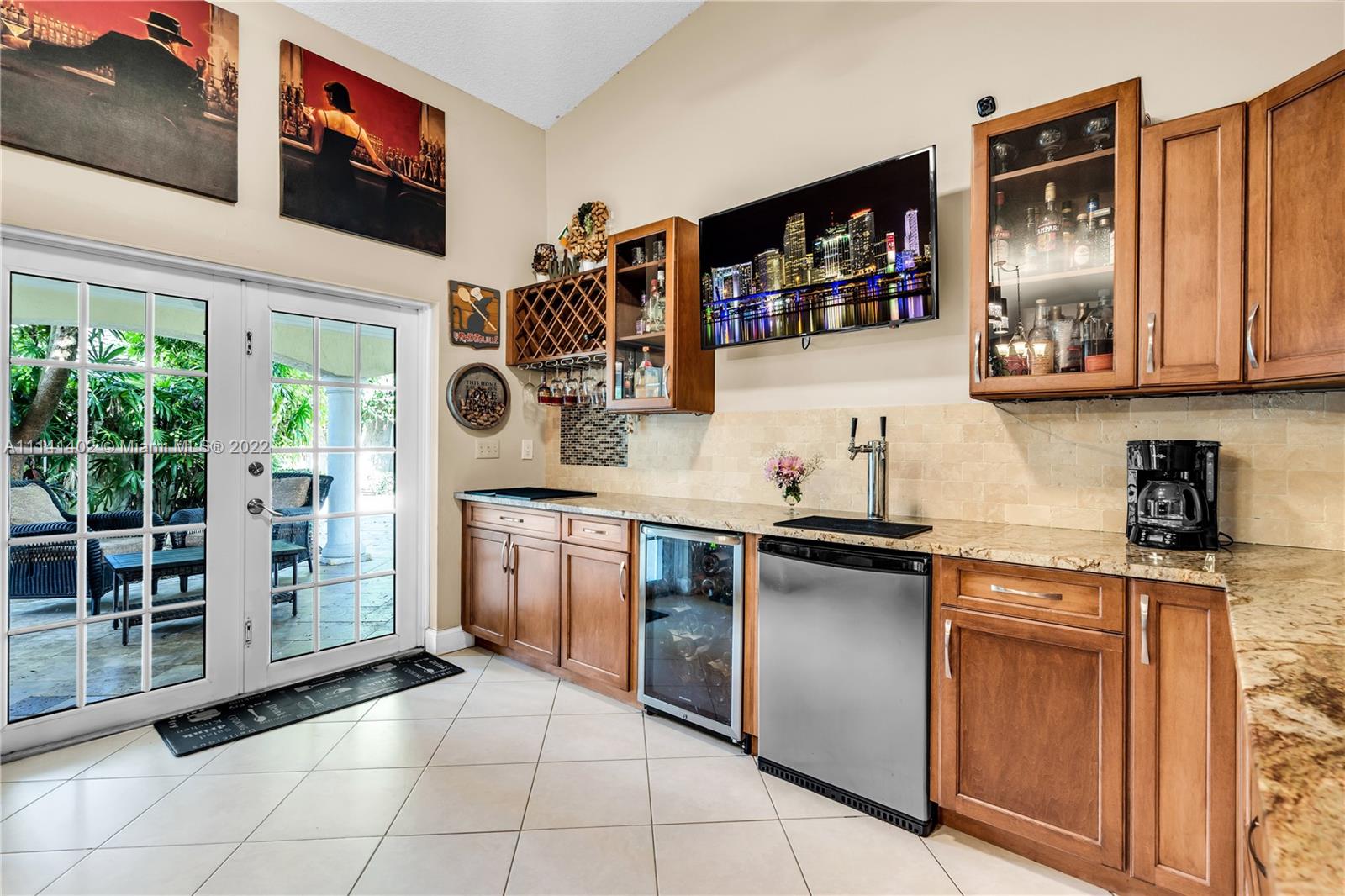WELCOME TO PARADIDE DESIRABLE IVANHOE property 3 bedrooms 2 baths plus office POOL home. Beautiful open floor plan with vaulted ceilings. Remodeled open kitchen with island and wine cooler beer tap and fridge installed perfect to entertain. Plenty of French impact doors for natural light Walking distance to elementary school and many parks. Across from community pool and guest parking. Backyard with a wraparound terrace with a beautiful view to the pool and landscaping. Double car garage with an U Open safe in the garage floor, storage cabinet sand workbench Owners leaving additional tiles for floor kid's room, roof and back patio. Property total square footage under air 2,075. EASY TO SHOW !!