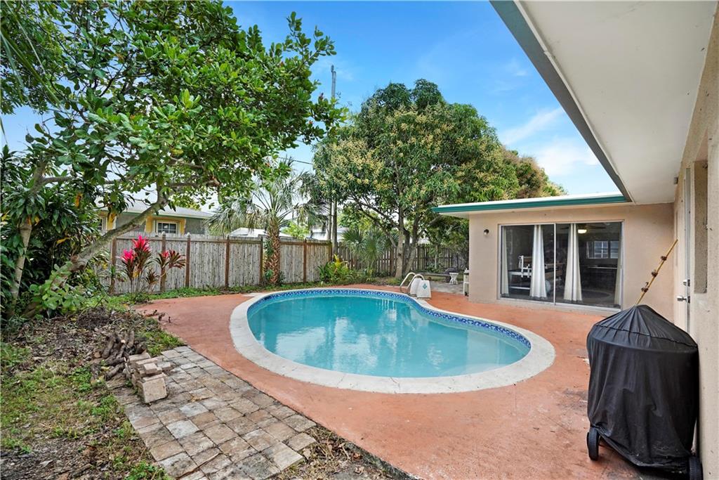 Large Melrose Park 3/2 pool home with a huge family room, 1 car garage and a lot of recent updates. Newer SS appliances. New roof & gutters in 2020 along with a new master bathroom. Pool resurfaced, new tiles, rebuilt pump and paver patio in 2020. House was just tented December 2021, AC only 4-5 yrs old. Lots of fruit trees, 2 types of mango, chahew, soursop, strawberry tree & Jamacian apple tree. Washer & dryer do NOT convey.