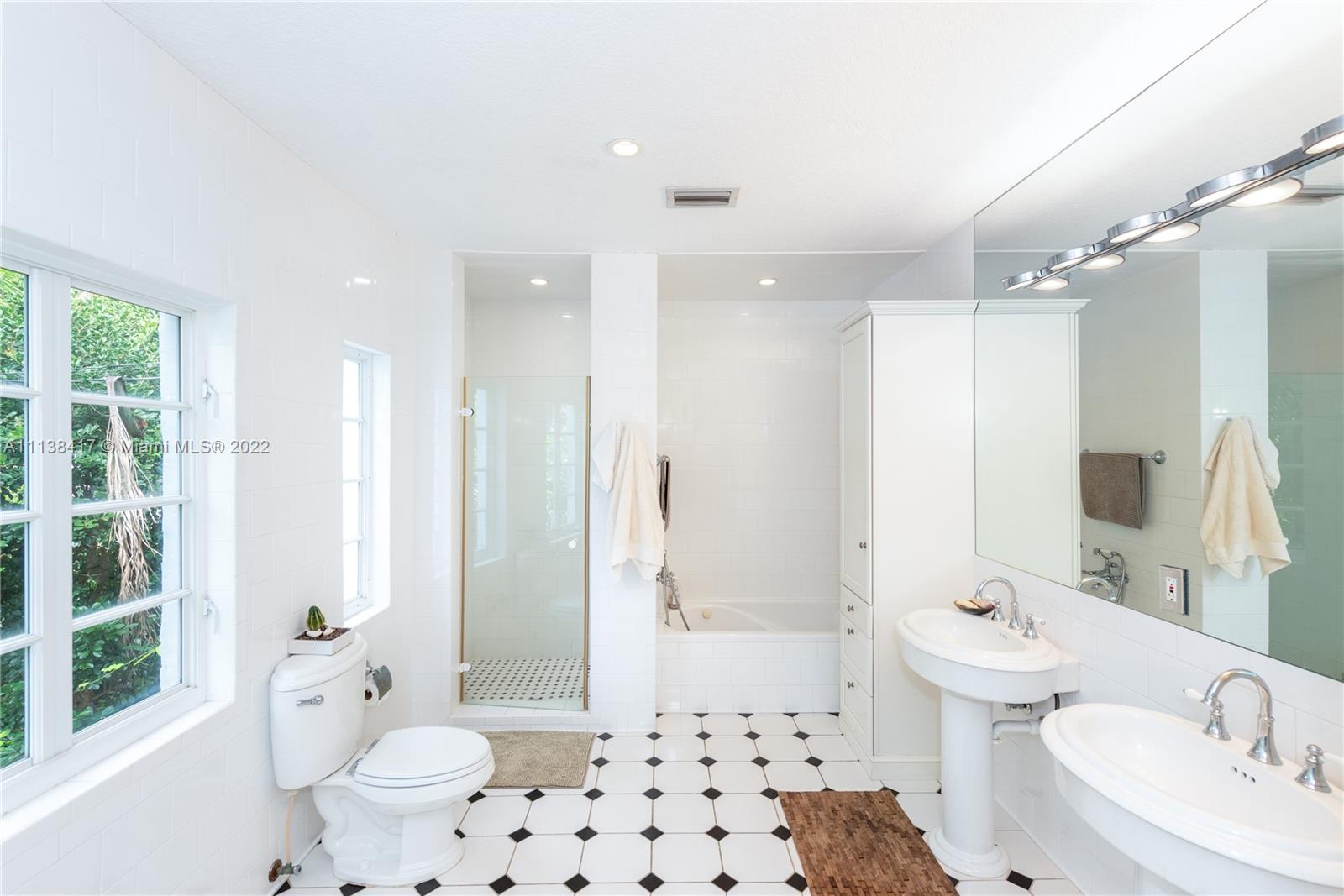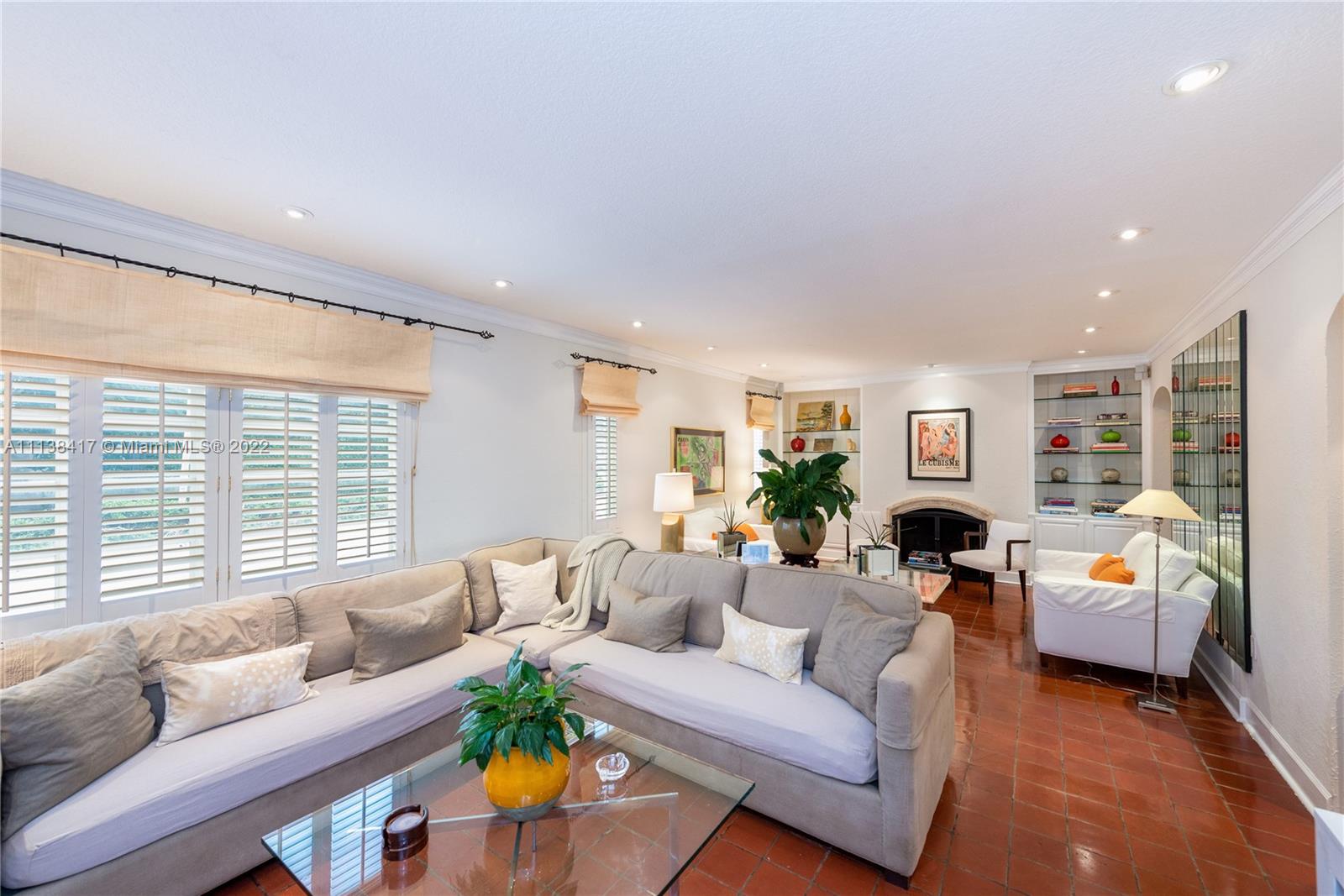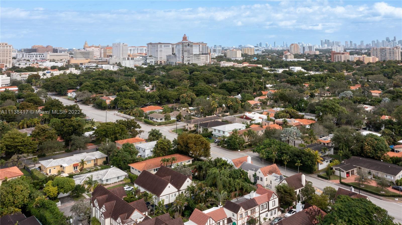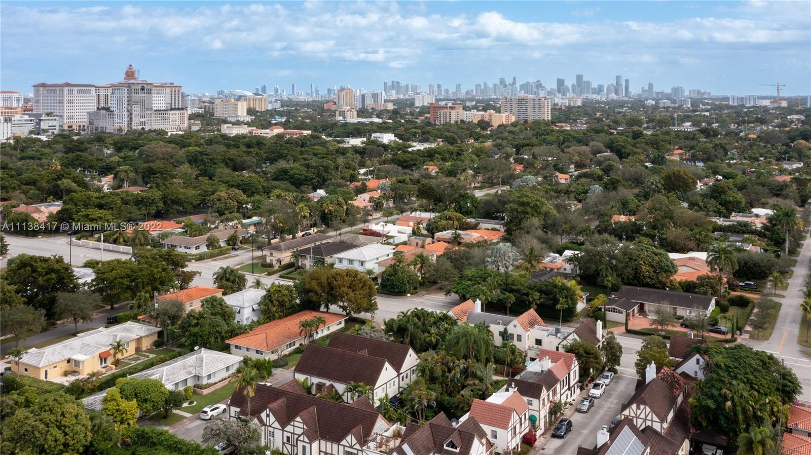 New Listing! Charming townhome in the Historic French Normandy Village. Located on a cul de sac just off LeJeune Road, N of Bird, this adorable 1925 home has been meticulously renovated. Foyer entry leads to LR with a high ceiling, crown moldings, a fireplace, and a glazed brick floor. The formal DR has a French door to a magical garden with tropical plantings and winding paths. Qwners purchased an extra yard that was platted for another townhome and now have room to add a garage with floor above or pool. Downstairs near the updated kitchen are a den and half bath. Upstairs are 2 spacious master bedrooms each with renovated baths, large closets, & built-in bookcases. Impact windows. 1842 Adj.sq.ft. FIRM PRICE. Truly a special home with a romantic, fairy tale ambiance. No association fee