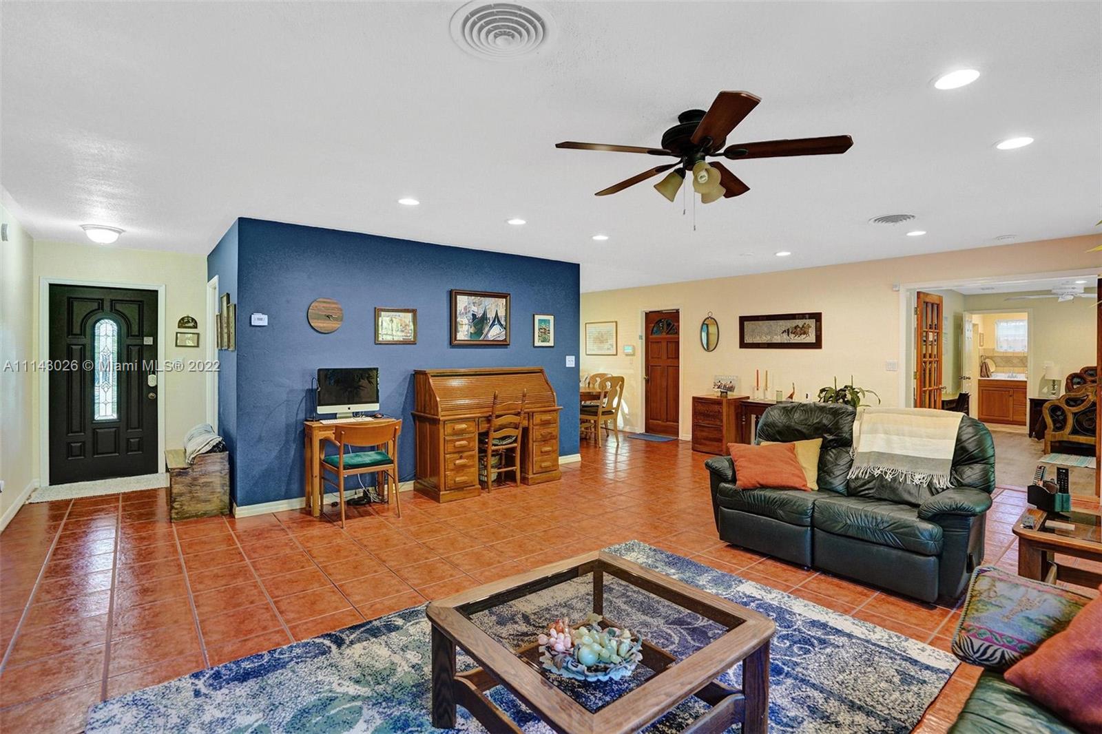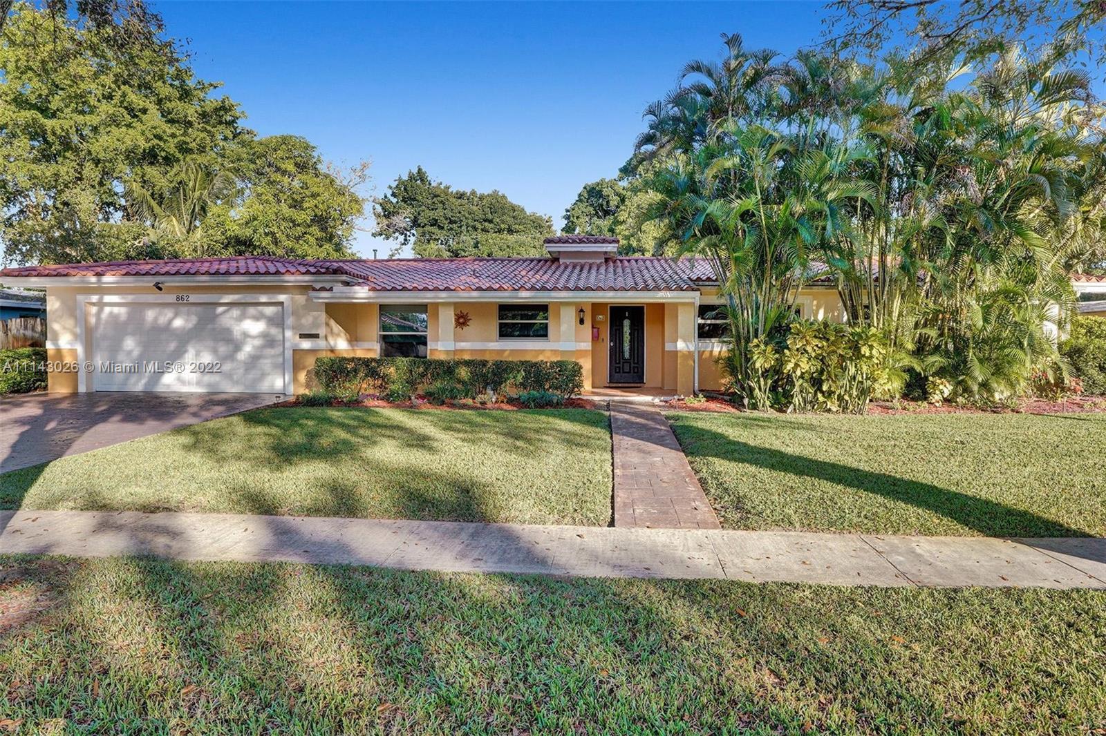 After passing the pristine front landscape, you’re ushered inside into the open-concept living area with vibrant tile flooring, and tons of natural light. Around the corner, you’ll find the quaint dining area and the galley-style kitchen with granite countertops and solid wood cabinets. Relax and unwind in the primary bedroom, which boasts a magnificent, updated ensuite bath and plenty of closet space. The four remaining bedrooms give you plenty of space; each room has either new wood like flooring or carpet, and the rear bedroom, includes a walk-in closet, a full cabana bath with access to the back patio. Behind the home you’ll find a large pergola, an outdoor hot/cold shower, paver patio and custom in-ground pool.