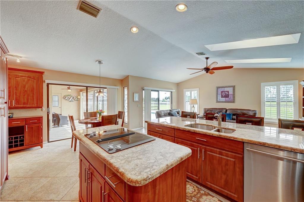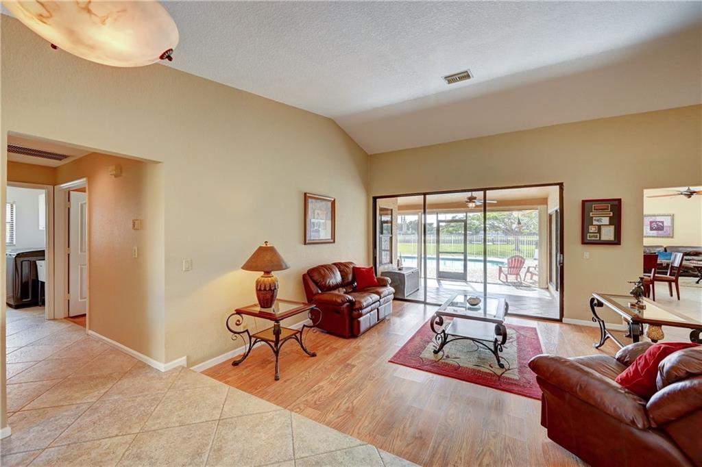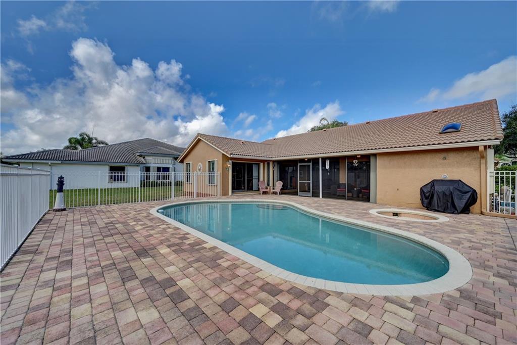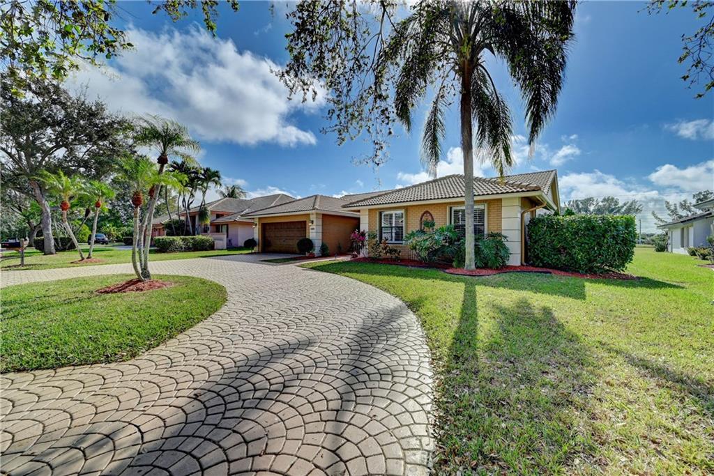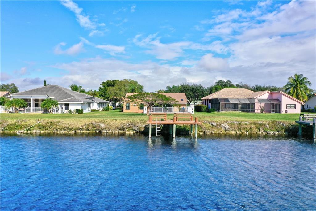 Rarely available single family, ranch style pool home located in sought after West Glen. This spectacular home is located on the C-14 waterway. Enjoy magnificent sunrises and sunsets relaxing on your private dock. The C-14 allows motorized watercraft. Public boat ramp is 1/4 mile from the home, so bring your boat, fishing poles and JetSki! Home boasts vaulted ceilings, bright open airy floor plan, split bedrooms, remodeled kitchen with cherry cabinets, granite and SS appliances. Remodeled bathrooms. 24" diagonal tile throughout. Wood laminate flooring in bedrooms and living room. 2 zone A/C