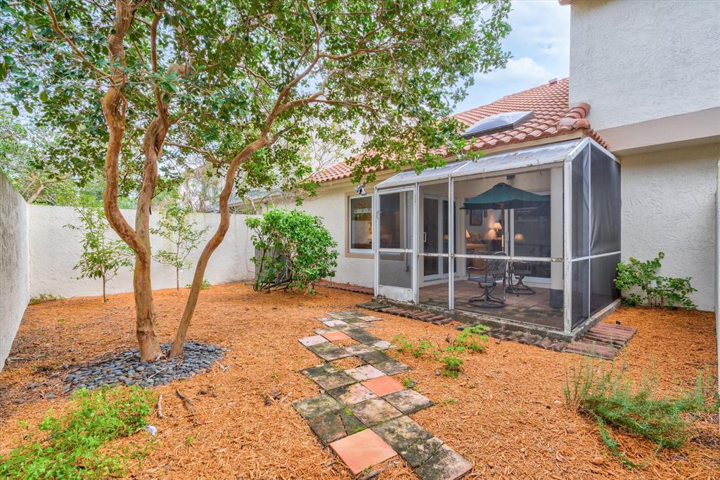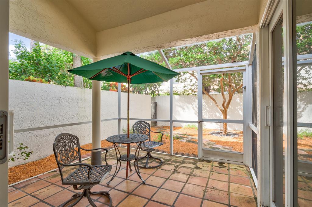 Step into this single story townhome with a Southwest vibe. This 2/2 with a 1 car garage is situated perfectly near Town Center where you have quick access to shops and parks. High ceilings and ample storage make this unit feel very spacious. The primary bedroom and living room have direct access to a private fenced in courtyard that has plenty of room for outdoor living. This community has a beautiful pool overlooking a lake you must see during sunset!
