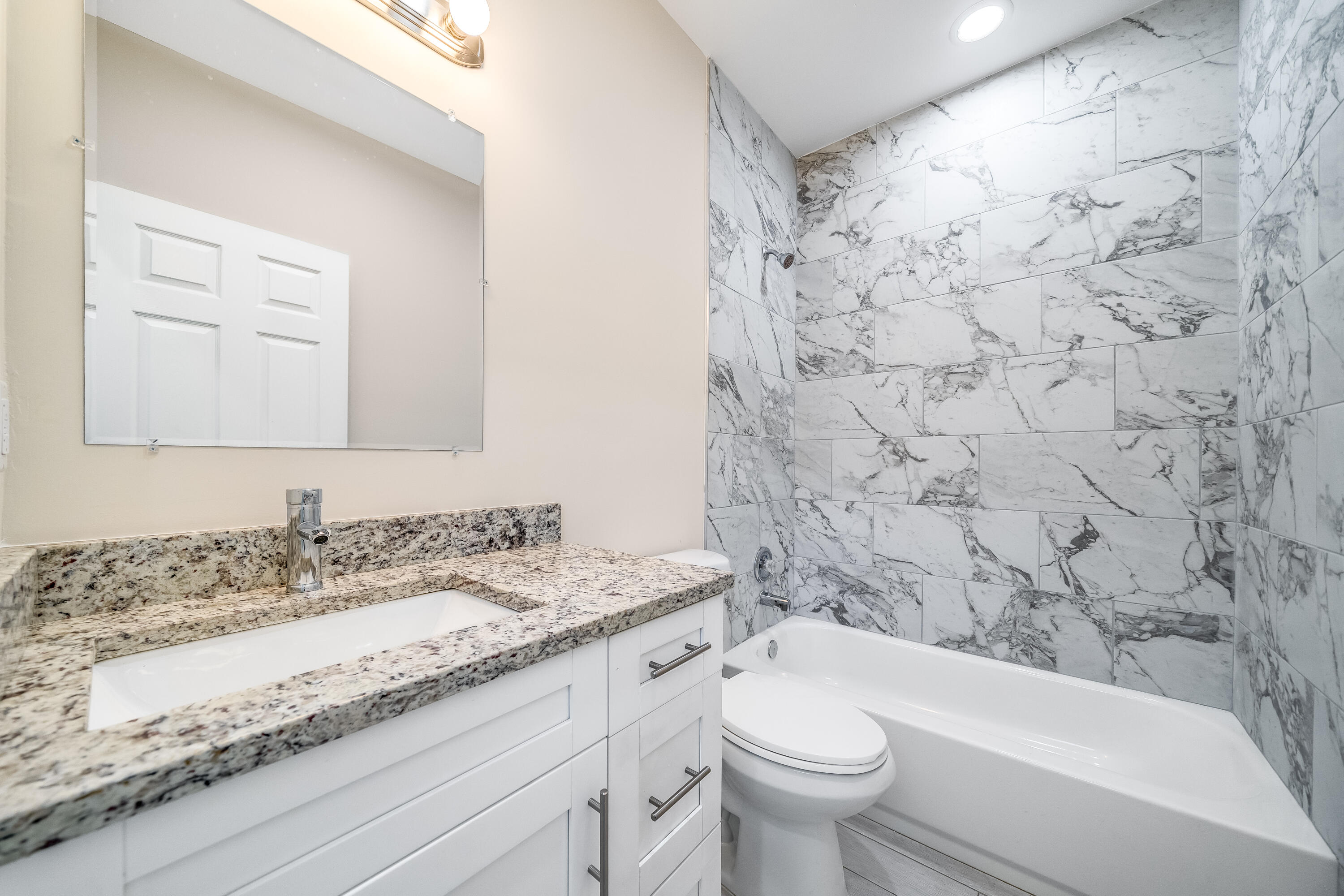 NEW CONSTRUCTION - DELIVERY MARCH 2022. Brand new 3/2 carefully designed; open layout, 9' ceilings, Italian plank tile, 42'' white shaker cabinetry, Dallas white granite stone, impact doors & windows, fenced backyard, LED lights throughout, tankless water heater, and so much more. Front covered entry and back patio with rear access. Enjoy the worry-free and benefits of a brand new house. Centrally located off major roadways, minutes from downtown West Palm Beach and surrounding areas. NO HOA. Best value in Palm Beach County!