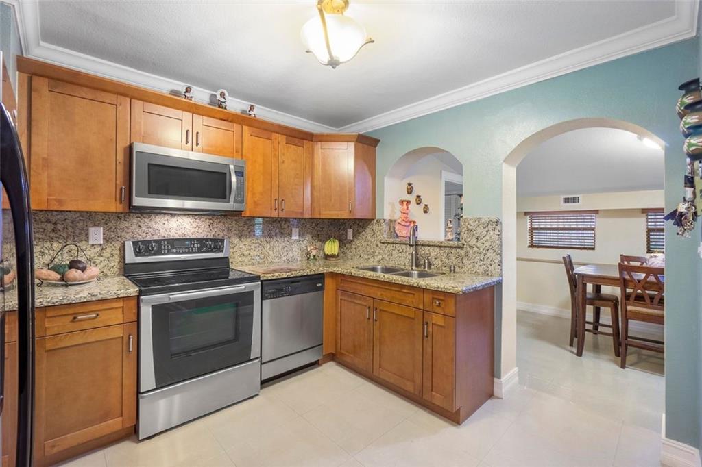 THIS IS IT... an AMAZING REMODELED 3-bedroom, 2.5-bathroom home in MOVE-IN READY condition! WELCOME HOME to a BEAUTIFUL TROPICAL LANDSCAPED front with a large driveway, and a SCREENED FRONT PORCH. As you enter, you will say WOW! This IMMACULATE HOME shows like a model and features TRAVERTINE TILE FLOORS, CROWN MOLDING, RECESSED LIGHTING and GOURMET GRANITE KITCHEN w/ S/S APPLIANCES! There is a HUGE dining room off the kitchen, INTERIOR LAUNDRY, and BOTH BATHROOMS are nicely REMODELED too. The 3rd bedroom has no closet, and can also be used as an OFFICE or PLAYROOM. And wait until you see the BACKYARD... great for entertaining, the PAVER PATIO wraps around the entire back of the house. There is also a permanent STORAGE building. NO HOA and you will LOVE THE NEIGHBORHOOD, hurry on this one!