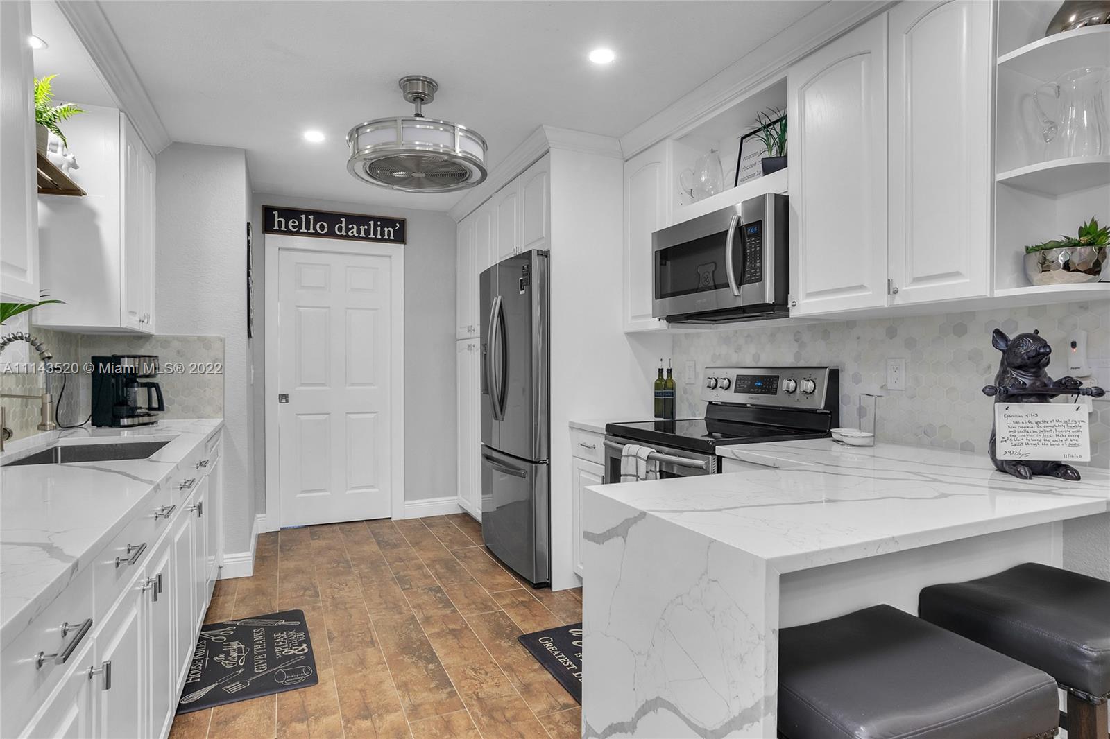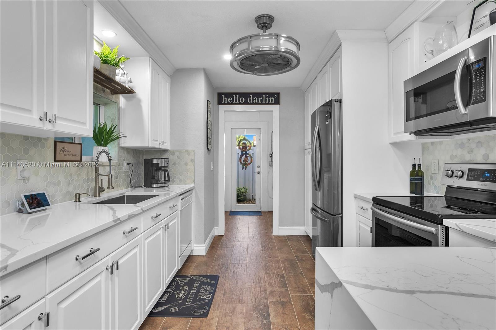 FALL IN LOVE WITH THIS CHARMING HOME IN COOPER CITY. Meticulously maintained, it shows pride of ownership. Beautifully upgraded kitchen features white cabinets, with modern white/gray granite counter top, Stainless Steel appliances including a modern refrigerator less than 1 year old. Separate laundry room right off the kitchen with newer washer and dryer. Living area has wood-look tile, with oversized picture window. Impact windows and doors. All A/C ducts were completed replaced last year. The water heater is only 1 yr old. Property boasts a covered screened patio, great for afternoon relaxation. Bring your family to enjoy the newly fenced backyard with a canal in the back. This property has an oversized concrete painted driveway. THIS IS TRULY A GEM. EXCELLENT A+ SCHOOLS. NO HOA!!!