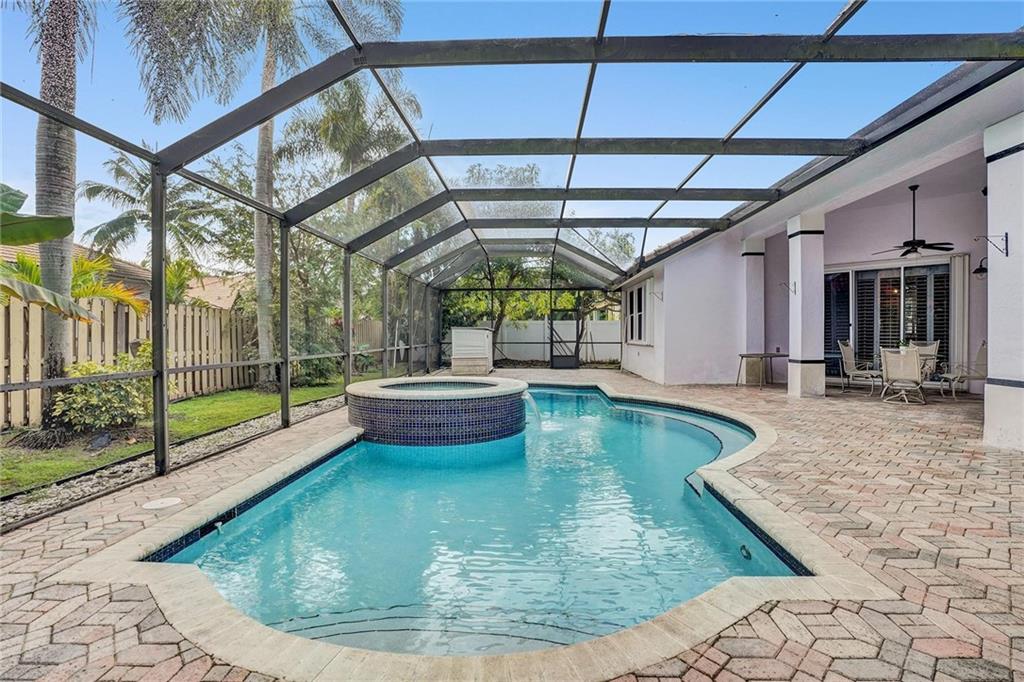 Secluded in the private gated enclave of Isla Del Sol, this expansive 5 bedroom, 4 Bathroom home features a separate office and an additional Sitting/Gym room that is perfect for a growing family! Isla del sol has its own private boat ramp just steps away from the front door. Complete hurricane protection. The kitchen area boasts two gas cooktops, a walk-in pantry, and plenty of cabinet space. Just off the kitchen is a working fireplace and full cabana bathroom leading out to the screened-in heated pool. "A" rated schools and centrally located to Beaches, Parks, Restaurants, Shopping, Airports, Turnpike and Interstates.