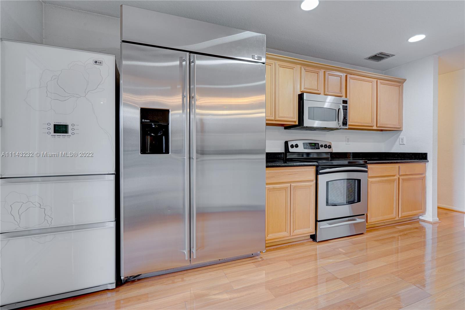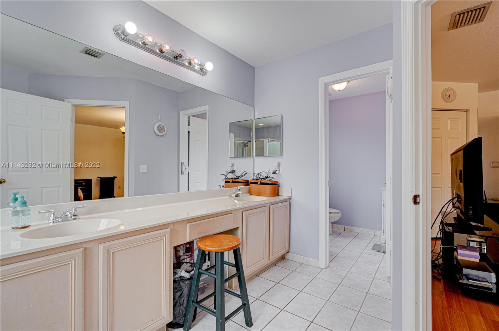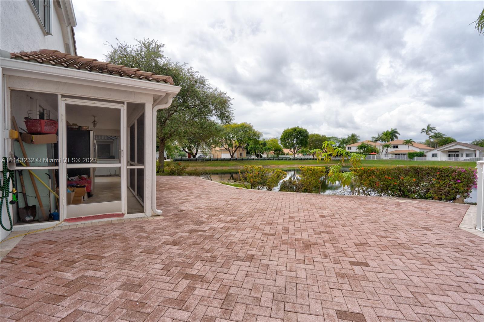 Inmaculate house ready for a family, located in a gated community "Doral Gardens", open concept layout, large kitchen area, enclosed patio with a lake-view, very well kept laminated wood floors, extra large master bedroom, one bedroom downstair, 2 car garage.