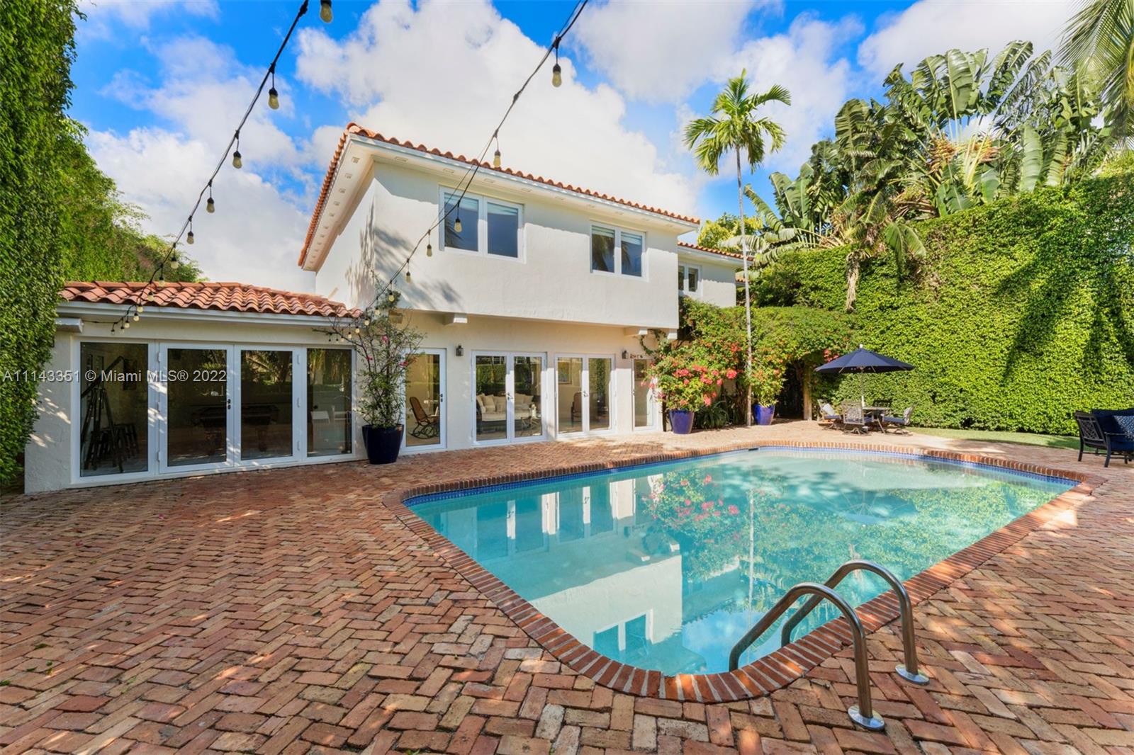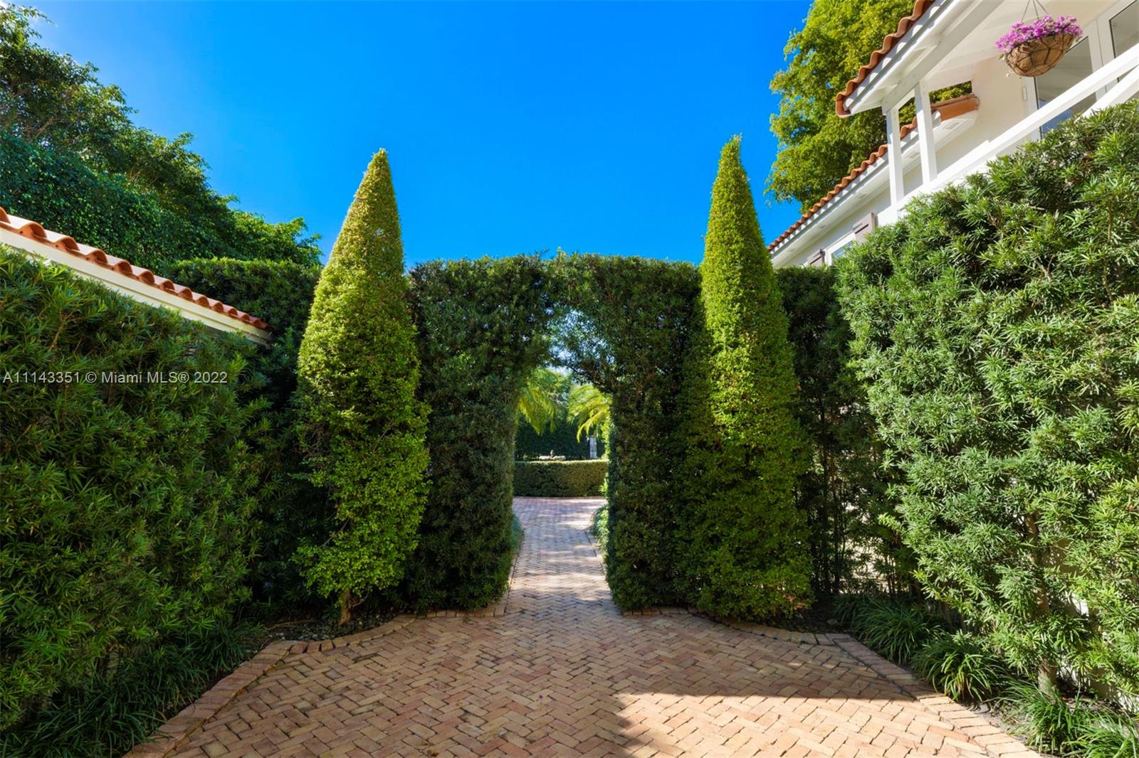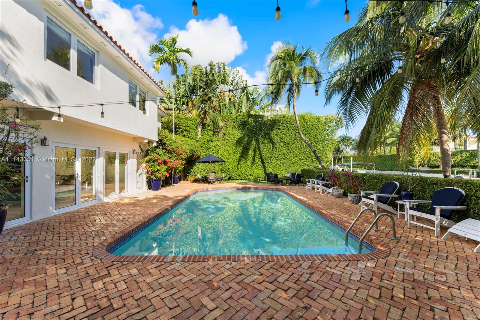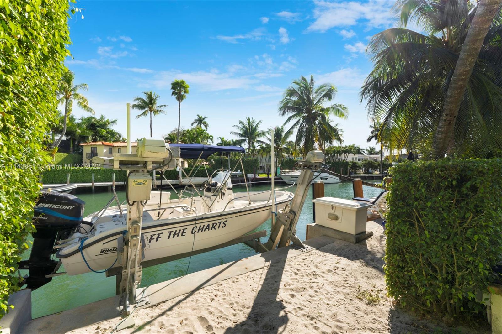 Enjoy coveted Sunset Island living in this beautiful 2 story WF residence on Sunset Island IV, the most walkable of the 4 Islands. Enter through private gates to a circular driveway leading to a magnificent verdant courtyard garden that opens to a 6BD,5+1BA home. 15,750 SF lot, 75’ WF, private dock, boat lift, natural light through entire home, fine marble & hardwood floors, large hurricane impact La Finestra windows. Renovated gourmet kitchen w/ top-of-the-line appliances, formal dining room, expansive bedrooms, spa-like principal bathroom, walk-in closets, guest house & 2 car garage. Outdoors curated for entertaining surrounded by greenery of soaring hedges w/ an oversized pool, summer kitchen & your very own sand beach complete w/a bench swing to sway along w/ the calming ocean breezes.