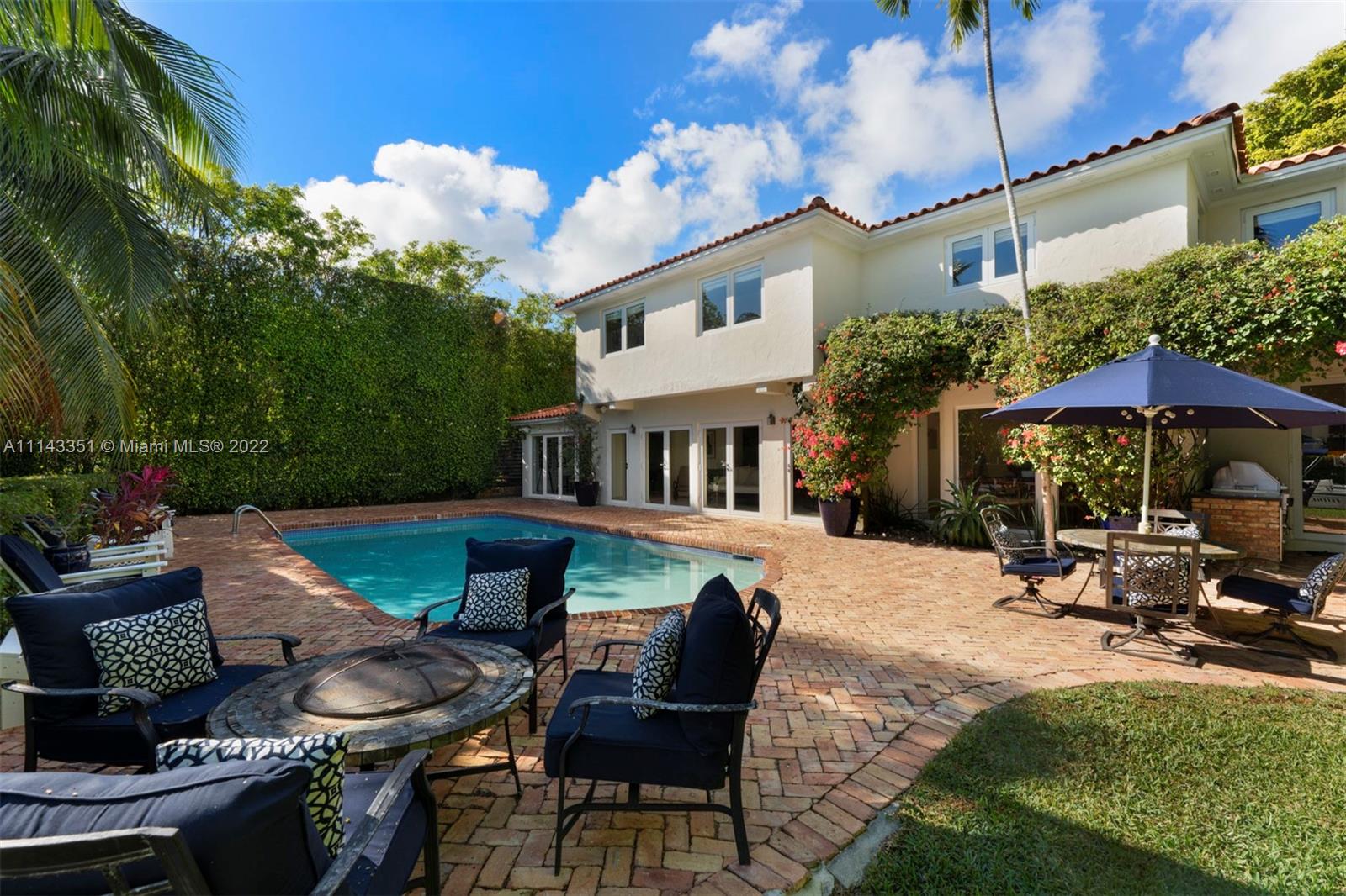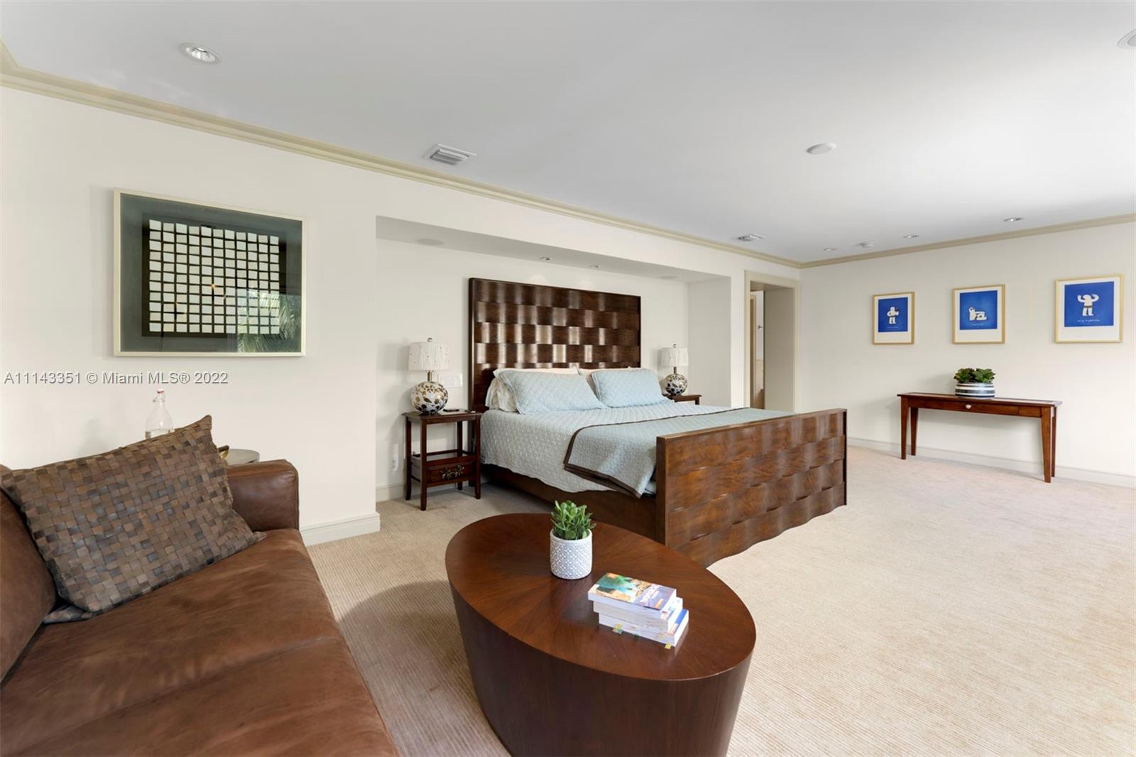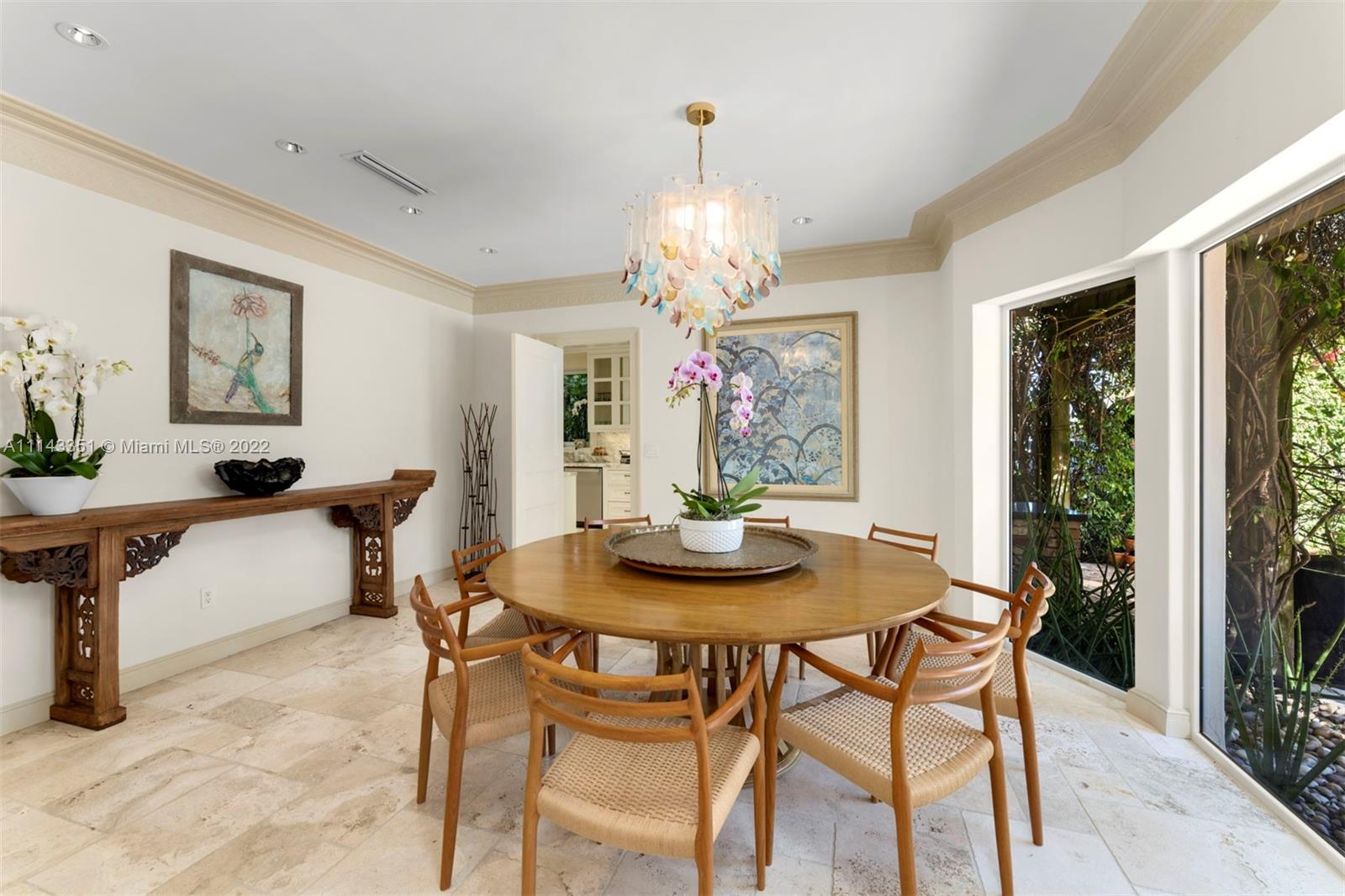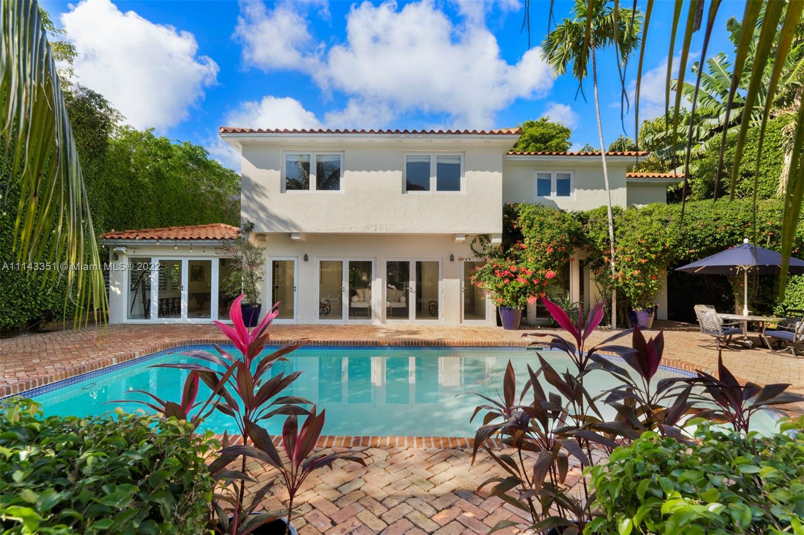 Enjoy coveted Sunset Island living in this beautiful 2 story WF residence on Sunset Island IV, the most walkable of the 4 Islands. Enter through private gates to a circular driveway leading to a magnificent verdant courtyard garden that opens to a 6BD,5+1BA home. 15,750 SF lot, 75’ WF, private dock, boat lift, natural light through entire home, fine marble & hardwood floors, large hurricane impact La Finestra windows. Renovated gourmet kitchen w/ top-of-the-line appliances, formal dining room, expansive bedrooms, spa-like principal bathroom, walk-in closets, guest house & 2 car garage. Outdoors curated for entertaining surrounded by greenery of soaring hedges w/ an oversized pool, summer kitchen & your very own sand beach complete w/a bench swing to sway along w/ the calming ocean breezes.