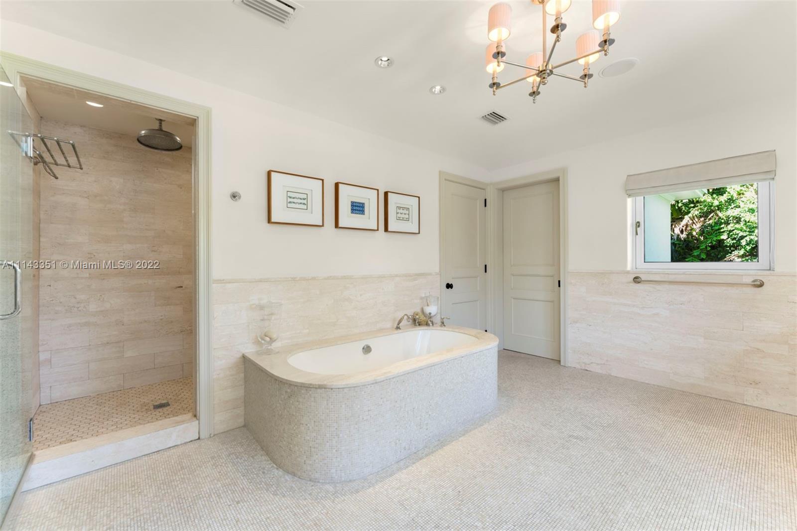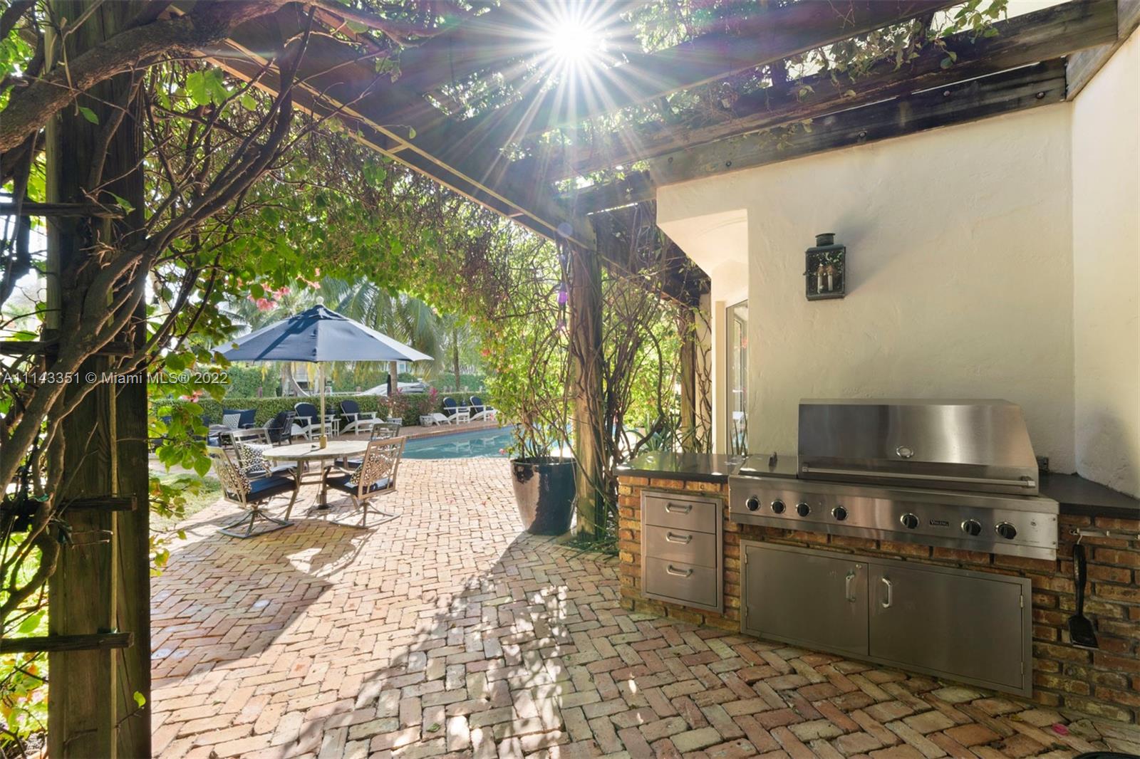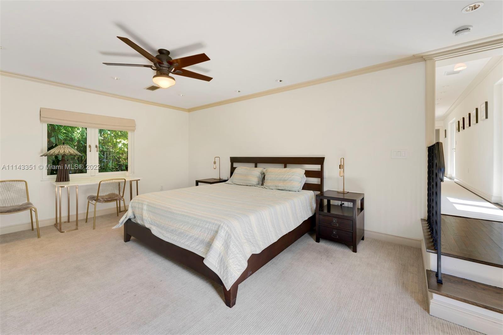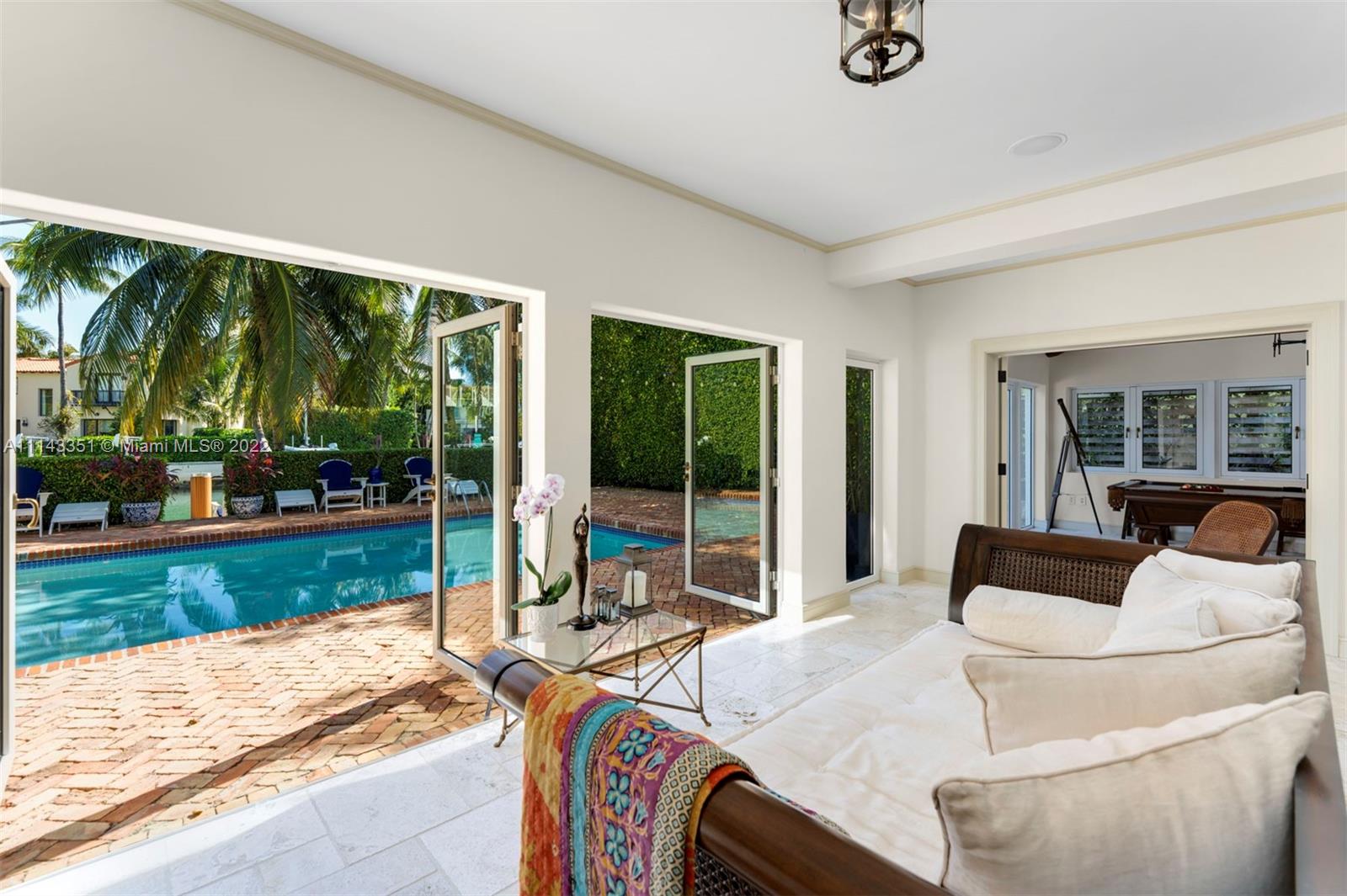 Enjoy coveted Sunset Island living in this beautiful 2 story WF residence on Sunset Island IV, the most walkable of the 4 Islands. Enter through private gates to a circular driveway leading to a magnificent verdant courtyard garden that opens to a 6BD,5+1BA home. 15,750 SF lot, 75’ WF, private dock, boat lift, natural light through entire home, fine marble & hardwood floors, large hurricane impact La Finestra windows. Renovated gourmet kitchen w/ top-of-the-line appliances, formal dining room, expansive bedrooms, spa-like principal bathroom, walk-in closets, guest house & 2 car garage. Outdoors curated for entertaining surrounded by greenery of soaring hedges w/ an oversized pool, summer kitchen & your very own sand beach complete w/a bench swing to sway along w/ the calming ocean breezes.