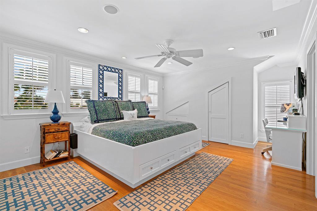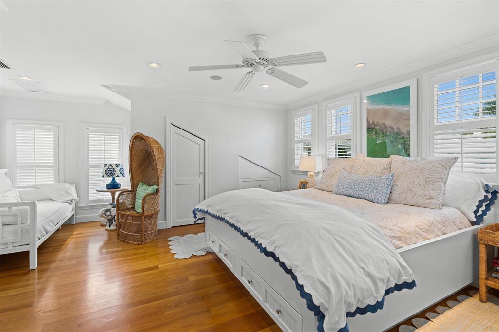 Located just two blocks from the ocean and one block from the Intracoastal, this 3-bed, 3-bath home embodies the beauty of Palm Beach living. Enter the house from the front porch into an open-floor space that includes a living room, dining area, wet bar, pantry with washer/dryer, storage, one bedroom and bathroom, and newly renovated kitchen. The second floor includes a master suite with master bath, sitting area, and two walk-in closets, as well as a third bedroom and bathroom with a walk-in closet. With new landscaping and painting, new fence, and new central A/C, this island gem features hardwood floors, back patio, driveway, garage, storage shed, impact glass, sound and security systems, wine refrigerator, and sprinkler system. The house is lightly lived in and meticulously maintained.