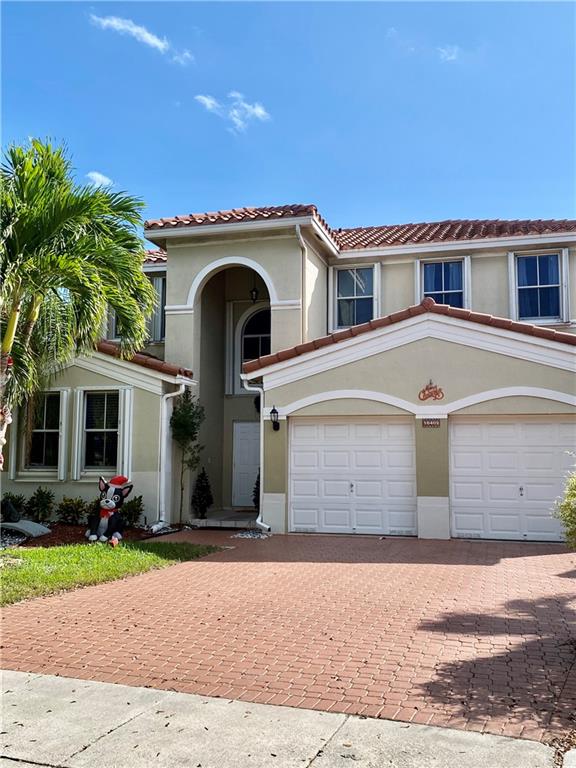 Spacious and splendid two story residence in Nautica, Miramar, FL; House has a two vehicle garage with a side access door; The lot is huge, over ten thousand square feet with a refreshing pool, screened back porch and a serene lake view to admire and enjoy; Master bedroom/bathroom and guest bedroom with bathroom are both downstairs, the other 2 bedrooms, a den and bathroom are upstairs. Half bathroom on the main floor; House has hurricane accordion shutters on windows. Laundry room has a huge walk-in closet for storage; The Nautica development has a clubhouse with a community pool, tennis and basketball courts and sidewalks for residents to enjoy outdoor activities.