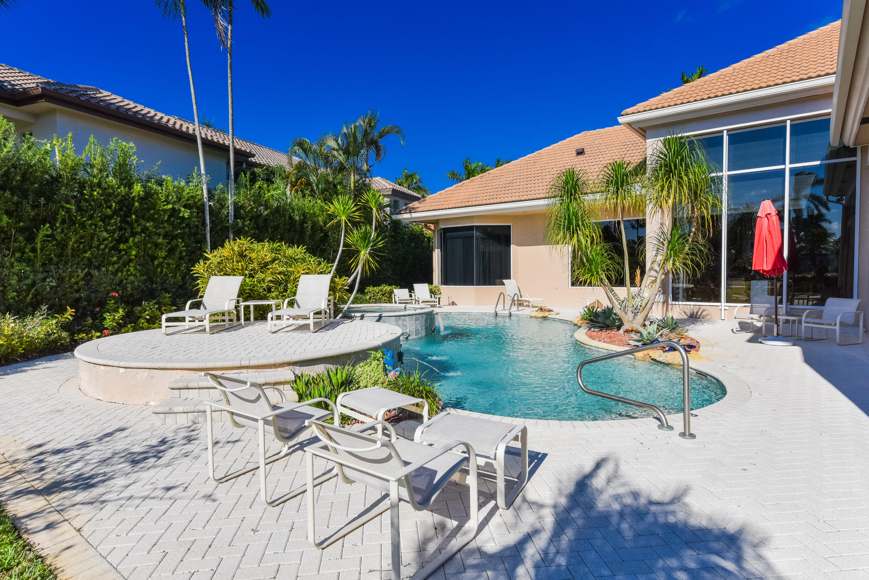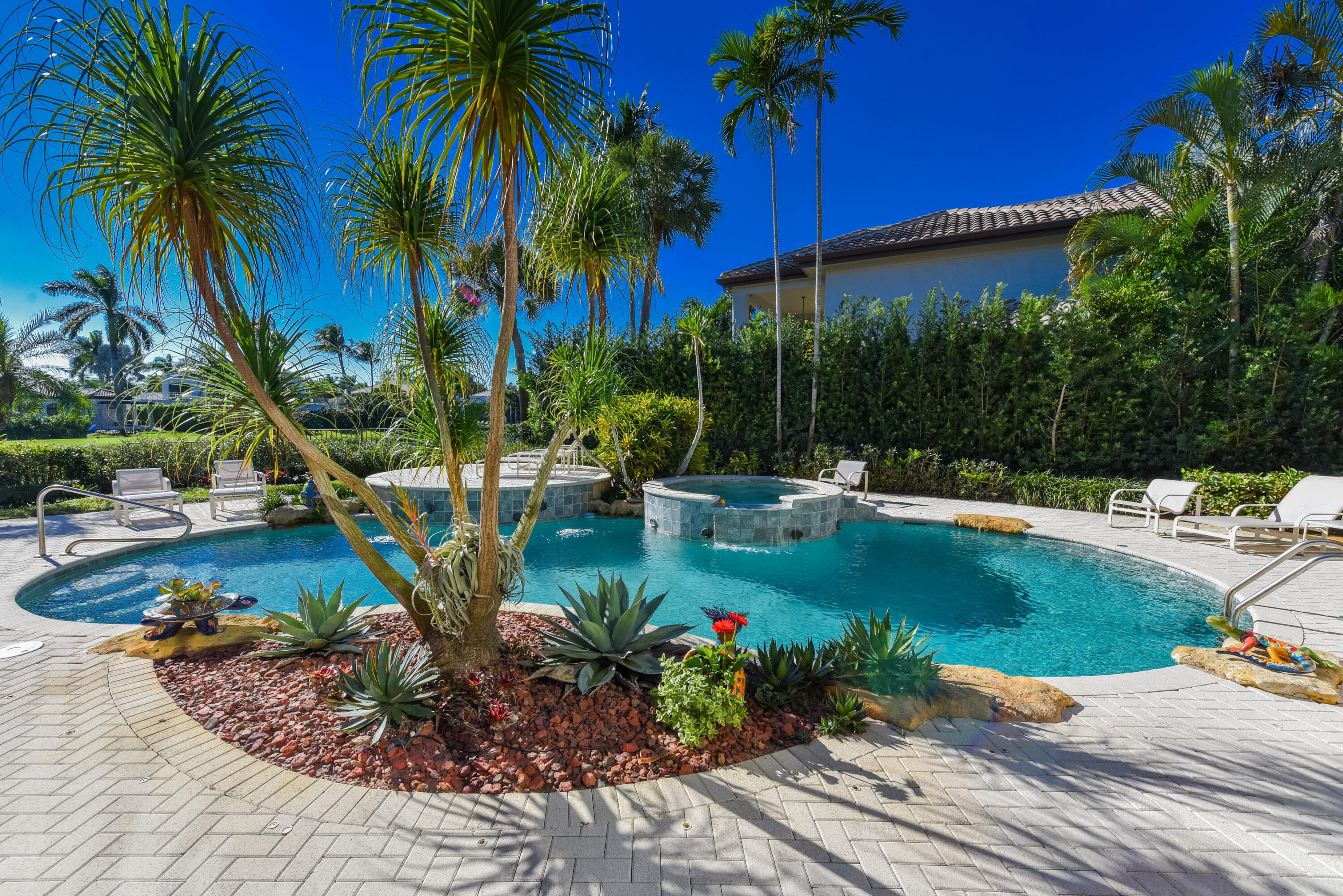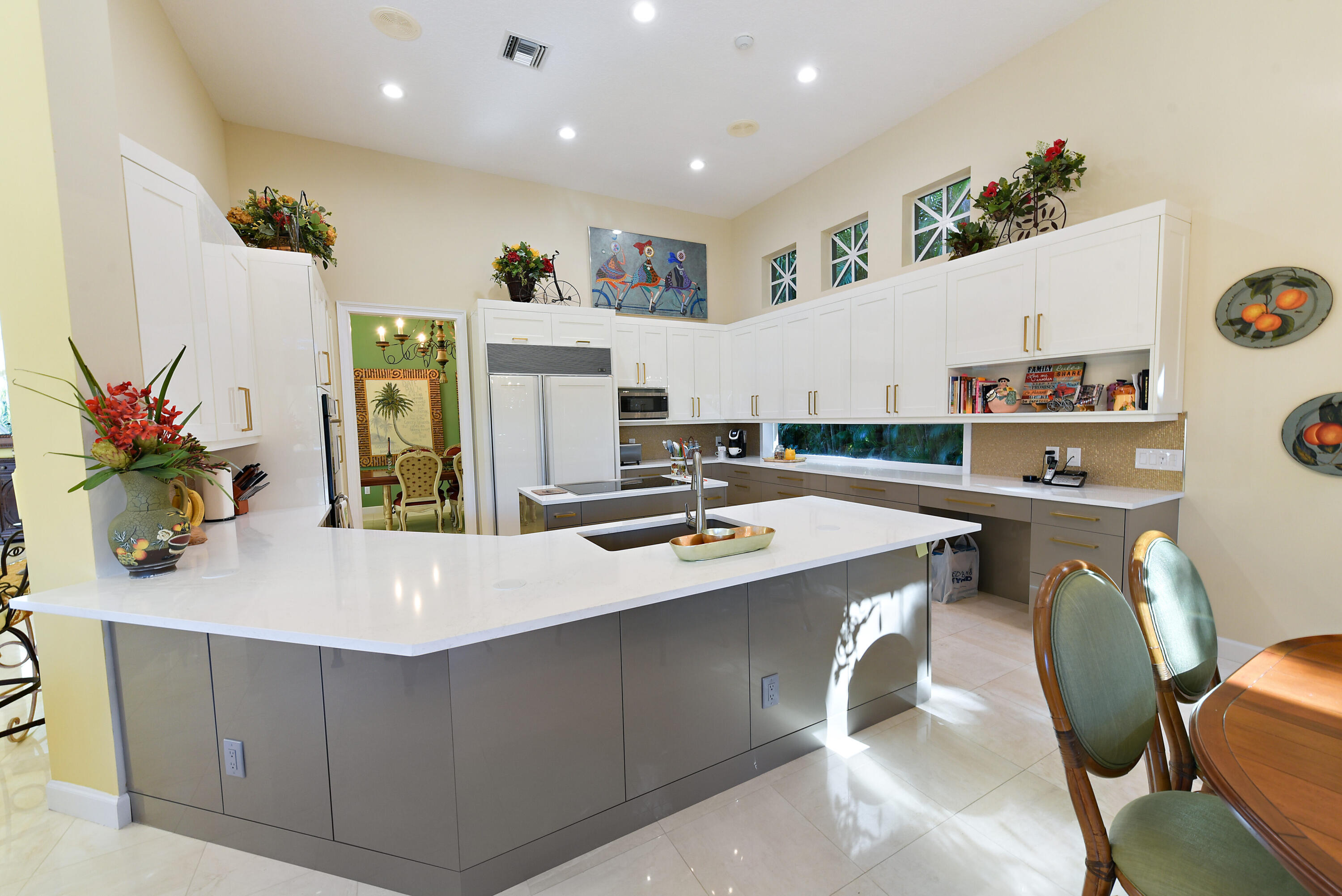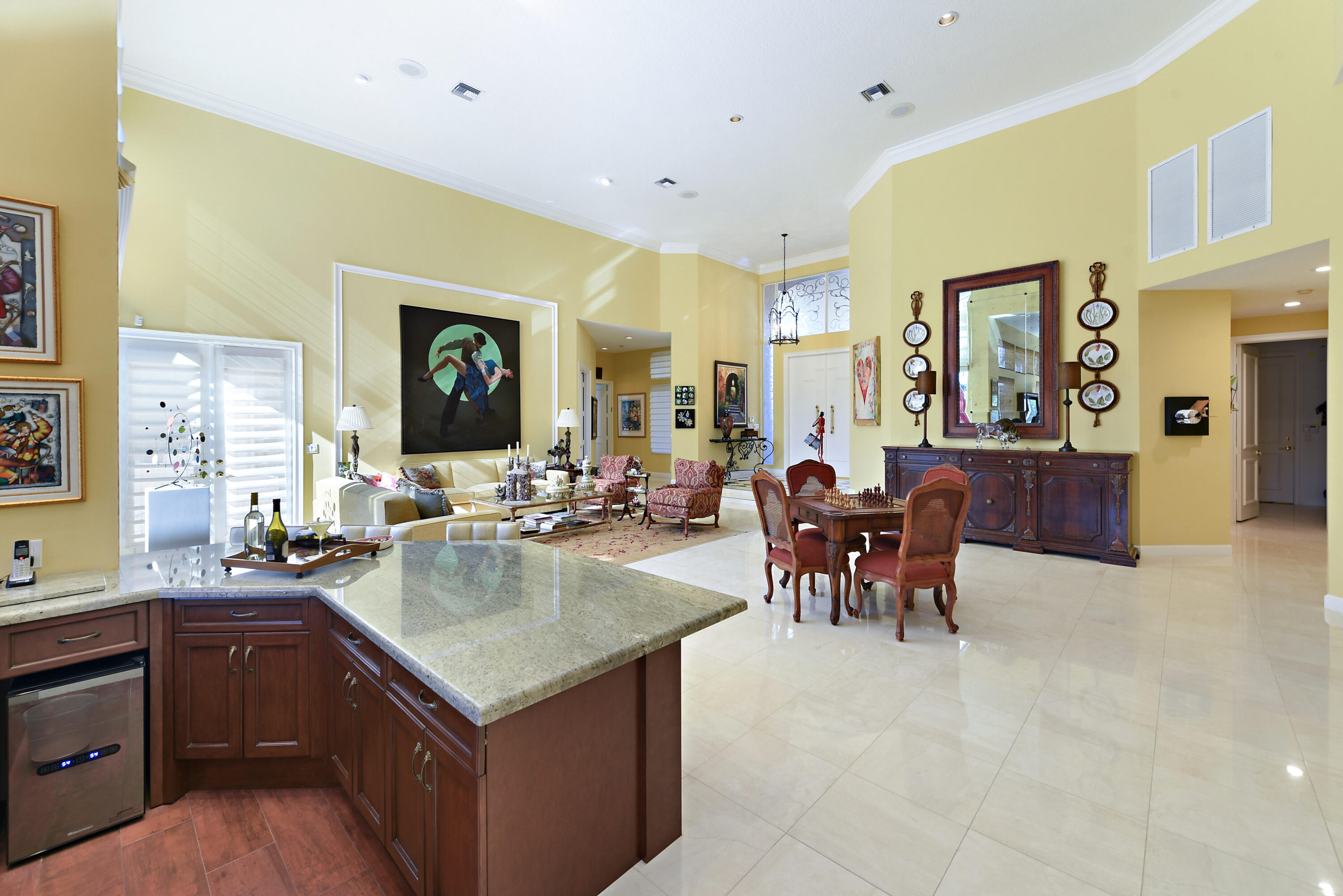 Spacious open concept including living room, dining room, family room and kitchen with breakfast area overlooking pool, entertainment area and lake and golf course views.Large primary suite with generous closets and luxurious marble bath.. Two additional ensuite bedrooms and wood paneled office.The information herein is deemed reliable and subject to errors, omissions and changes without notice. All measurements are approximate.