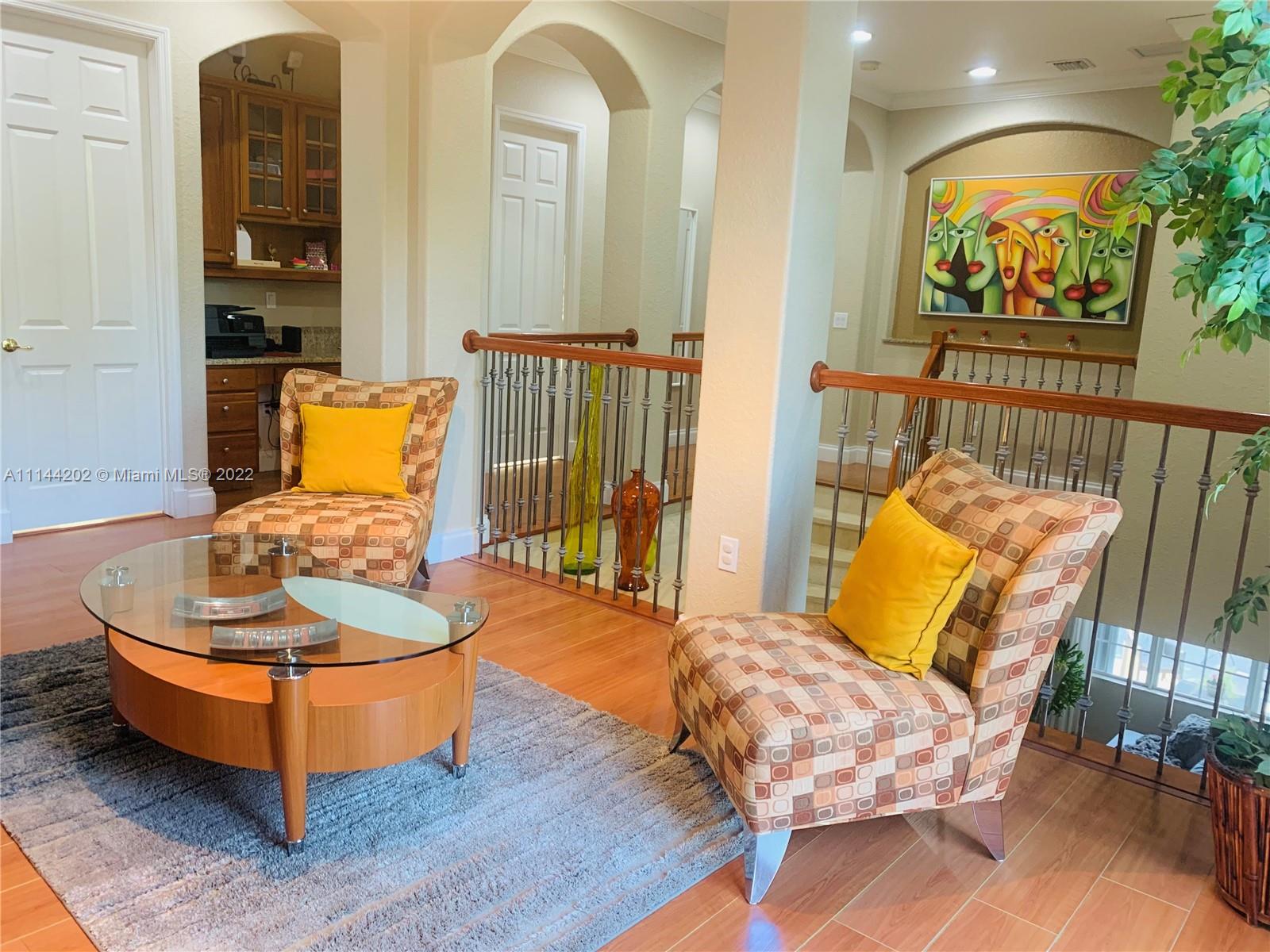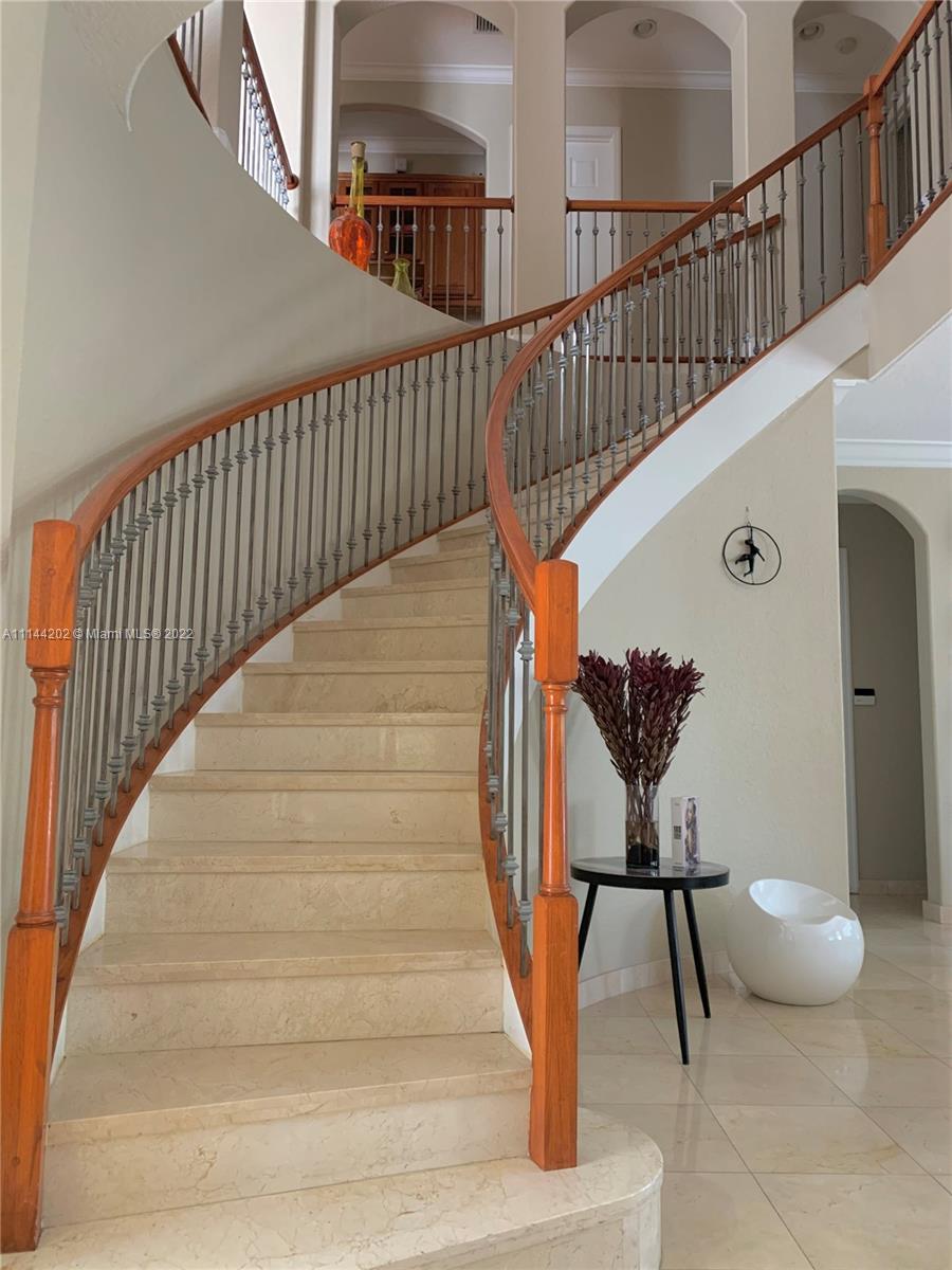 Your dream house in this exclusive community Doral Isles in Mediterranea subdivision. Huge 5 bedrooms and 4 ½ bathrooms. It features 1 bedroom on first floor with full a bath, big laundry room, ample walking closets. Marble on the first floor and wood on the second floor. Remodeled double garage and capacity for 3 more cars on the outside. Very spacious and bright see this house and love it. Enjoy the unique resort lifestyle of Doral Isles. Wonderful Club House with all the amenities family needs. Gym, sauna, spectacular pools, volleyball court, basketball court, soccer field, & tennis courts.