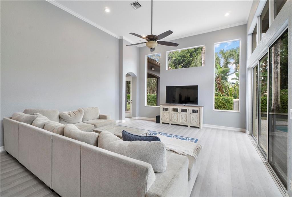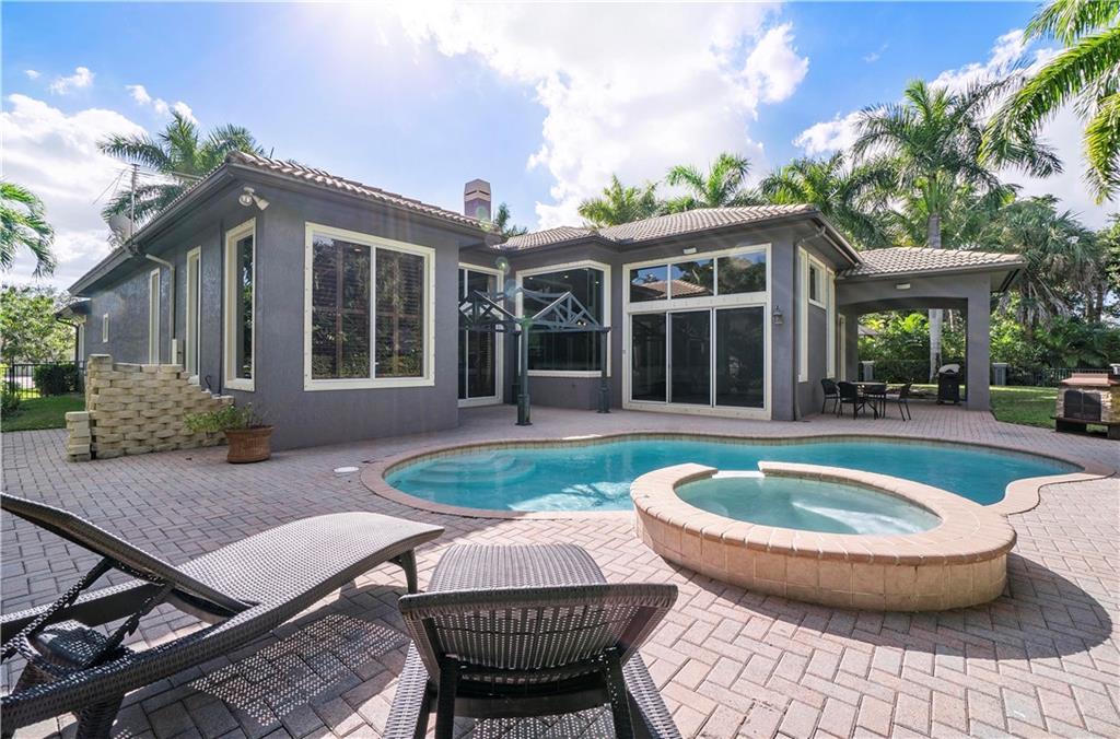 Amazing 5 bed, 3 bath home w/ pool on large lot in Heron Bay on a cul-de-sac! Brand new contemporary flooring in main living areas. Soaring volume ceilings throughout. Upgraded fixtures, window treatments, beautiful stone fireplace, plantation shutters, nice bar area in living room. Gourmet kitchen w/stainless steel appliances. 5th bedroom setup as office. Marble floors in Master Bath. Custom built out closet in Master. Incredibly lush private pie shaped lot w/ outdoor space that's perfect for entertaining. Oversize driveway. Gated community offering 2 clubhouses, pools, tennis courts, clubhouses, kids splash areas, activities and much more.