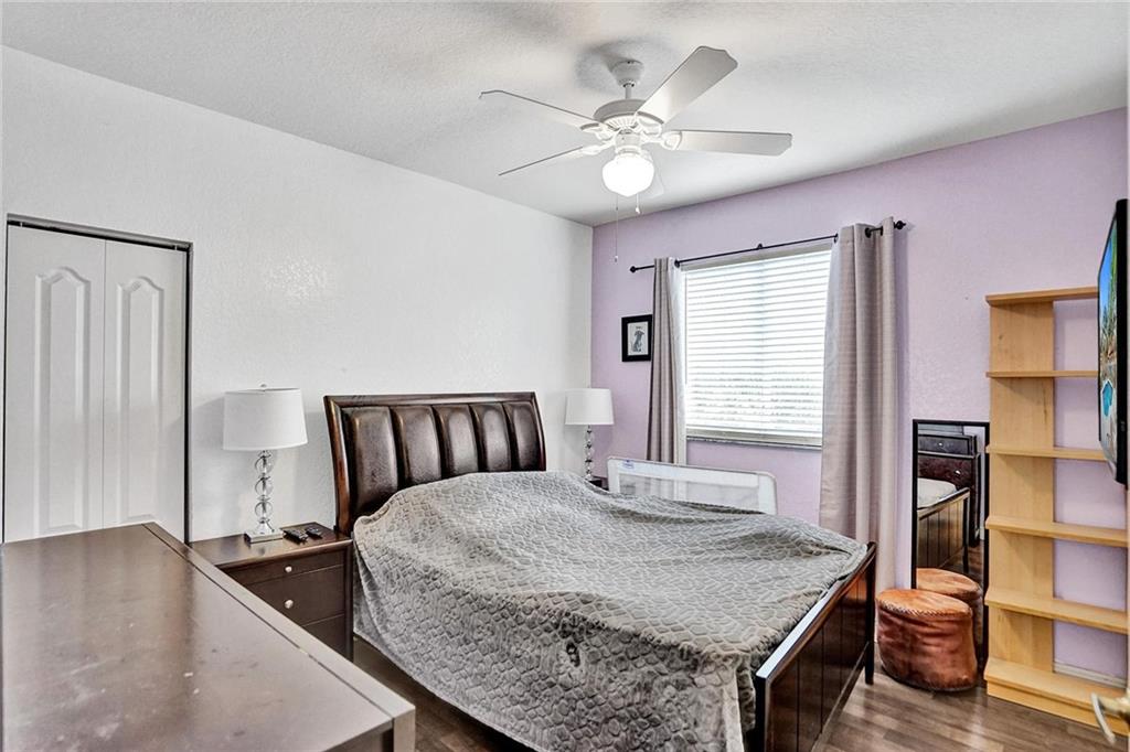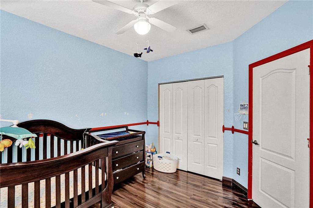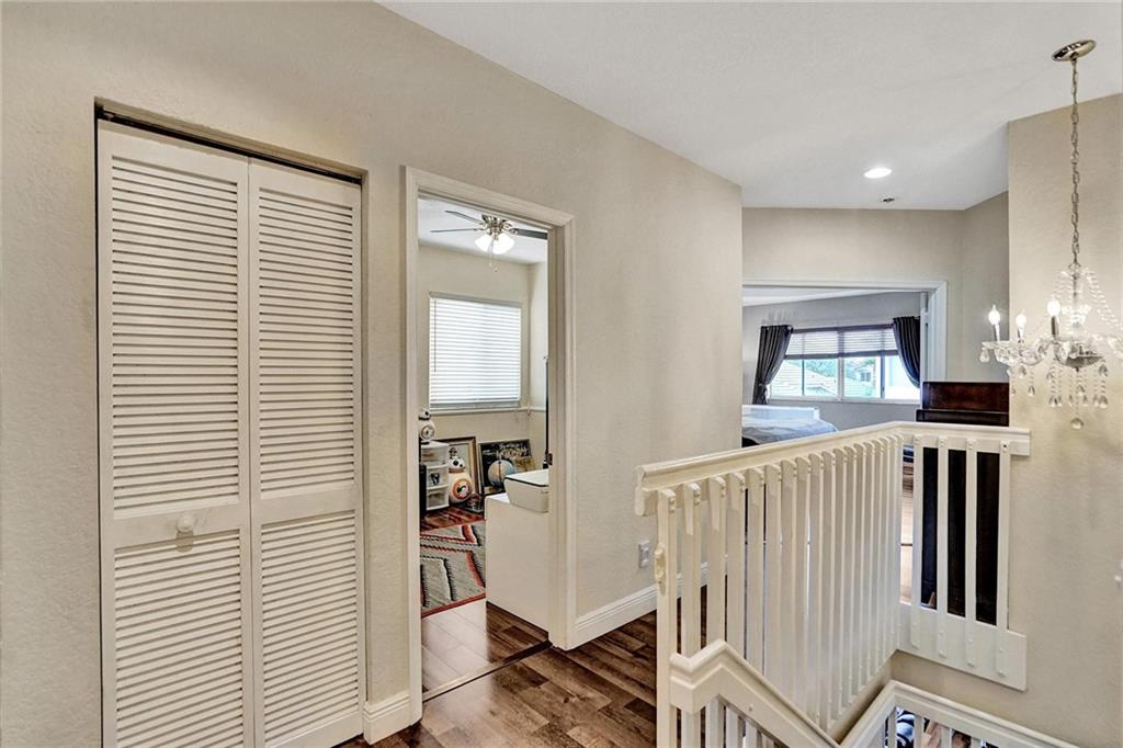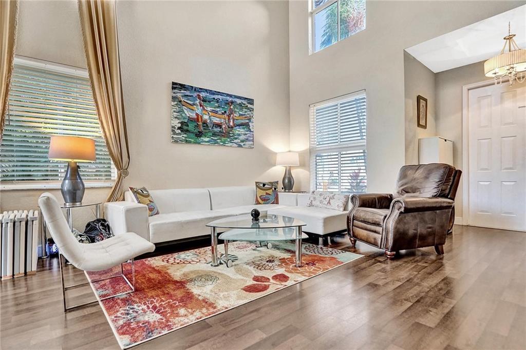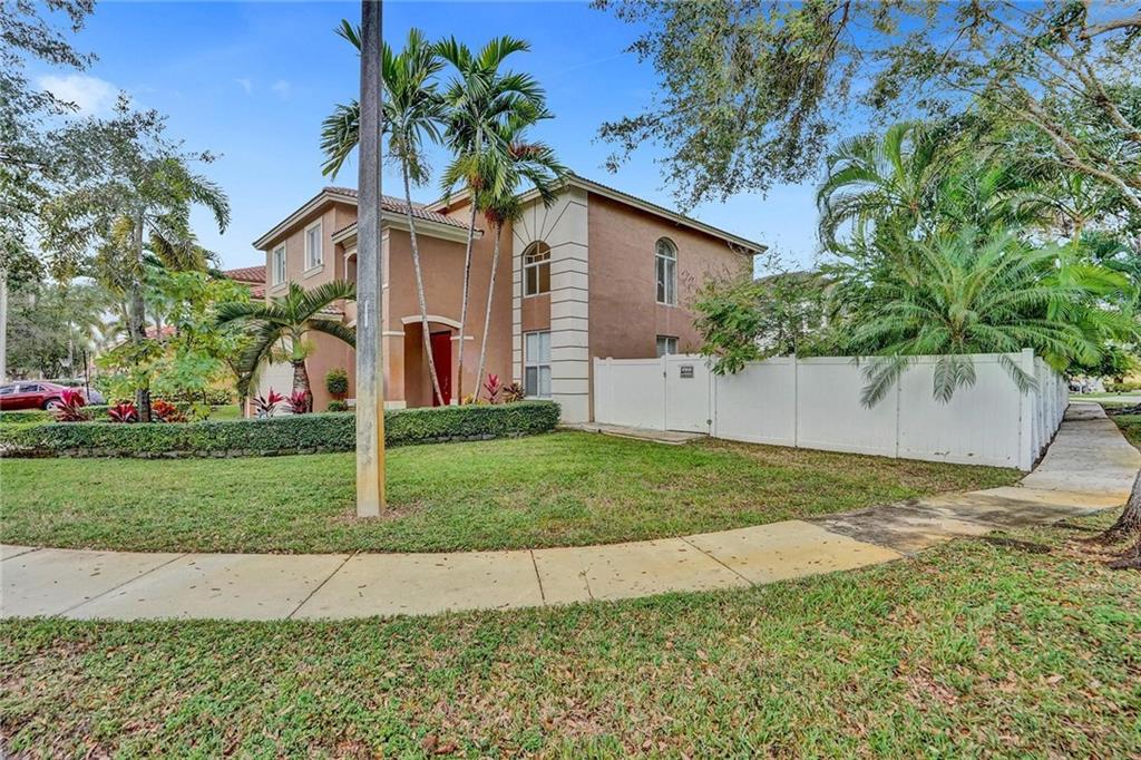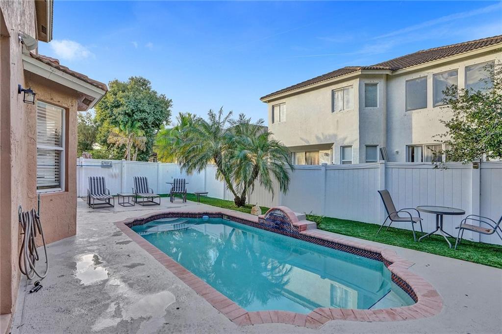 HOME CONTENTMENT! 4 Bedroom 2.5 bathroom pool home in lovely condition in Monarch Lakes. Corner property, fenced yard, family ready! White kitchen with hard surface countertops, stainless steel appliances, breakfast room all open to large family room. Formal living and dining room. Superb family floor plan. All bedrooms are on the second floor, all are large with good closet space. Lovely laminate flooring throughout the second story. Oversized first floor half bath and utility room with extra area for storage. Private pool area, huge deck, plus a separate area perfect for pets. All fenced. Two car garage plus paver driveway.