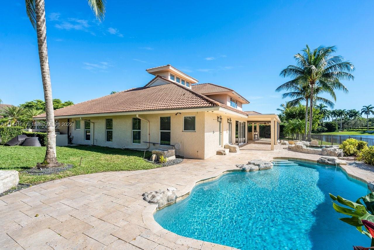 Enjoy a stunning Florida sunset from this wide waterfront view in the private, gated Woodfield Hunt Club. Beautifully landscaped 5/6 home with a 3-car garage features a secluded waterfront pool and spa, designer kitchen with top quality appliances and a massive living area on a huge cul-de-sac lot. Retractable patio screens. Private, massive master bedroom suite upstairs provides a wide view of the lake, and a private bonus room attached. Steam shower and deep spa bathtub are highlighted in the spacious master bathroom. Tons of room to entertain. New, 48K, total-home gas generator scheduled for installation March 2022. Woodfield Country Club Membership is optional.