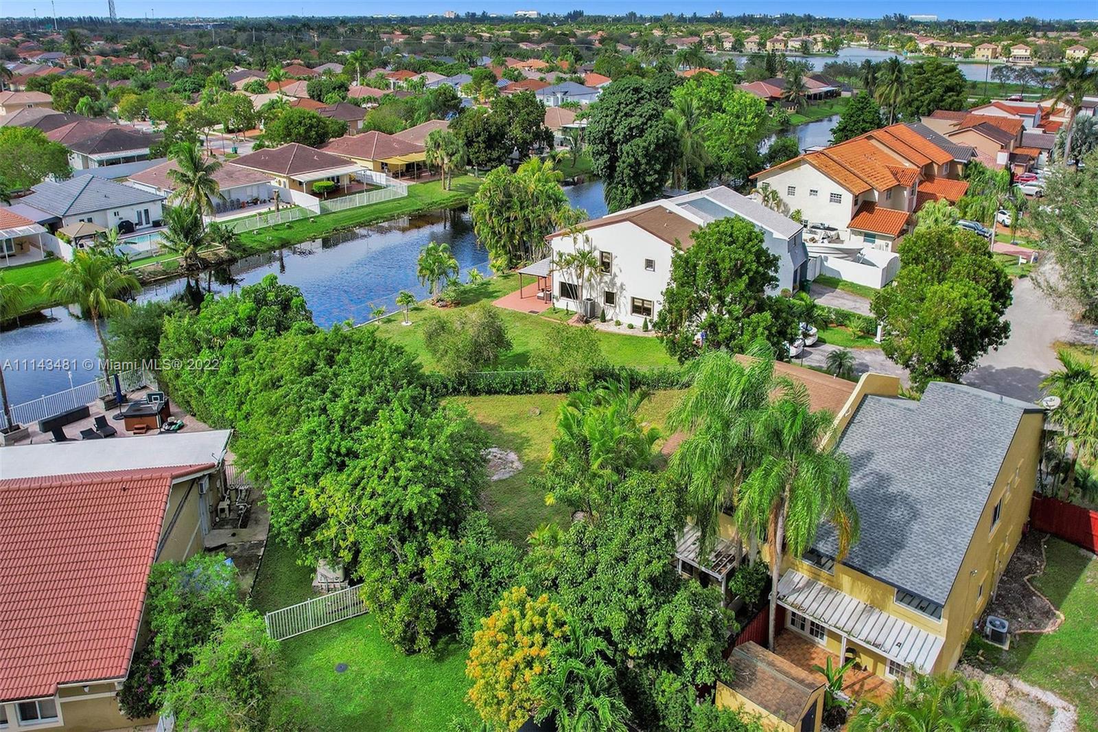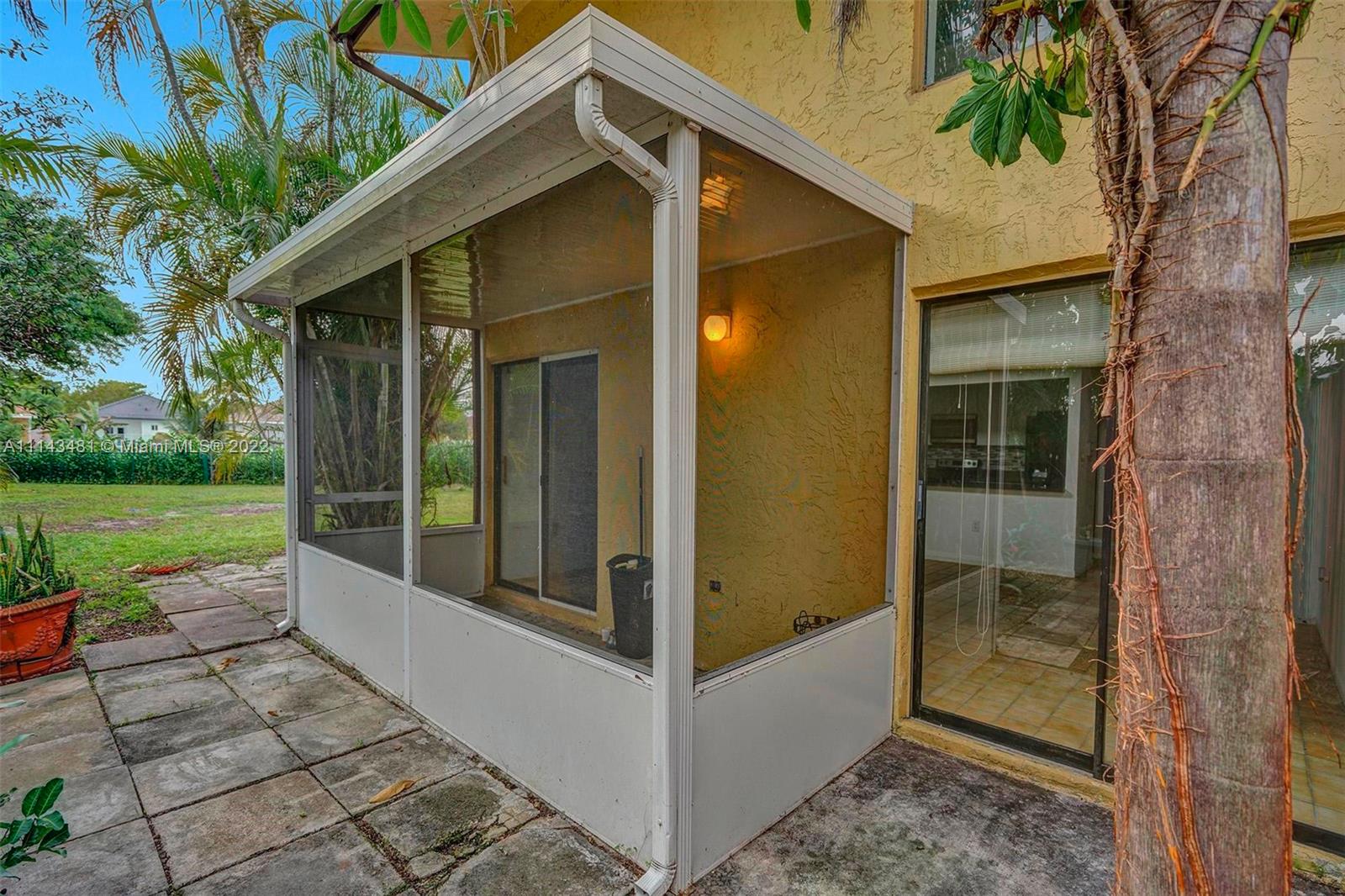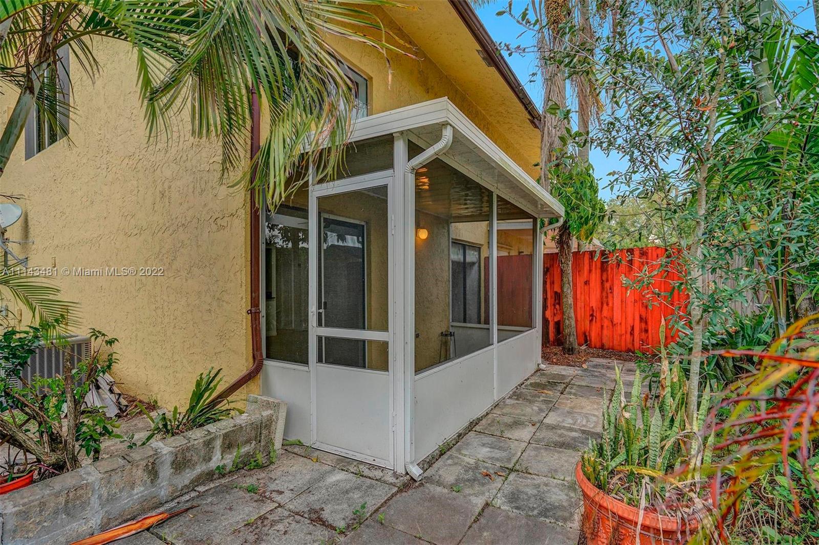 NEW PRICE inside the Country Club of MIA, No HOA! Sitting on an oversized lot of 8,615 SQ Ft, walk into this unique floor plan 2 Beds /2 Baths TH of 1,568 SQ Ft, equipped w/remodeled kitchen, granite counters, tile backsplash, appliances w/expansive breakfast bar, open concept living dining room areas, overlooking the screened porch/ lush gardens. One-bedrm w/full bath w/dual sinks & a granite vanity on first level. Lots of natural light w/high volume wood beamed ceilings, the stairwell takes you to second level to the spacious principal bedroom loft style, extra-large walking closet, & views of the canal. The lofted landing overlooks the downstairs & can serve as additional area to host/entertain. The spacious fenced backyard has plenty of room to build a pool, park a boat/truck/trailer.