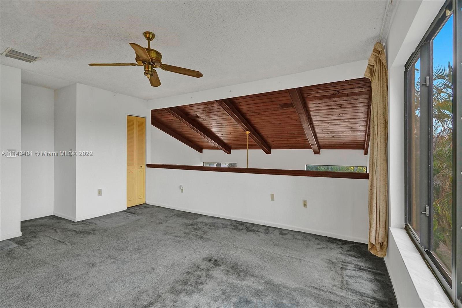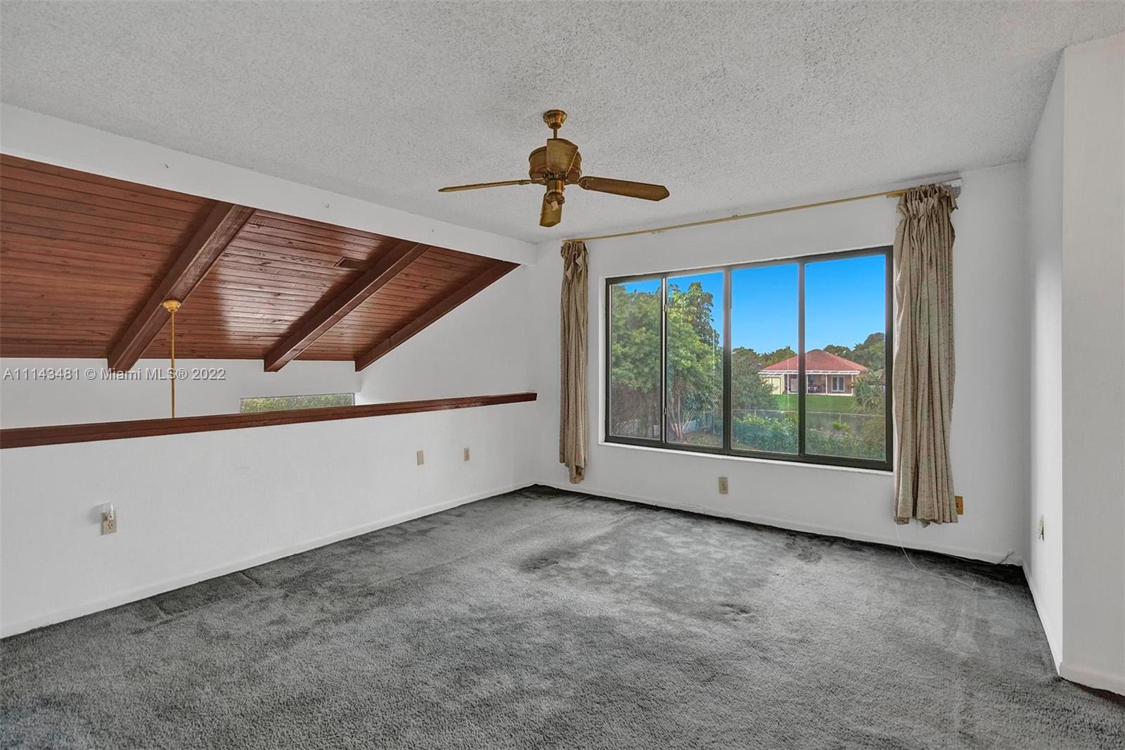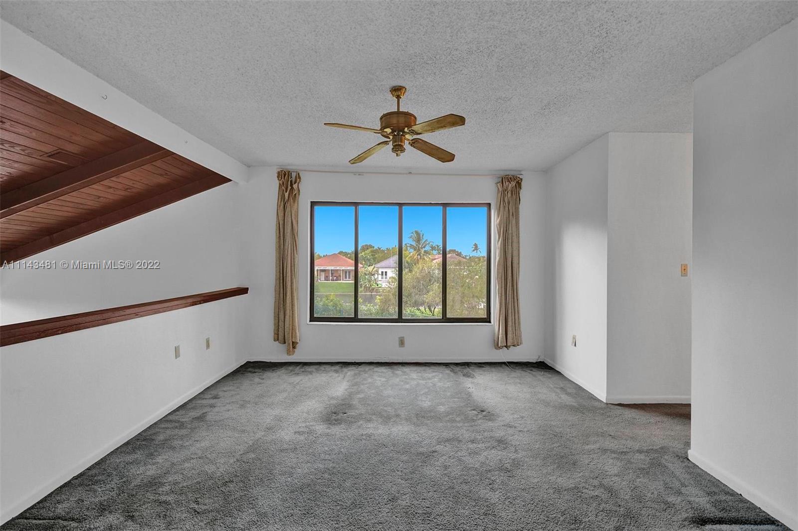 NEW PRICE inside the Country Club of MIA, No HOA! Sitting on an oversized lot of 8,615 SQ Ft, walk into this unique floor plan 2 Beds /2 Baths TH of 1,568 SQ Ft, equipped w/remodeled kitchen, granite counters, tile backsplash, appliances w/expansive breakfast bar, open concept living dining room areas, overlooking the screened porch/ lush gardens. One-bedrm w/full bath w/dual sinks & a granite vanity on first level. Lots of natural light w/high volume wood beamed ceilings, the stairwell takes you to second level to the spacious principal bedroom loft style, extra-large walking closet, & views of the canal. The lofted landing overlooks the downstairs & can serve as additional area to host/entertain. The spacious fenced backyard has plenty of room to build a pool, park a boat/truck/trailer.