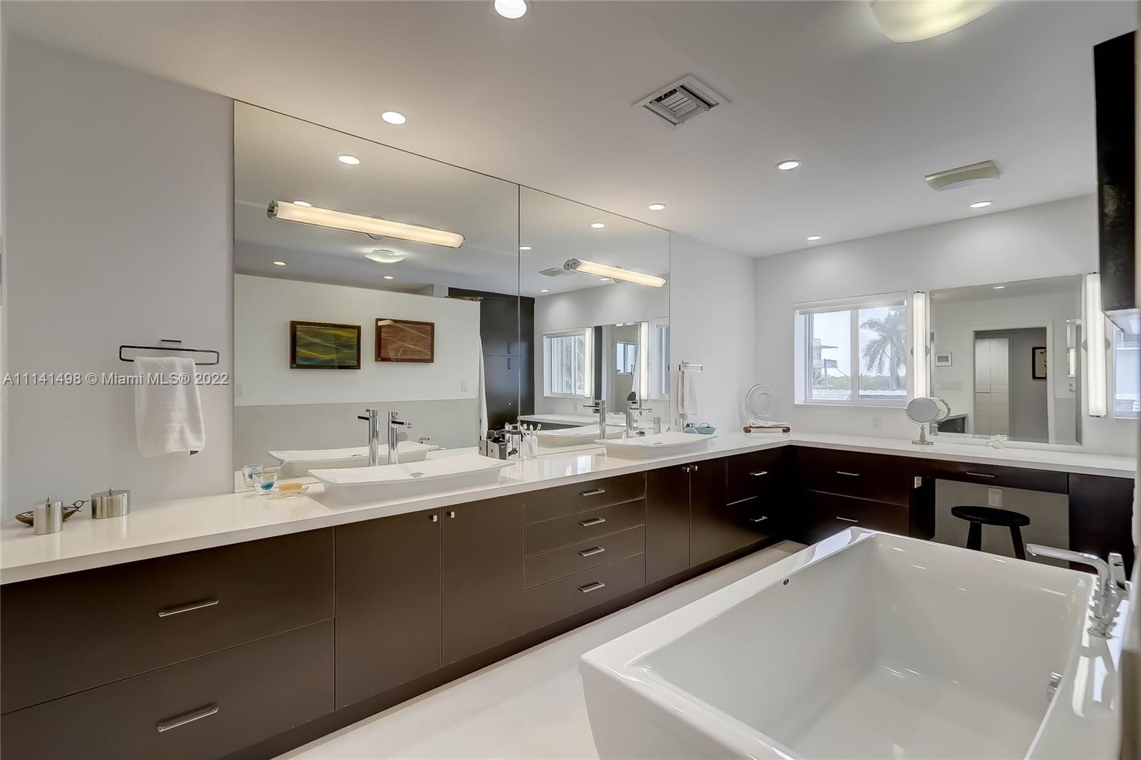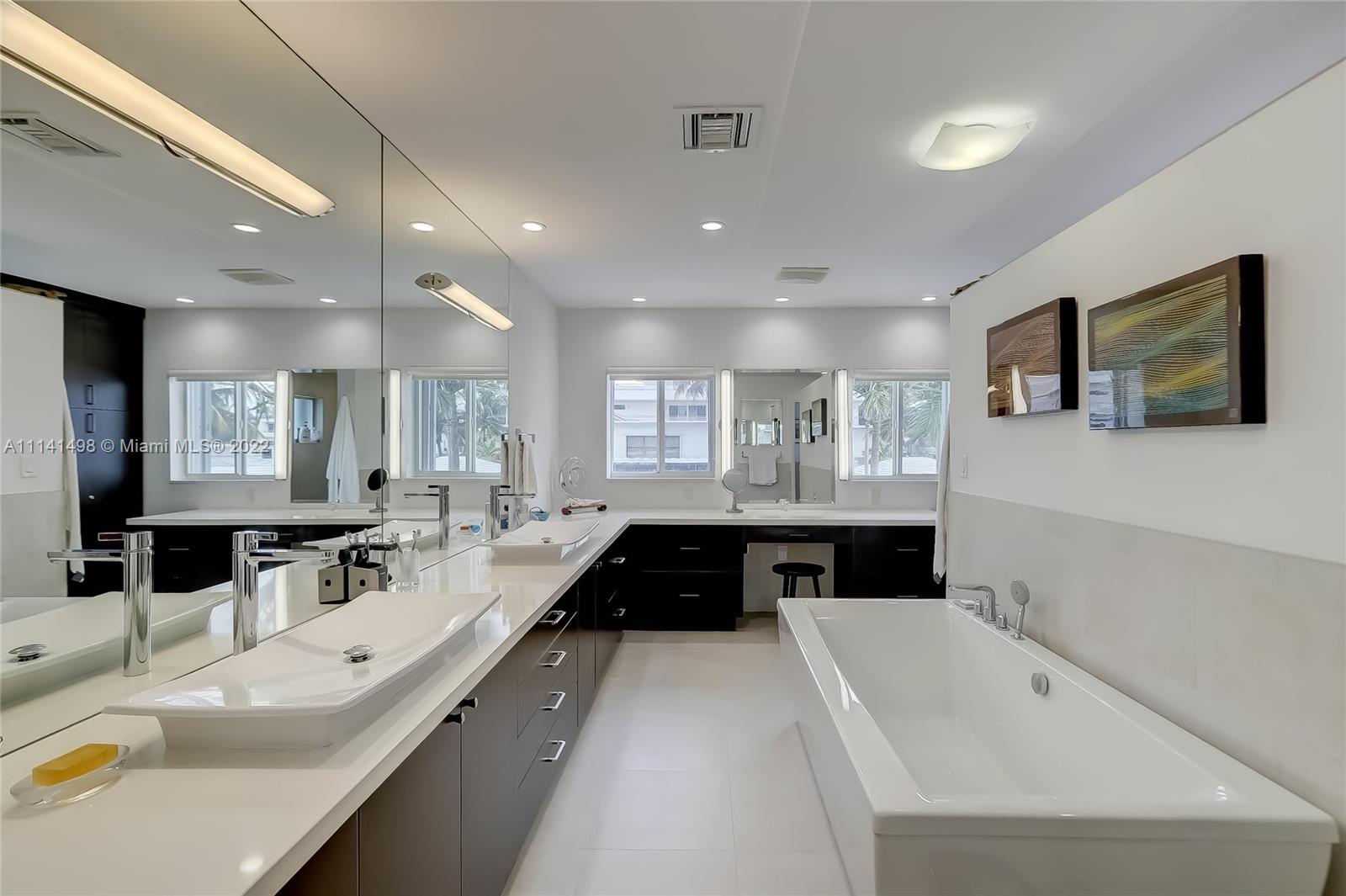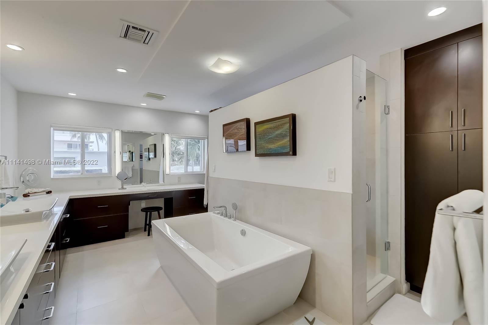 Location! Location! Location! 2 story, 4 BR, 5 BA, 3500 sq ft, rare double lot, grand foyer w/20 ft ceiling, open concept kitchen, living and dining room; dual professional dishwashers, refrigerator/freezers and wall ovens, convection cooktop, large office workspace, custom built-ins throughout, family/entertainment room, impact windows, new exterior security cameras, upgraded LED lighting, Primary Bedroom w/ large en suite, butler’s pantry, oversized soaking tub, double shower, spacious walk-in closet, balcony, oversized driveway, pool w/salt system, covered summer kitchen, H/C shower, make the beach your backyard, steps from ocean, adventure lovers paradise, minutes to airport/highways, shopping, dining and nightlife of Aventura, Bal Harbor, Fort Lauderdale.Come live the beach lifestyle!
