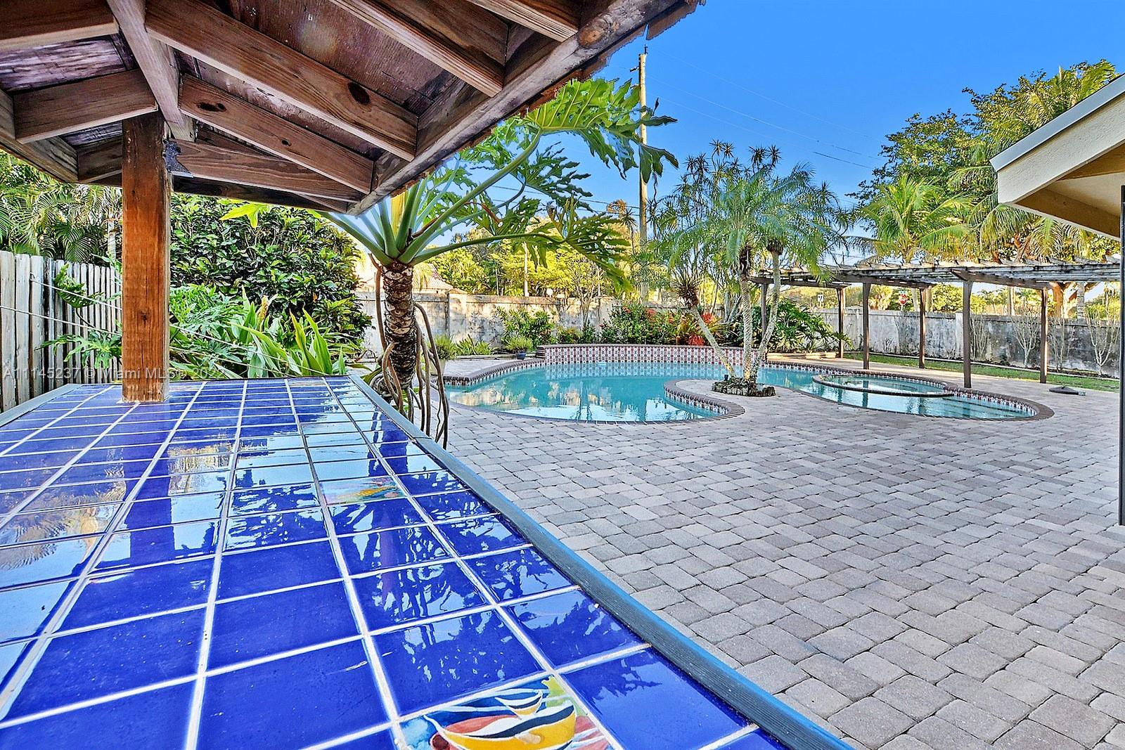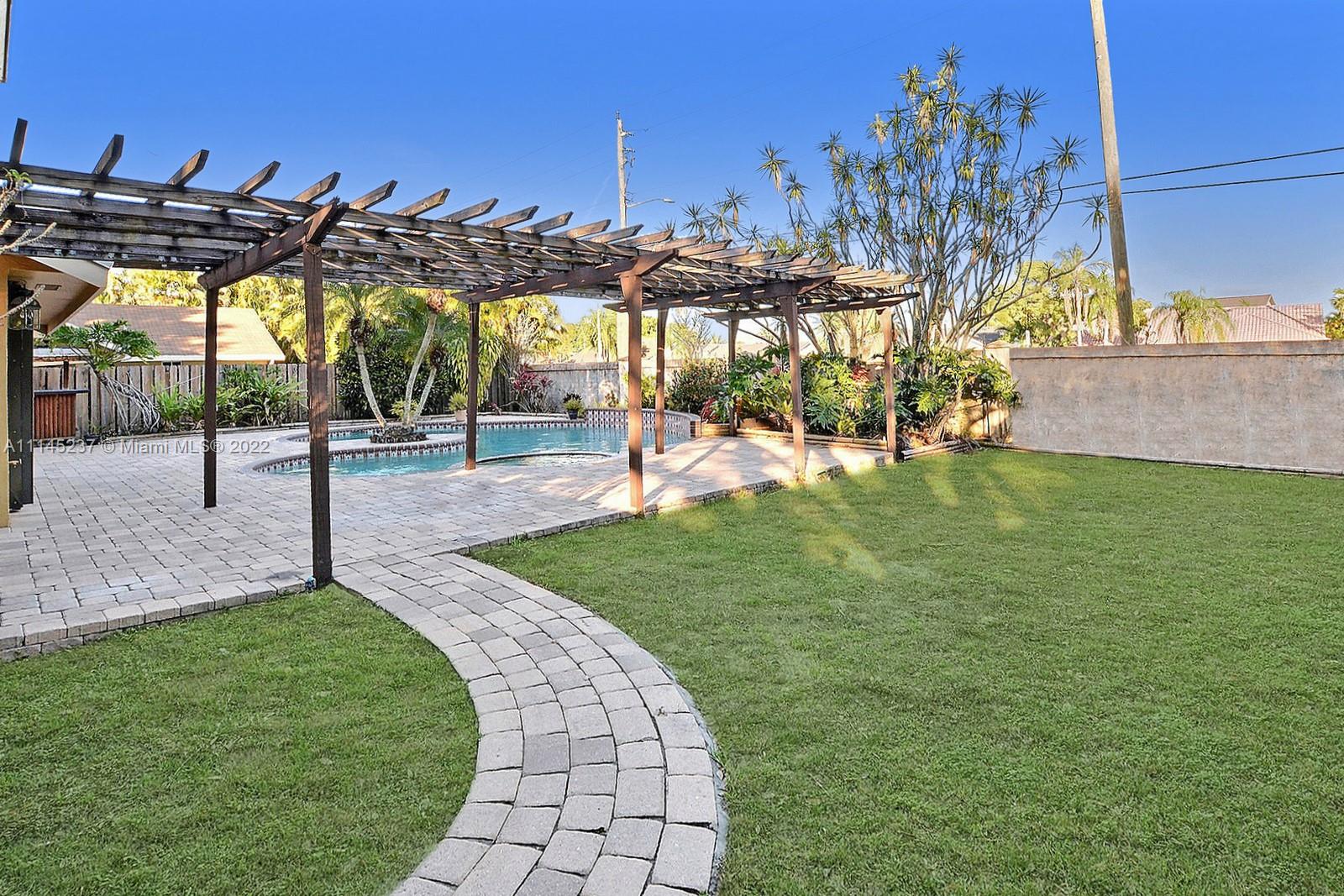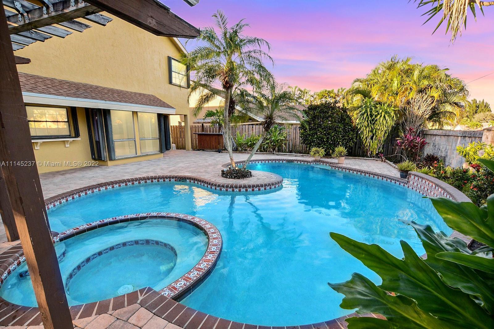 THIS BEAUTIFUL 3 BED + LOFT, 3 BATH HOME SITS ON A PREMIUM CORNER LOT IN THE SOUGHT AFTER TREE LINED COMMUNITY OF COUNTRY ADDRESS. FRENCH STAINED GLASS DOUBLE DOORS LEAD YOU INTO AN OPEN VAULTED CEILINGS, ROMANTIC WOOD BURNING FIREPLACE & PLENTY OF NATURAL. LOFT CAN BE TURNED INTO A 4TH BEDROOM AND DOWNSTAIRS CABANA BATH IS A TRUE FULL BATH. PRIMARY SUITE FEATURES DOUBLE SINK VANITY, UNIQUELY TILED ENCLOSED TUB AND SPACIOUS WALK IN CLOSET. GORGEOUS REAL-WOOD FLOORS. BACKYARD IS A TRUE OASIS WITH POOL AND SPA, LUSH LANDSCAPING, BEAUTIFULLY TILED PATIO, BUNGALOW AND BAR AREA. ACCORDION SHUTTERS, AND 2 CAR GARAGE. ACCESS TO COUNTY ADDRESS PARK, TREE TOPS PARK, COOPER CITY SCHOOL DISTRICT AND PLENTY OF AMAZING SHOPS AND RESTAURANTS.