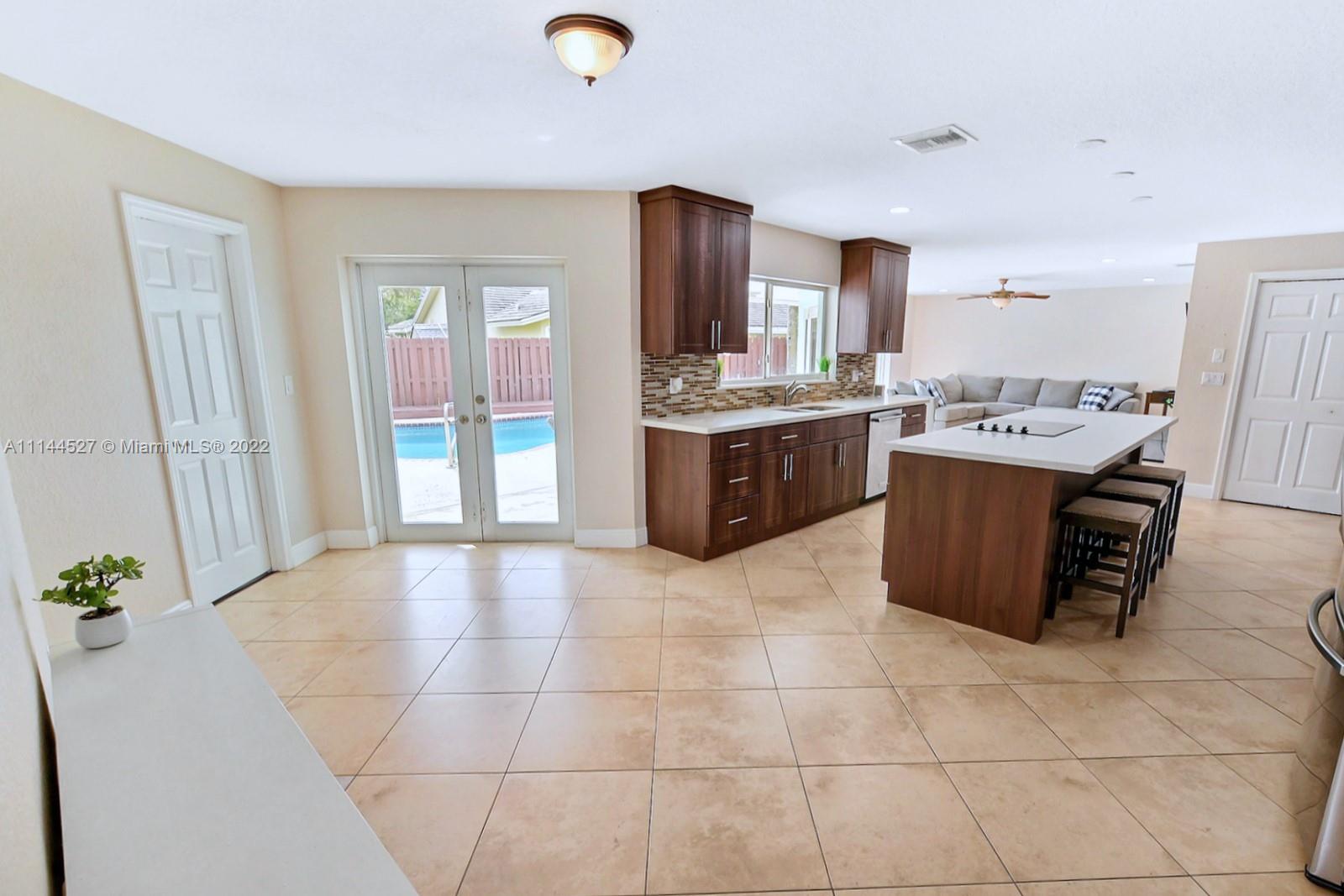 BEAUTIFUL POOL HOME IN CYPRESS GLEN, CORAL SPRINGS FEATURES 4 BEDS 2 BATHS ON A CHARMING CUL DE SAC LOT. EXTENDED DRIVEWAY WITH PRETTY PAVERS, CUSTOM WOODEN GARAGE DOOR AND STAINED GLASS DOUBLE DOOR ENTRANCE.SPECTACULAR KITCHEN WITH CUSTOM WOOD CABINETS, COOKING ISLAND, GRANITE COUNTERTOP AND STAINLESS STEEL APPLIANCES. FRESH PAINT, ELEGANT FEATURES, VAULTED CEILINGS, FRENCH DOORS AND SEPARATE LARGE FAMILY ROOM OFF KITCHEN. PRIMARY SUITE WITH DIRECT ACCESS TO BACKYARD, DOUBLE VANITY, SOAKING TUB AND GLASS ENCLOSED SHOWER. UPDATED SECOND BATH & IMPACT WINDOWS. LARGE FENCED IN BACKYARD WITH POOL, DECK AND PLENTY OF ROOM FOR LOUNGING FURNITURE, A COZY FIRE-PITS AND BARBECUE. NO HOA