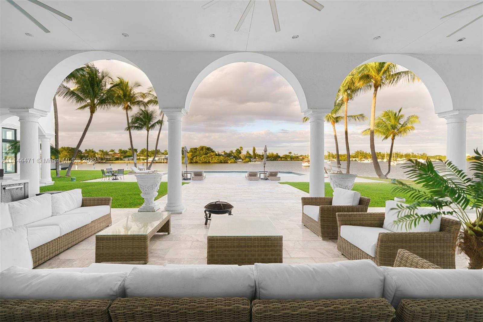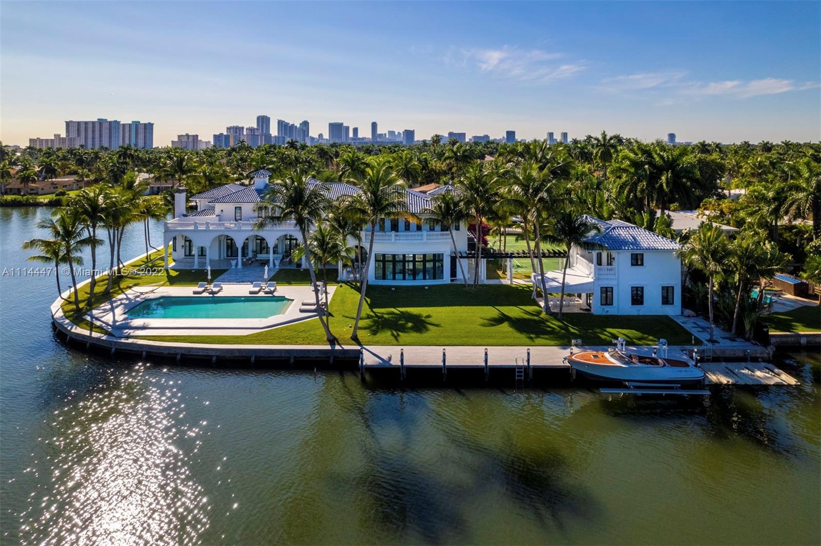 Step inside this stunning waterfront estate sitting on over 1 acre, triple corner lot with 450" of redone seawall. The home was remodeled in 2020 with no expense spared, including a new boat lift that can accommodate up to 80ft boat, 1 folding dock for 3 jet skies and tender, 2 wine cellars, theatre room, tennis court, fitness room, custom doors + archways, and so much more. Enjoy spectacular water and Intracoastal views from every room in the house. The separate guest house boasts 2 beds and 2 baths. Great location minutes from Aventura mall, FTL airport, and major highways.
