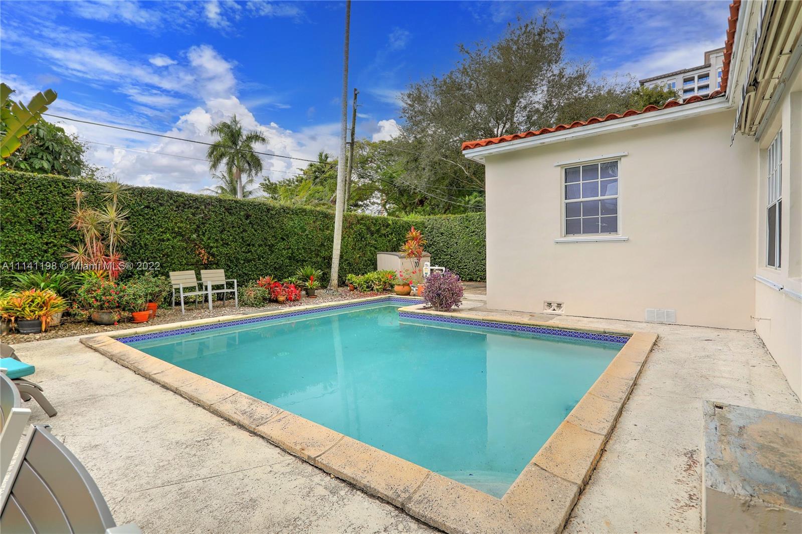 Proudly own this 4 bedroom/2 Bath with pool located just a few blocks to Miracle Mile and Downtown Coral Gables! This rare opportunity to purchase this split plan features large living and dining areas complemented by stunning original wood flooring and wonderful natural light. Spend your free time relaxing in this backyard oasis featuring a beautiful L-Shaped pool, tall privacy hedges and patio area with a large retractable awning. All four bedrooms are spacious and this home has been designed well to feature ample storage space with extra hallway closets and utility room with washer/dryer and storage loft. This home has a new A/C, partial Impact Windows and updated plumbing that has been connected to municipal water and sewer. Schedule your showing today!