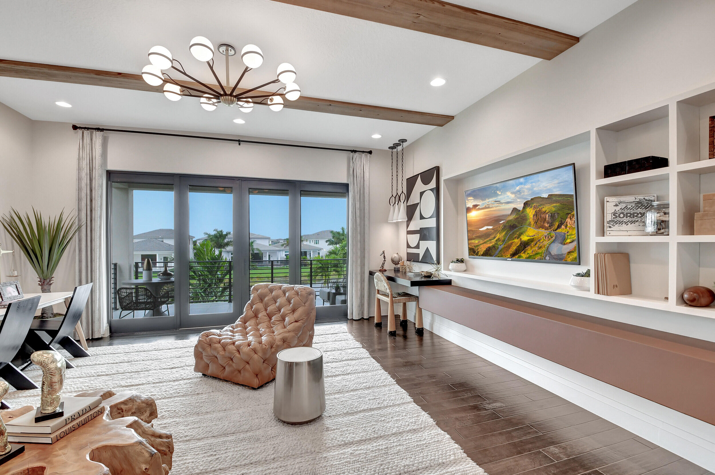This elegant fully furnished turnkey model home sits on one of the most desirable lots at the end of the cul-de-sac. This oversized pie shaped lot has spectacular water views and the ability to build up to 4,000 Sq Ft additional space. The home features a covered verandah off the loft and the master bedroom with gorgeous water views. This amazing family house features a fully equipped game room, great room, gourmet kitchen, open floor plan, formal dining room, mud room, loft, and media room in addition to 5 en-suite bedrooms. All electronics and furnishings are included in the sale. There are two additional balconies and a spacious covered patio off the great room overlooking the beautiful contemporary pool and lake with raised sitting area, water features and planters. Plans are attached