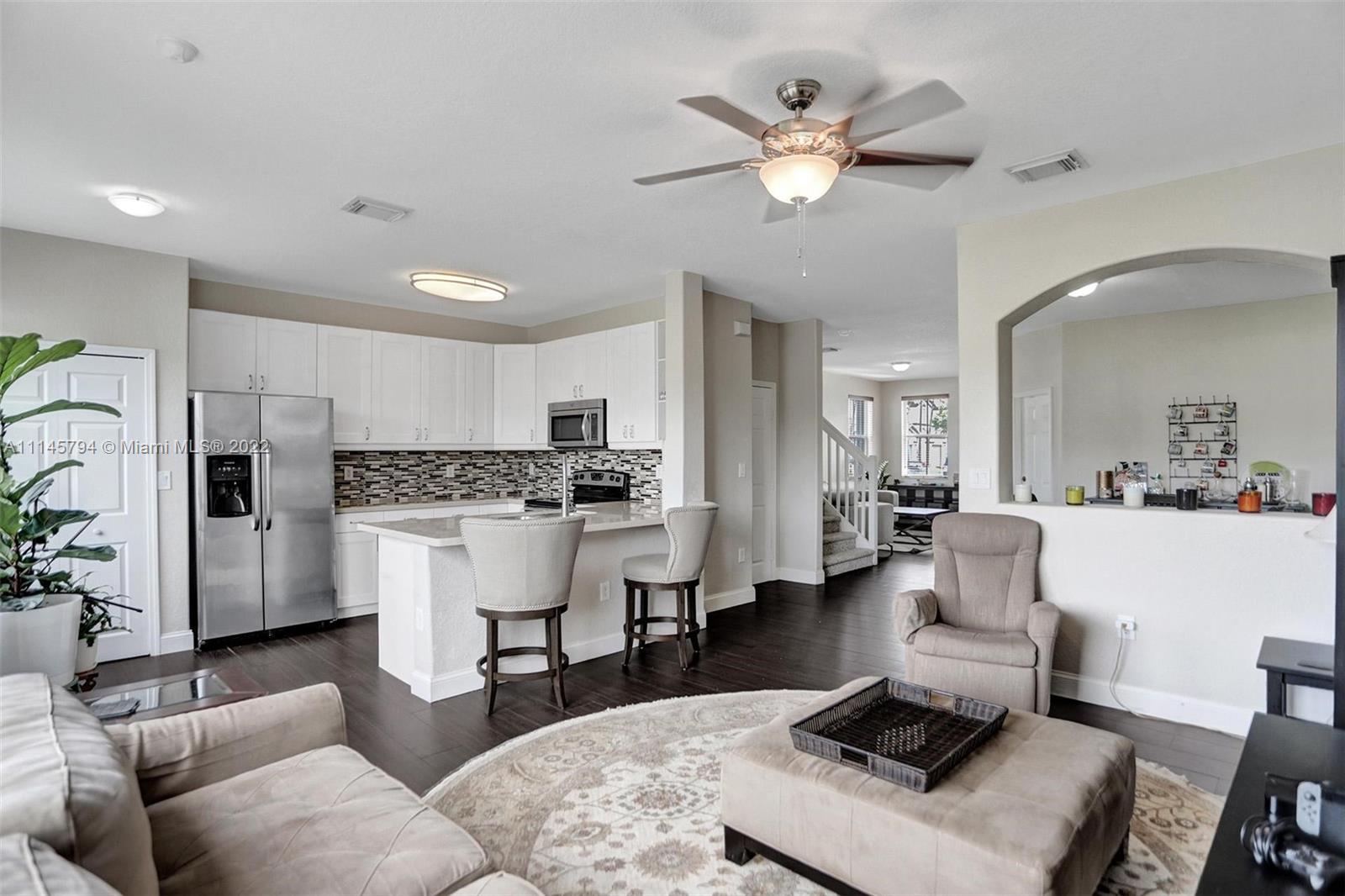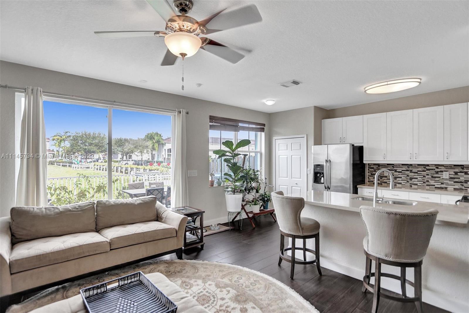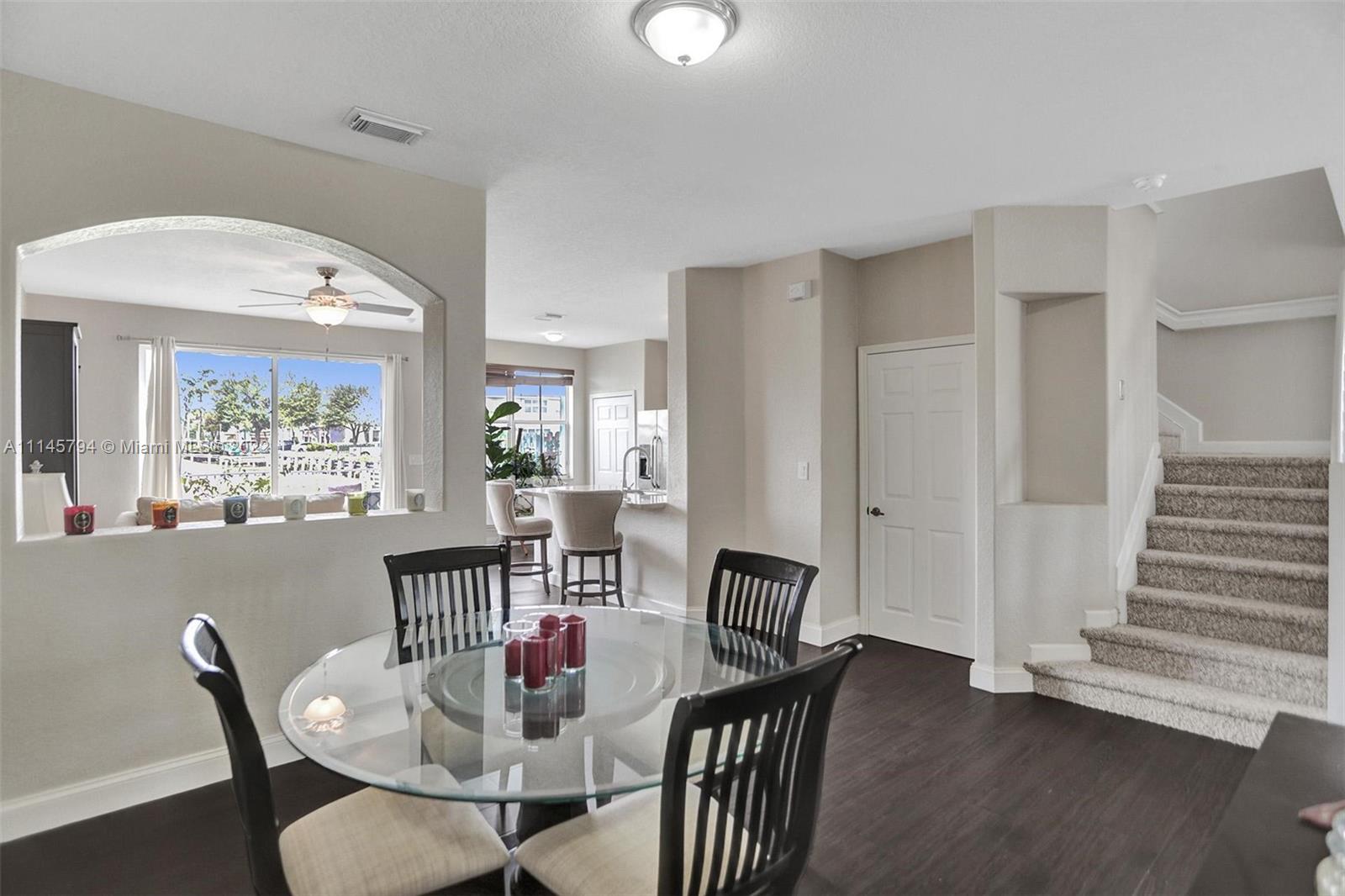 Sit back and relax as the sun sets over the expansive view of the lake from your back patio. Unit features tile downstairs and carpet upstairs. Upstairs bath recently retiled. Windward features a pool and playground. Residents also have access to the Islands at Doral Club with a Olympic sized pool, gym, and tennis courts. Located a quarter mile of Doral Legacy Park's incredible sports fields, event spaces, and kid's aquatic area. Easy access to the Florida turnpike so you can access all Miami has to offer.